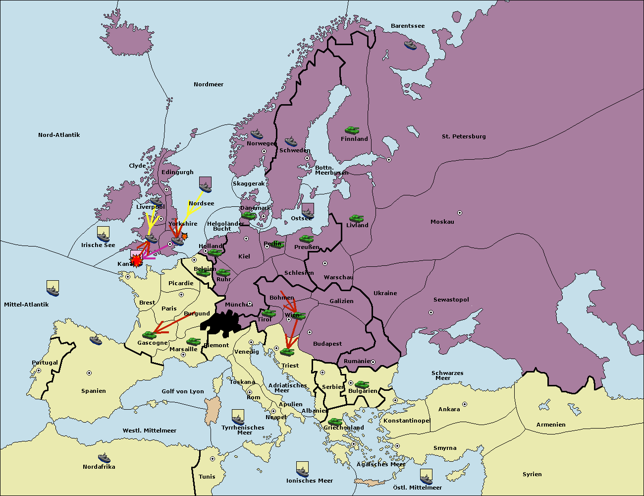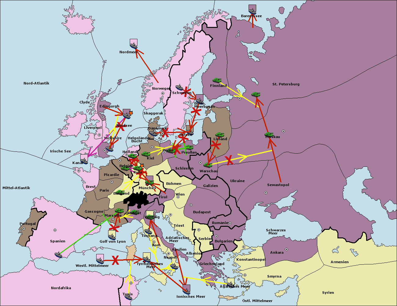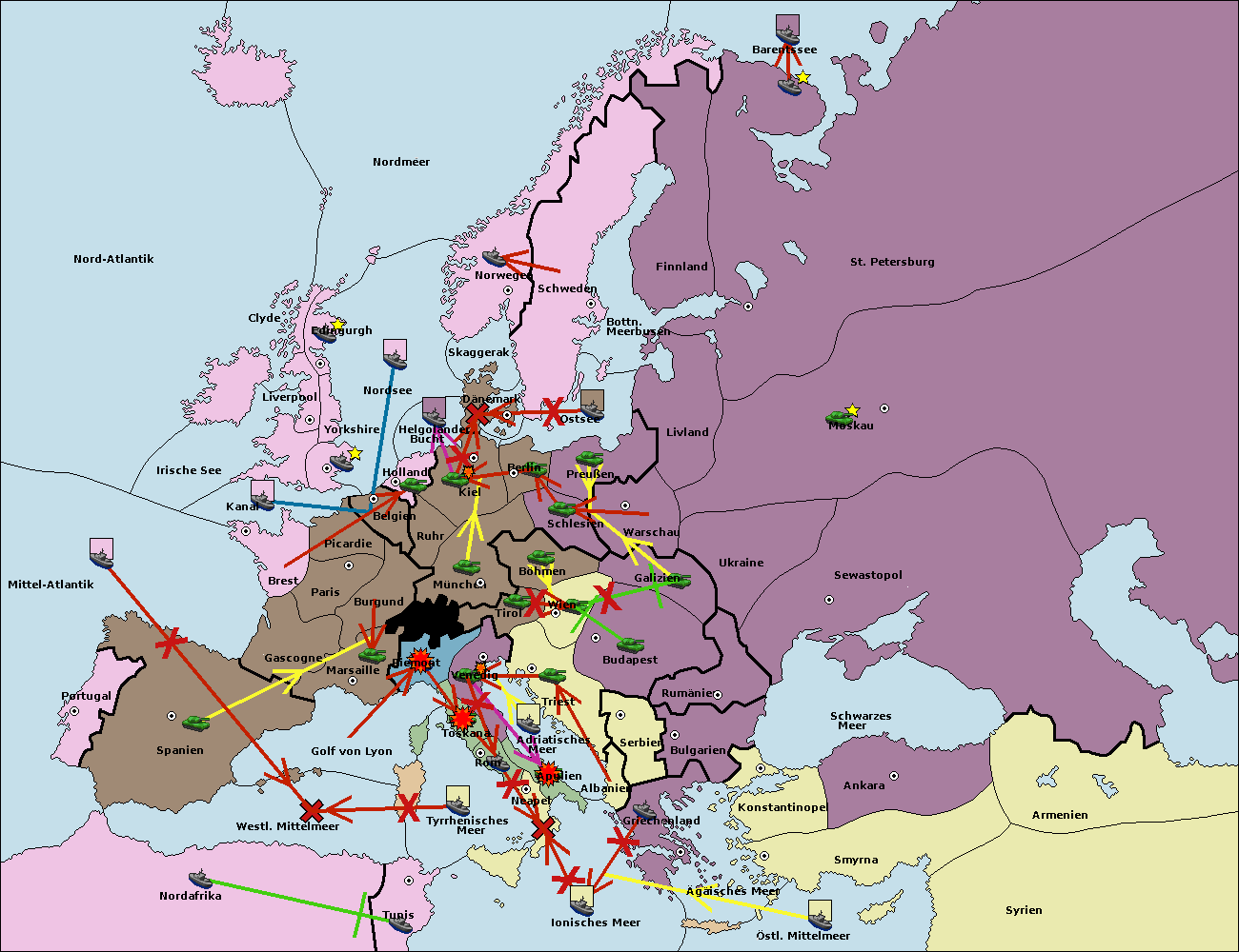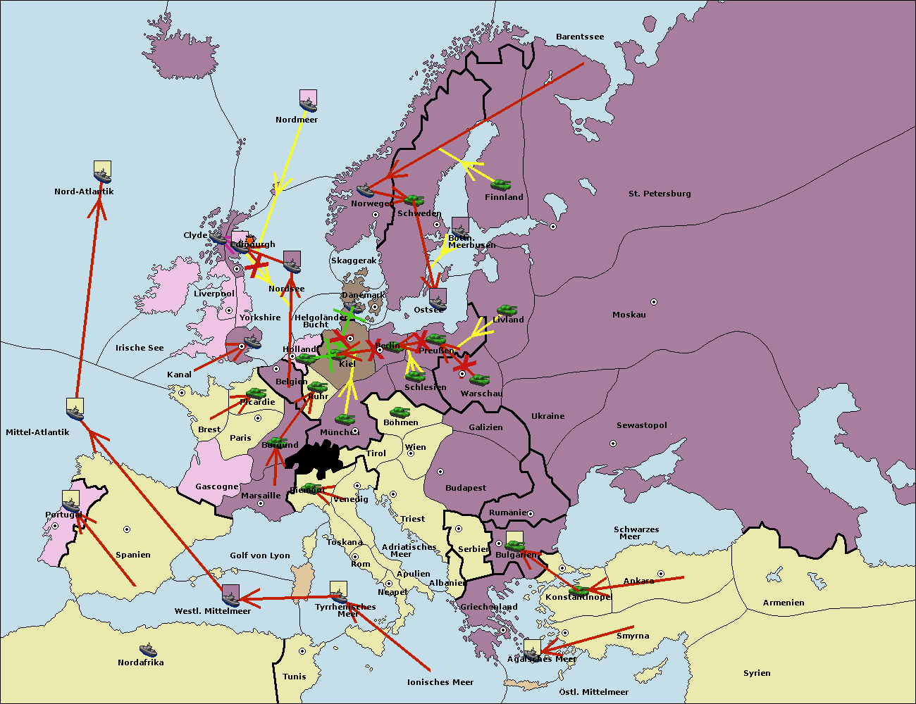 • Die Armee in Kiel wird zerstörtFlotte in Kiel gebaut.