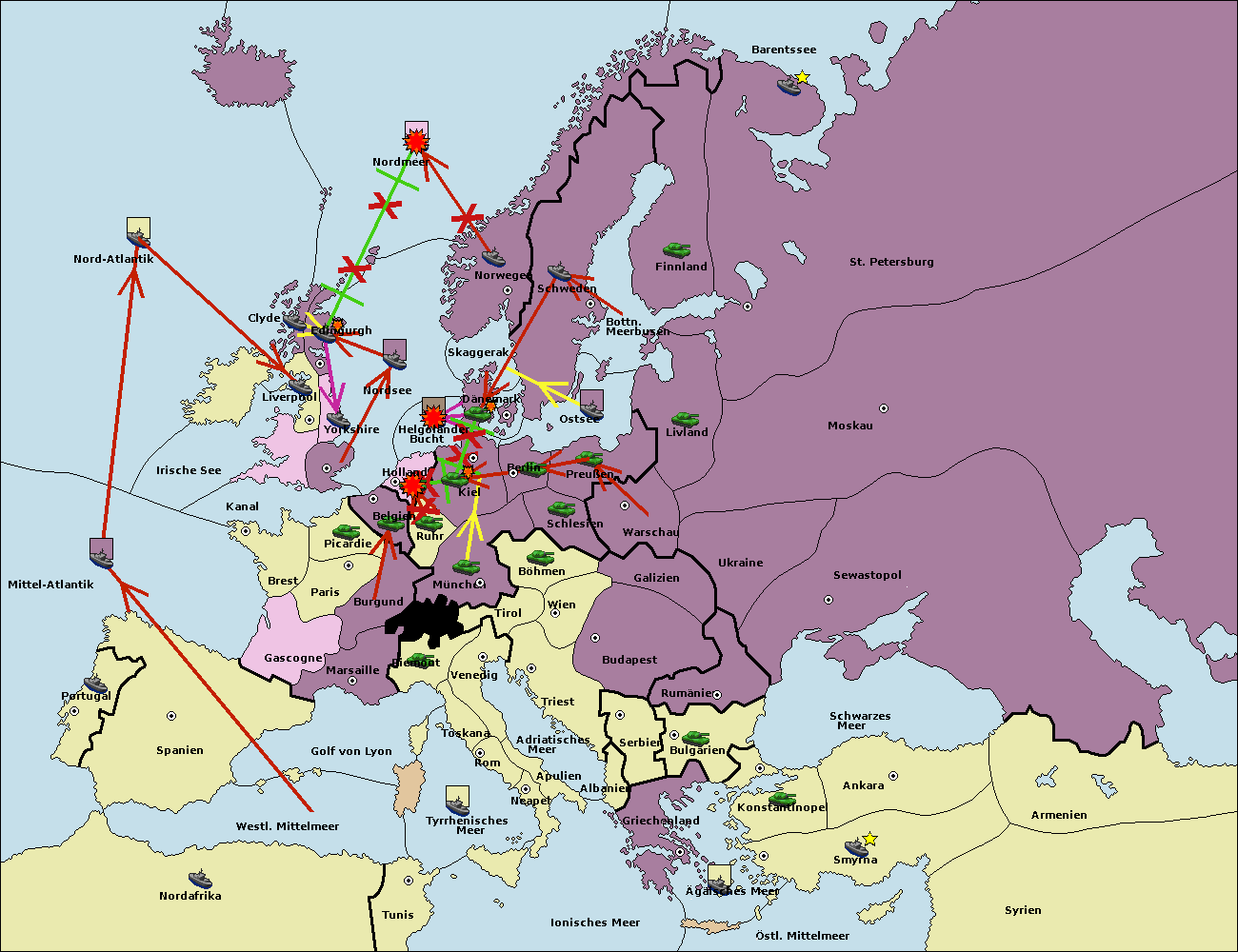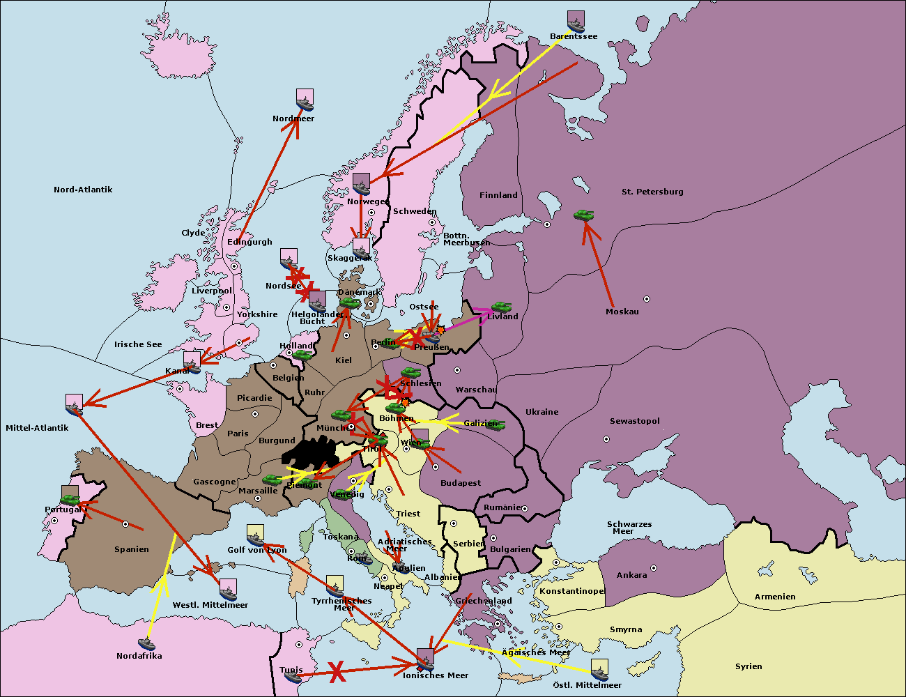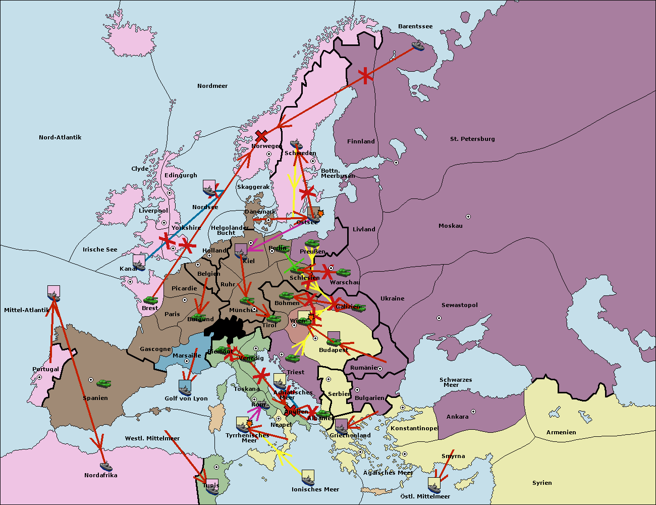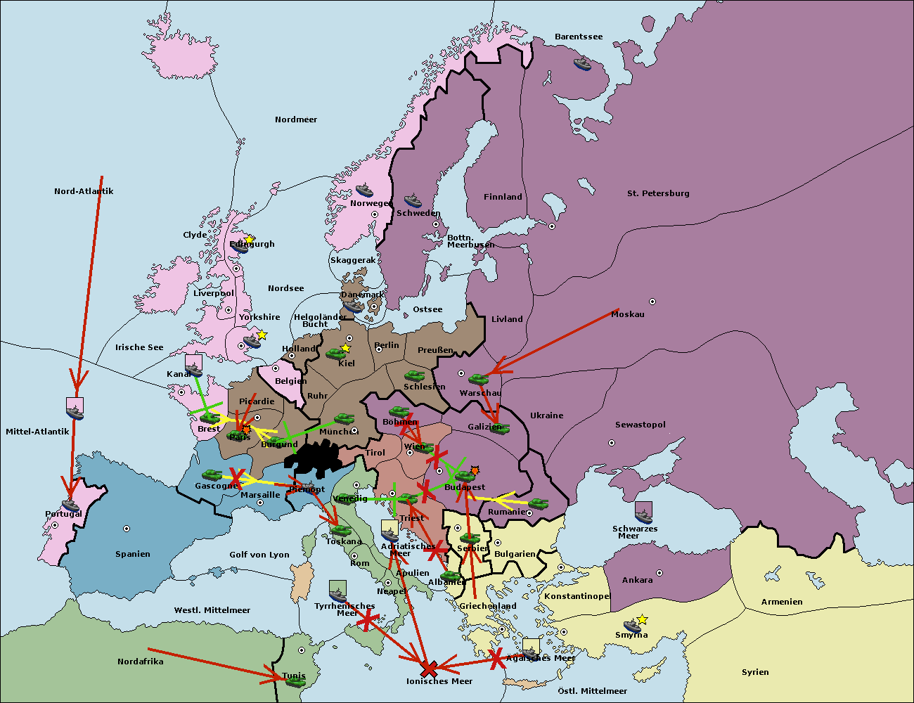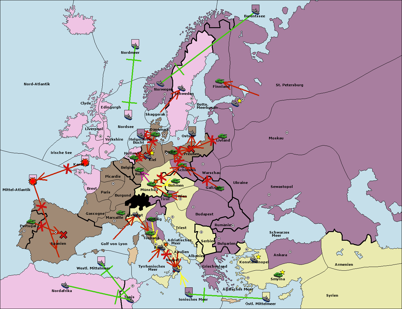 • Die Armee in Kiel wird zerstörtFlotte in Kiel gebaut.