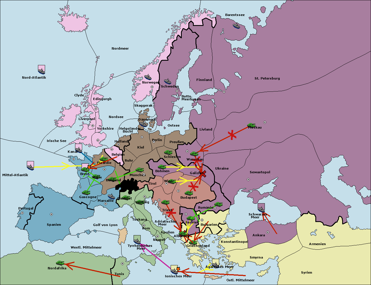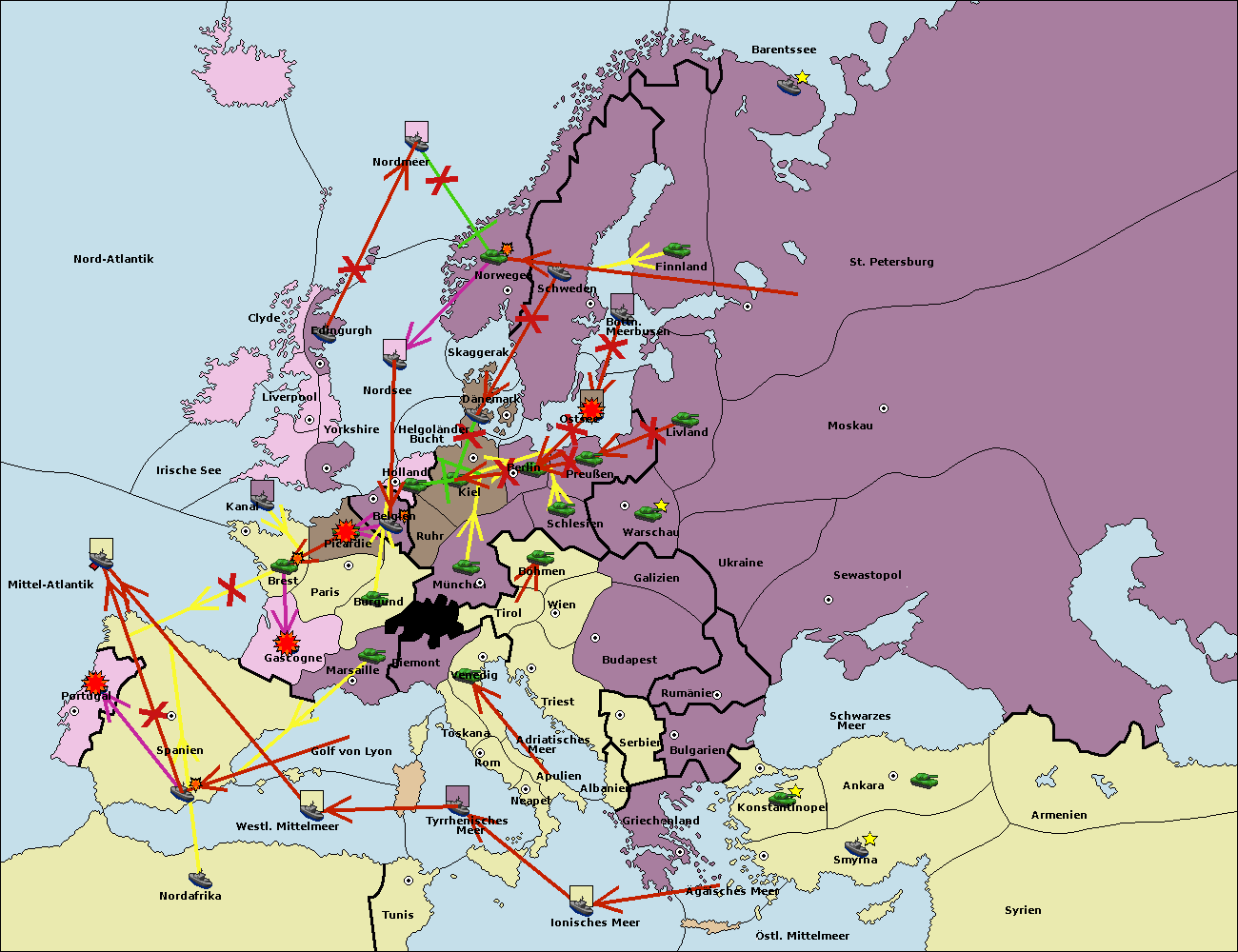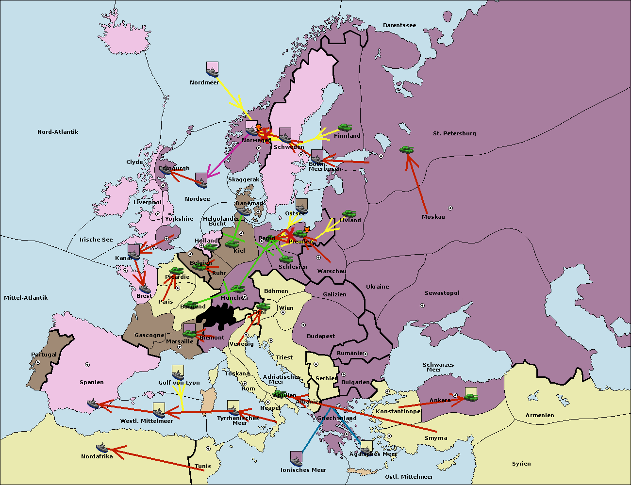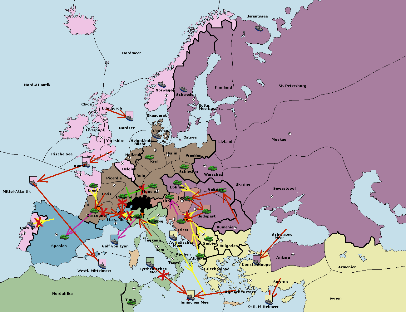 • Die Armee in Kiel wird zerstörtFlotte in Kiel gebaut.