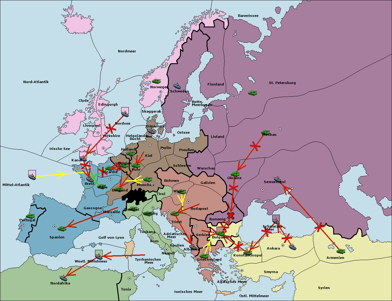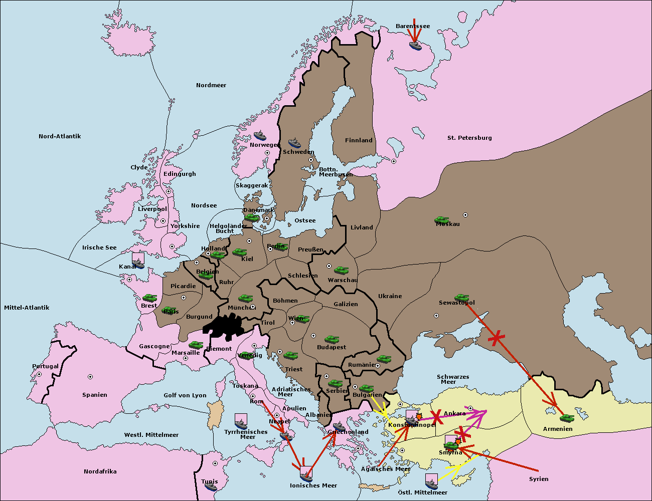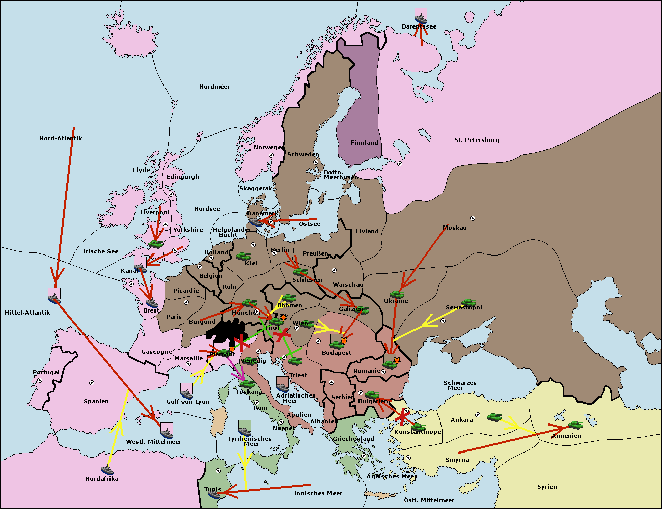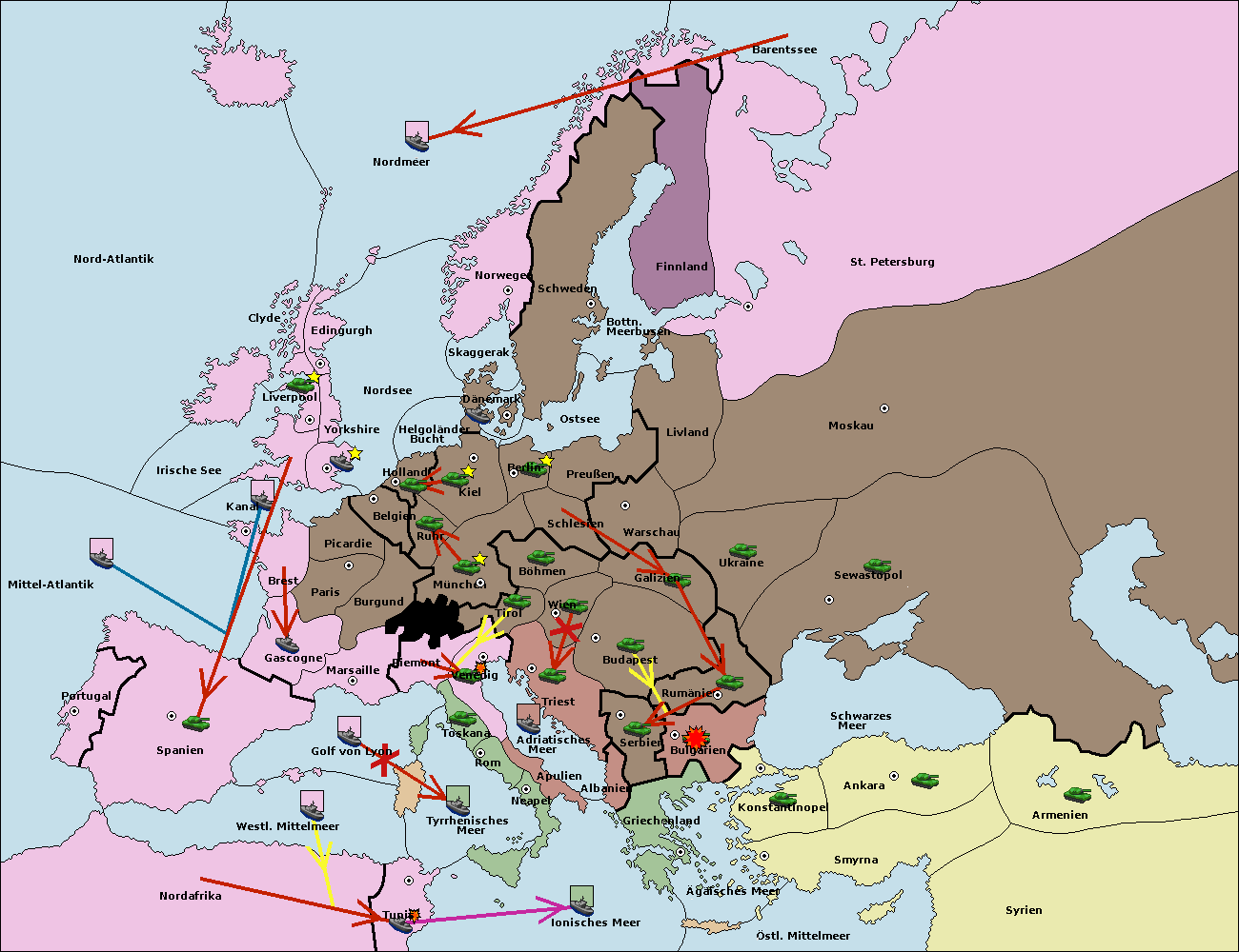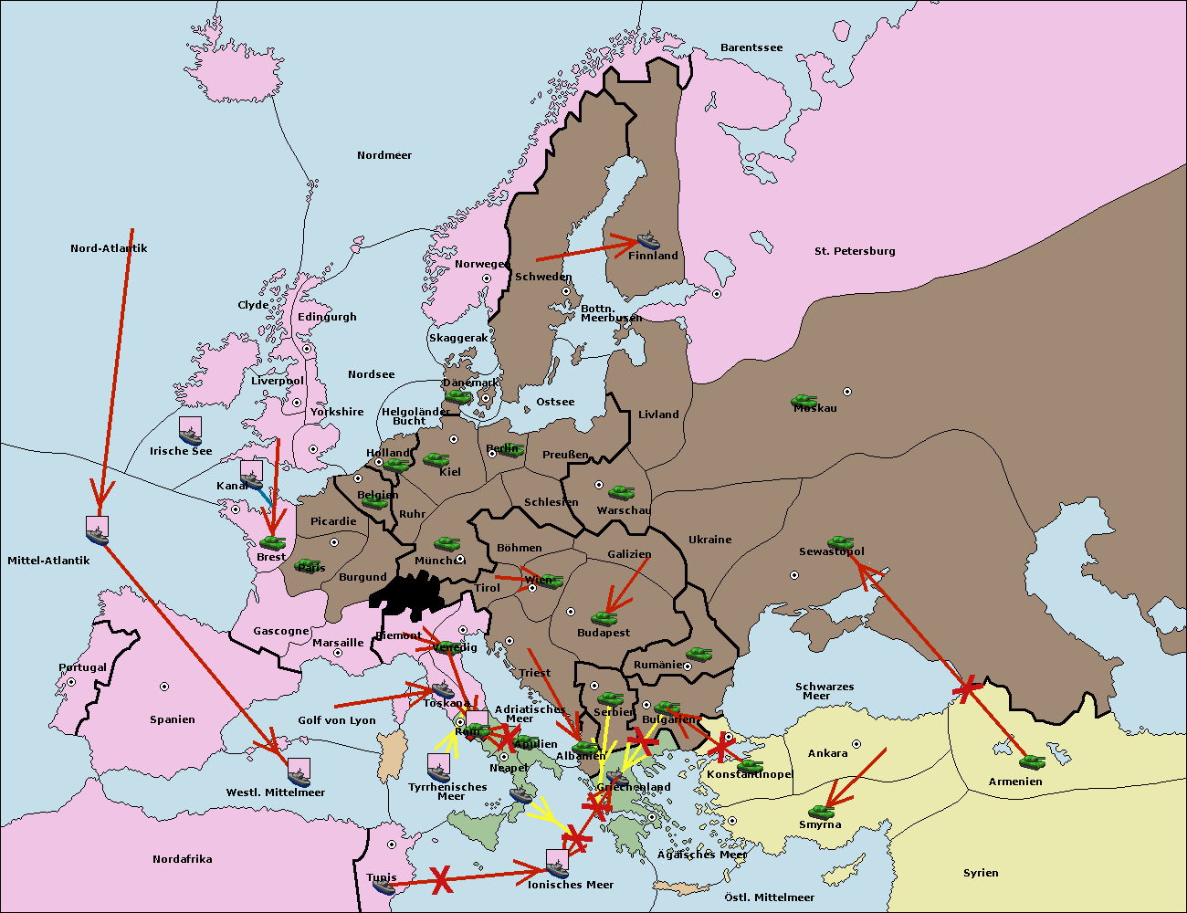 • Die Armee in Bulgarien wird zerstörtFlotte in Bulgarien gebaut.