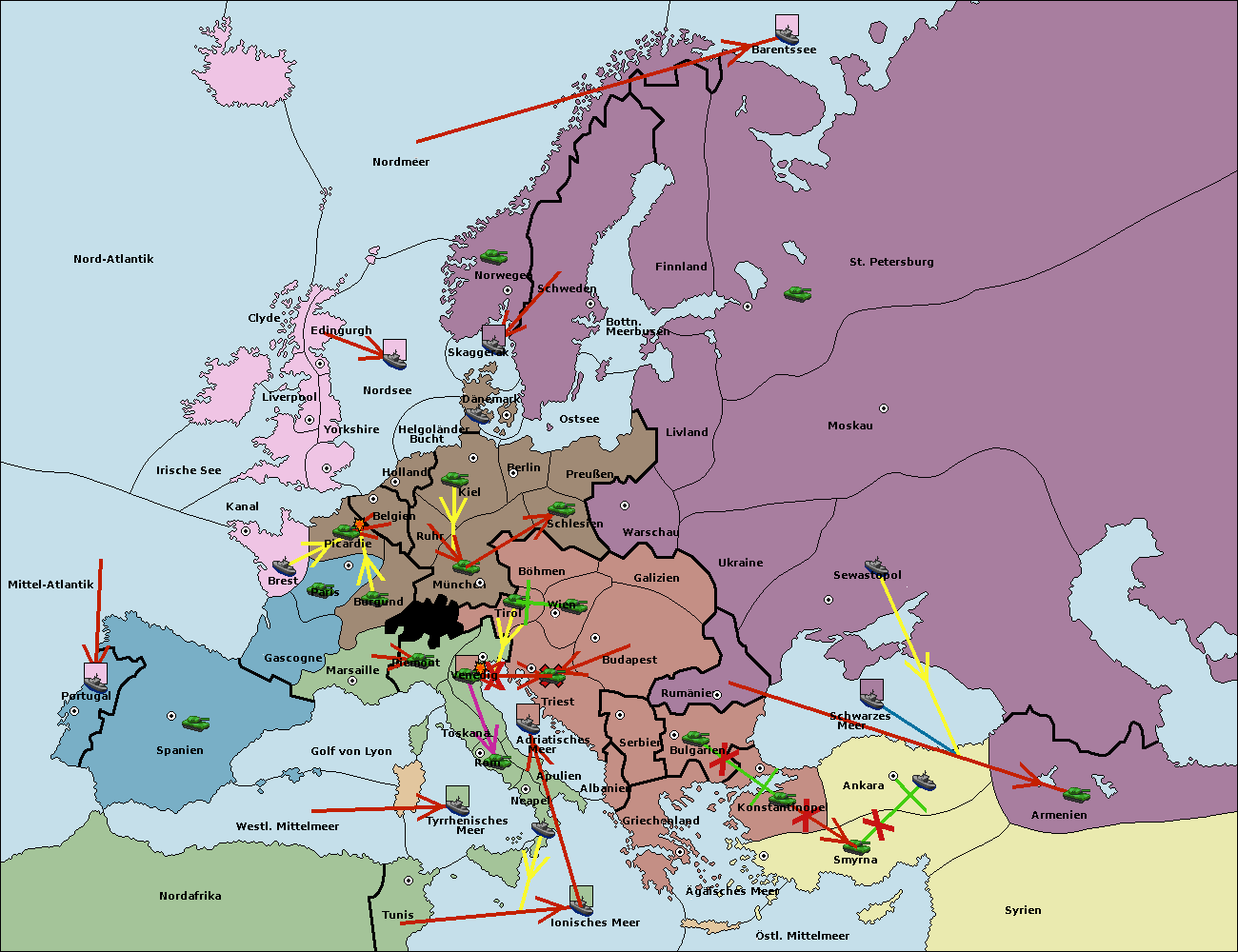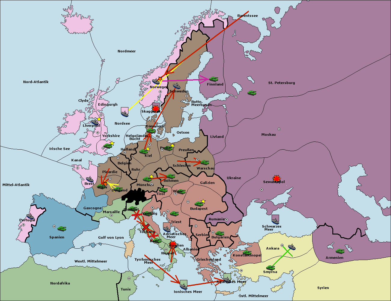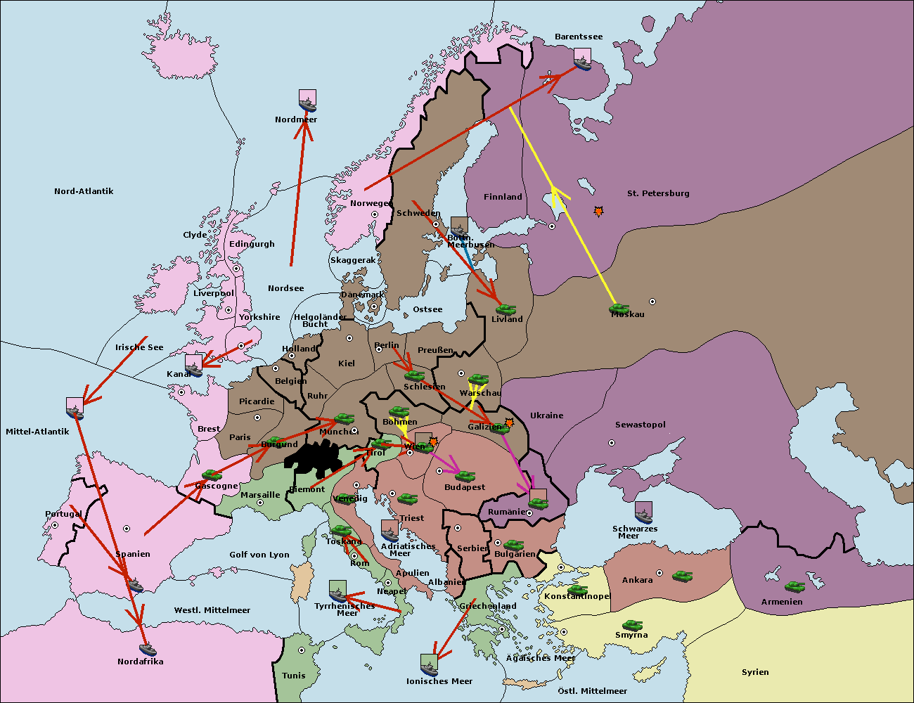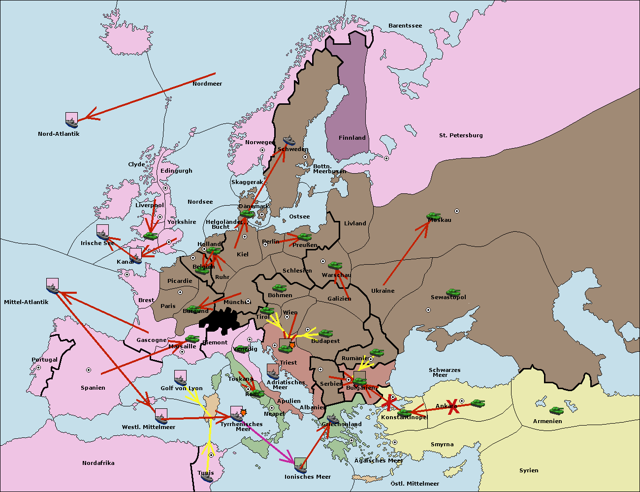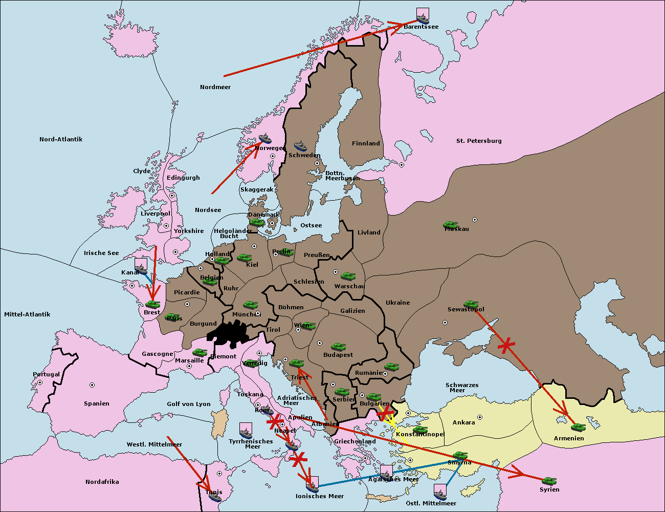 • Die Armee in Bulgarien wird zerstörtFlotte in Bulgarien gebaut.