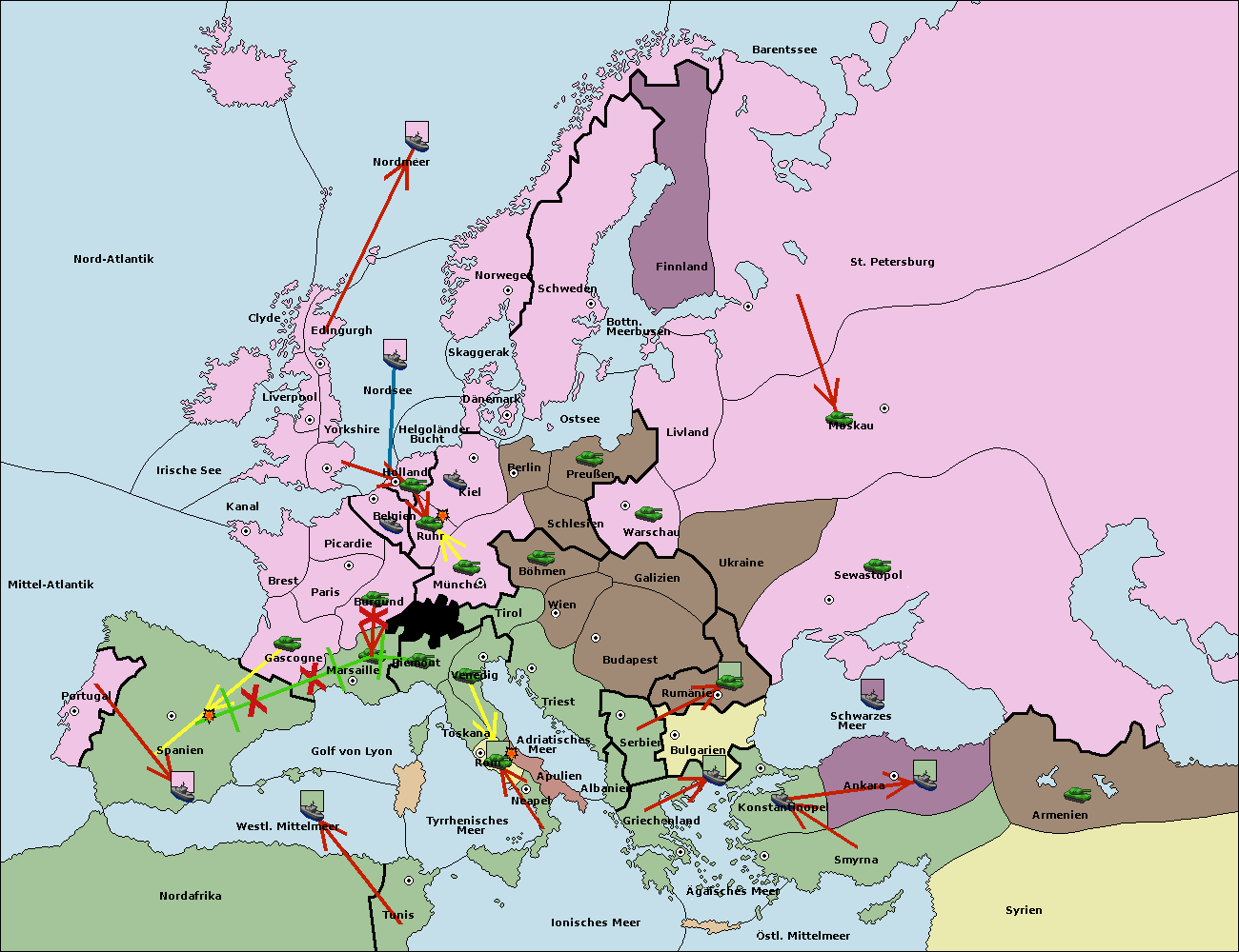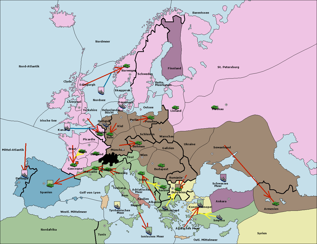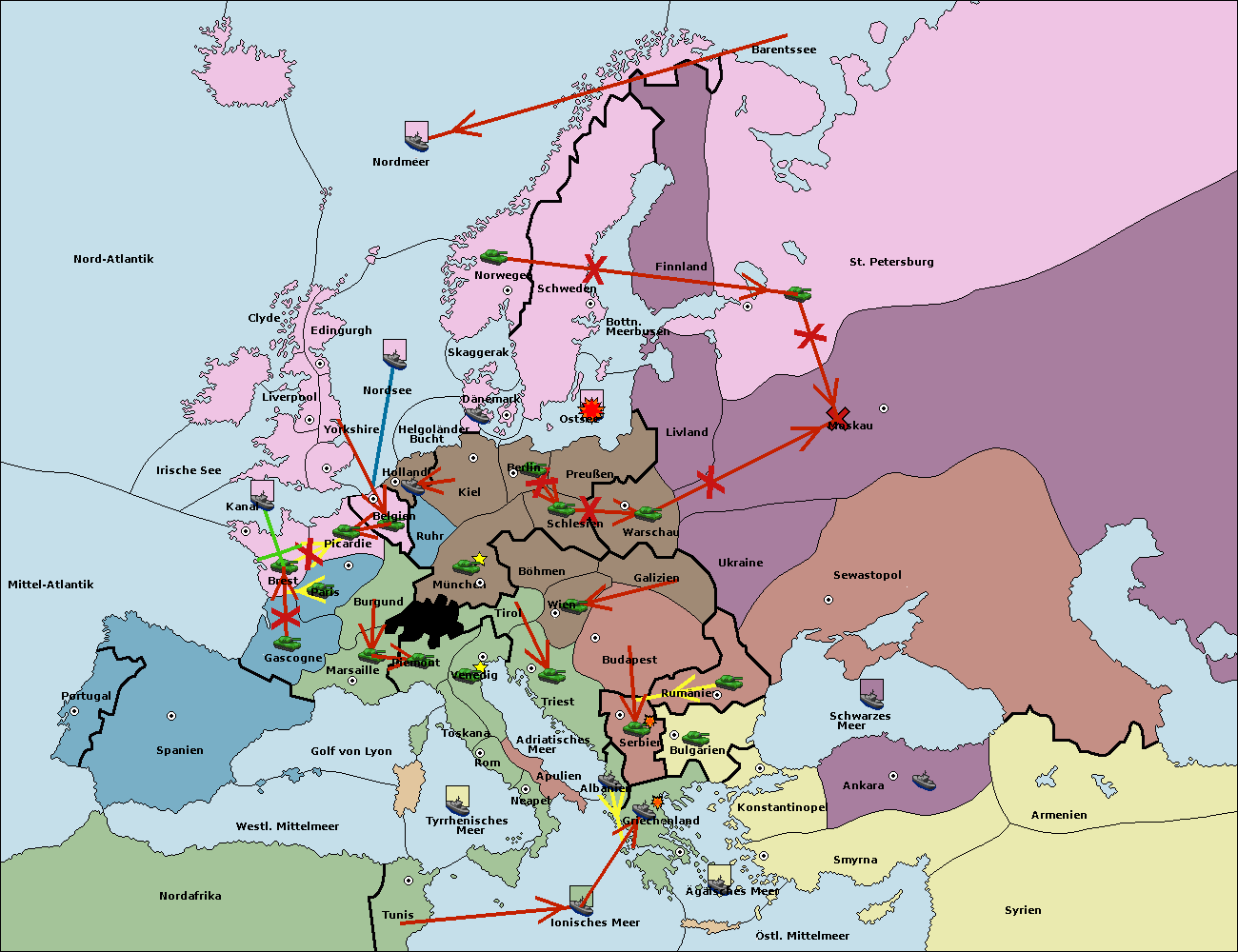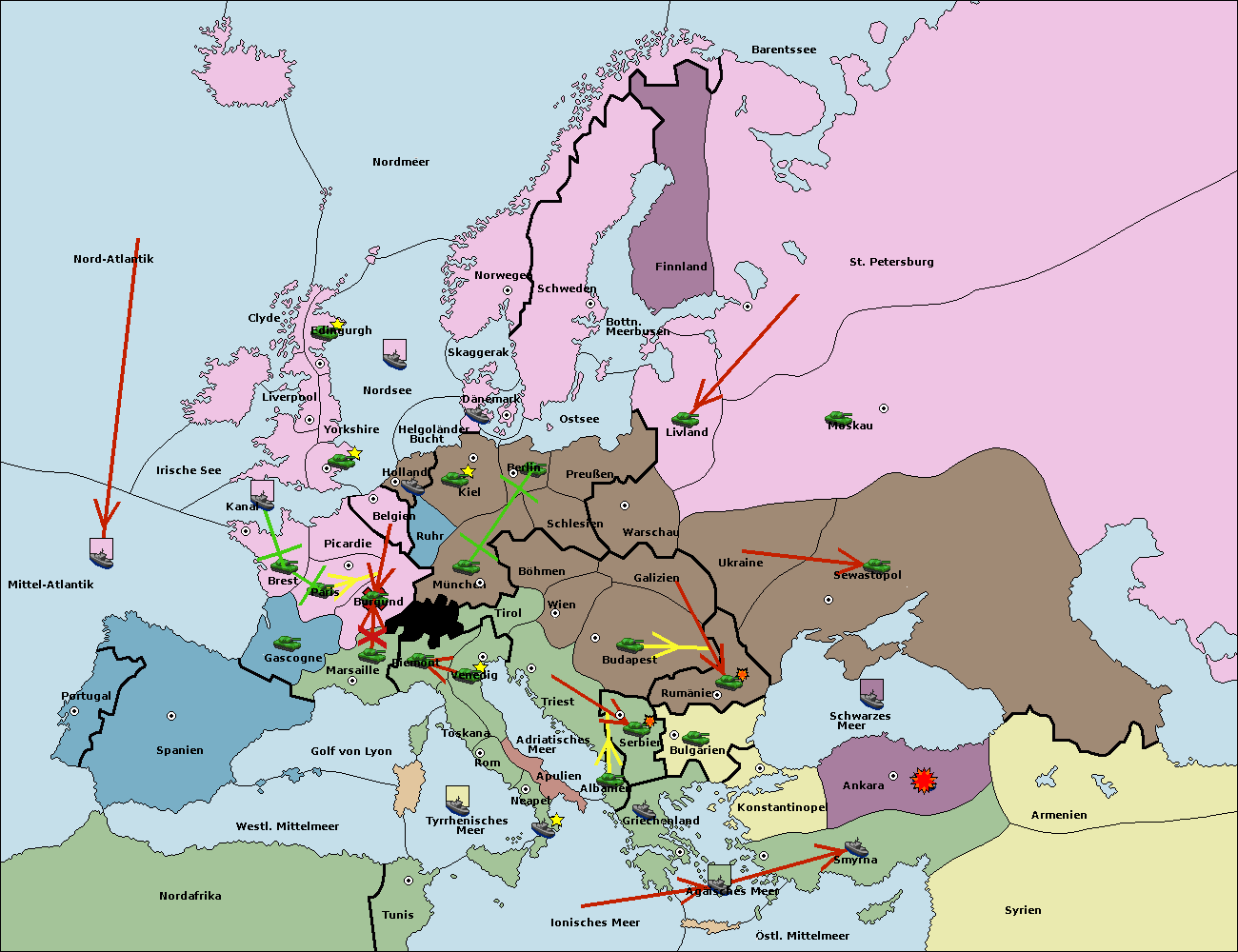 • Die Flotte in Konstantinopel support hold nach Bulgarien.