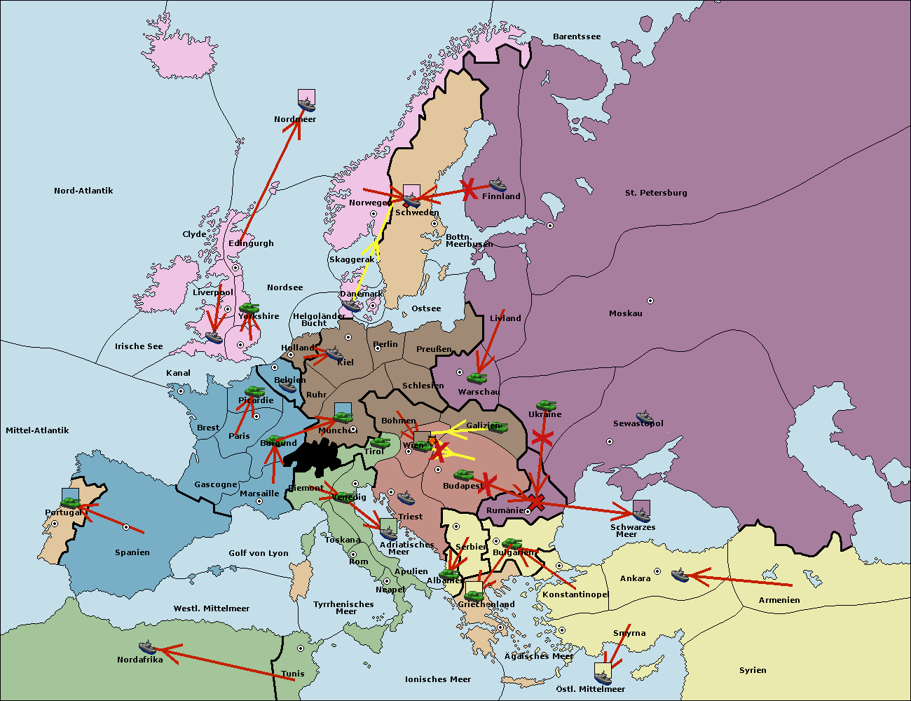 • Die Flotte in Armenien support move nach Sewastopol von Rumänien. (gescheitert)
