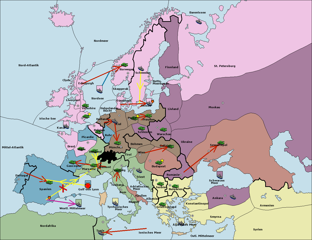 • Die Flotte in Spanien (Südküste) support move nach Marseille von Burgund. (gescheitert)