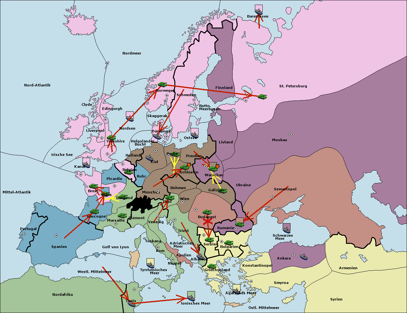 • Die Armee in München wird zerstörtFlotte in München gebaut.