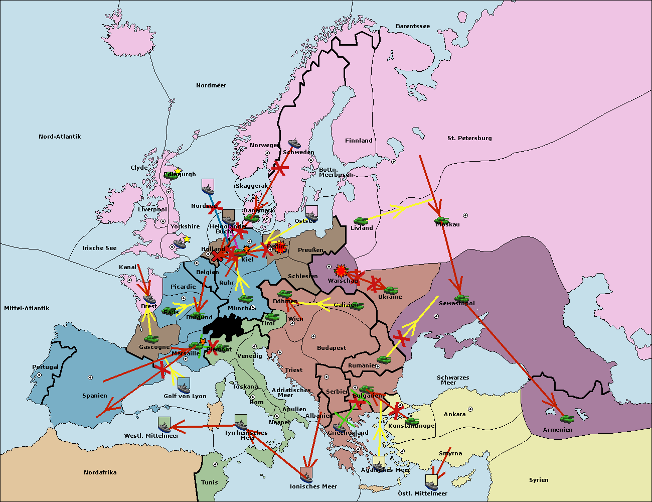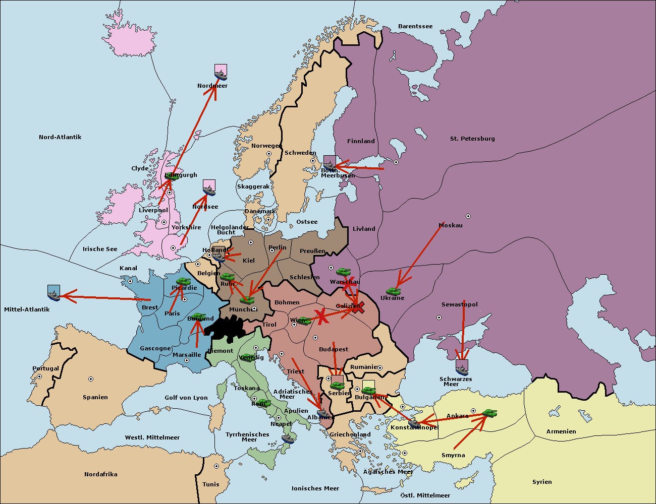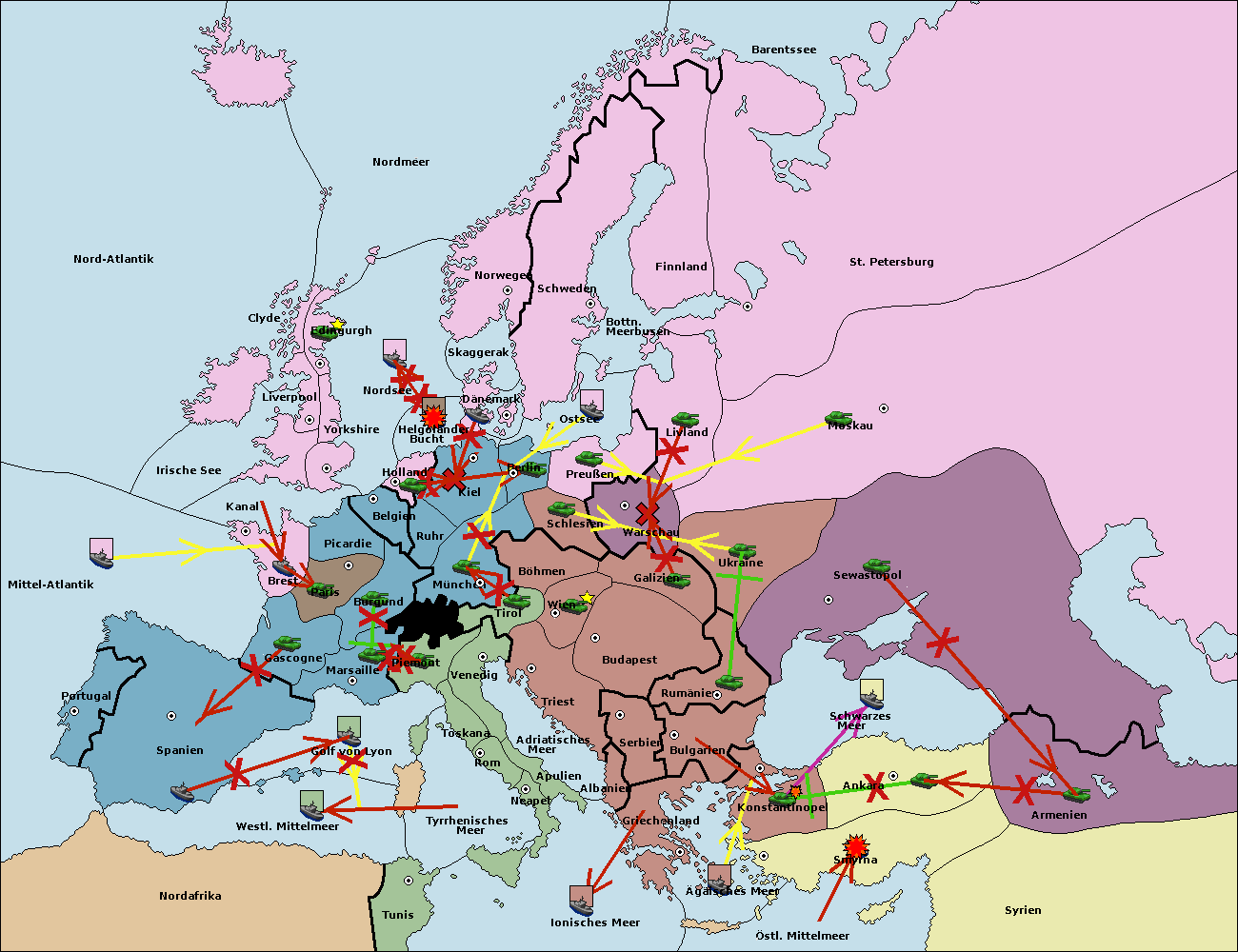 • Die Armee in Bulgarien wird zerstörtFlotte in Bulgarien gebaut.