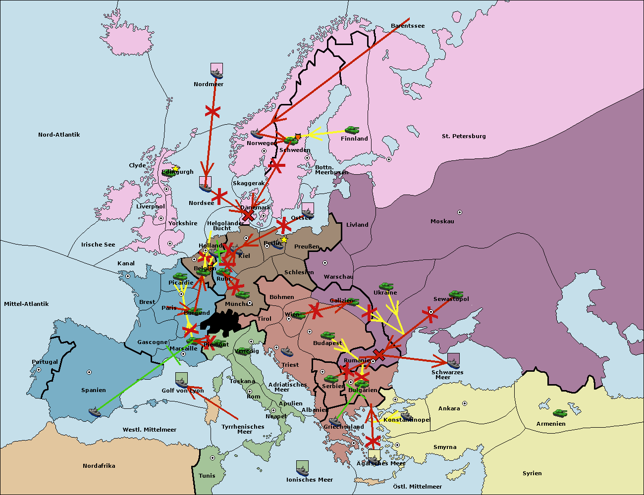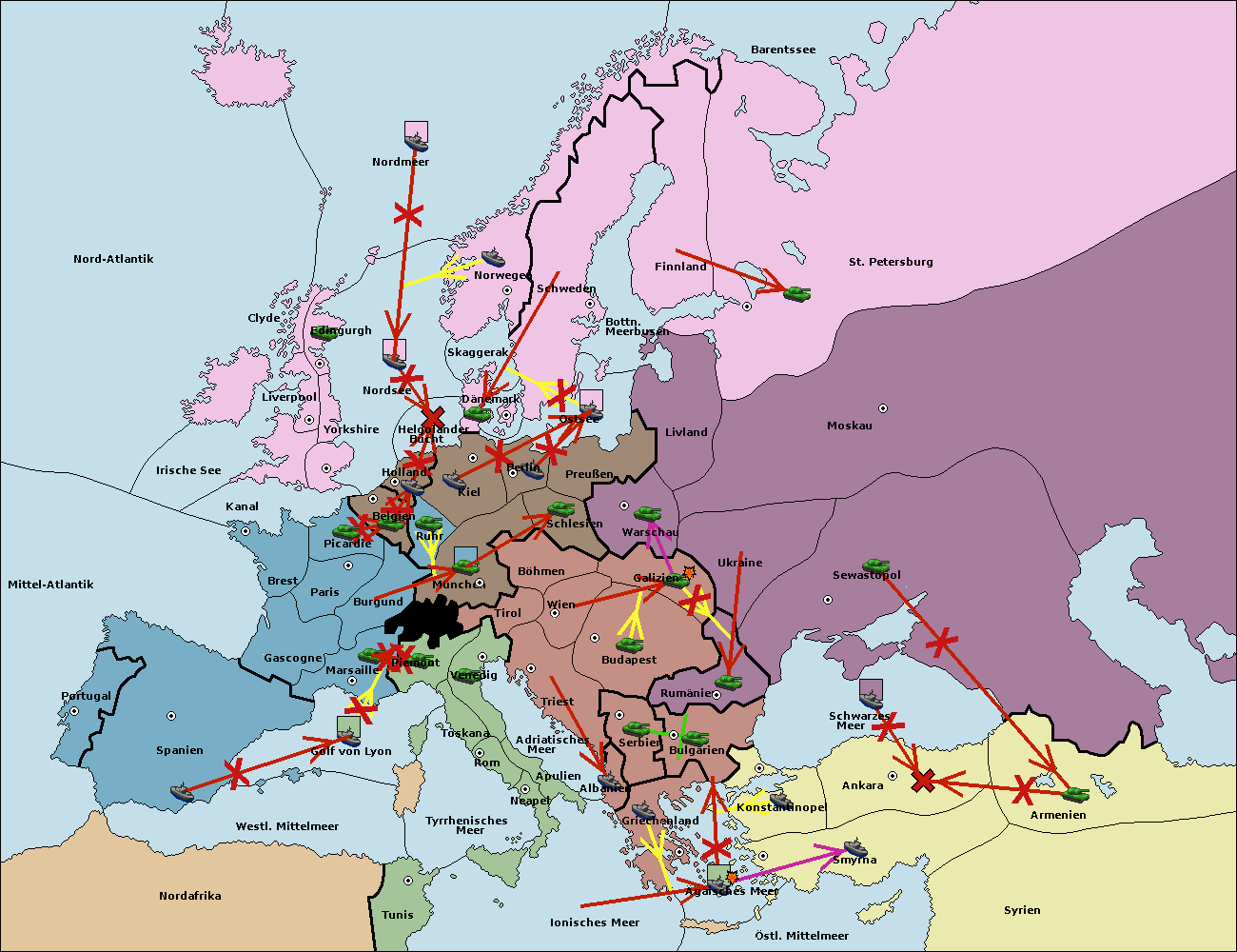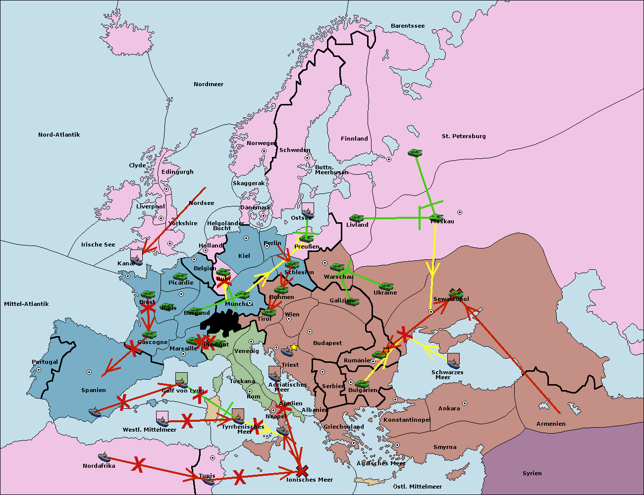 • Die Armee in Bulgarien wird zerstörtFlotte in Bulgarien gebaut.