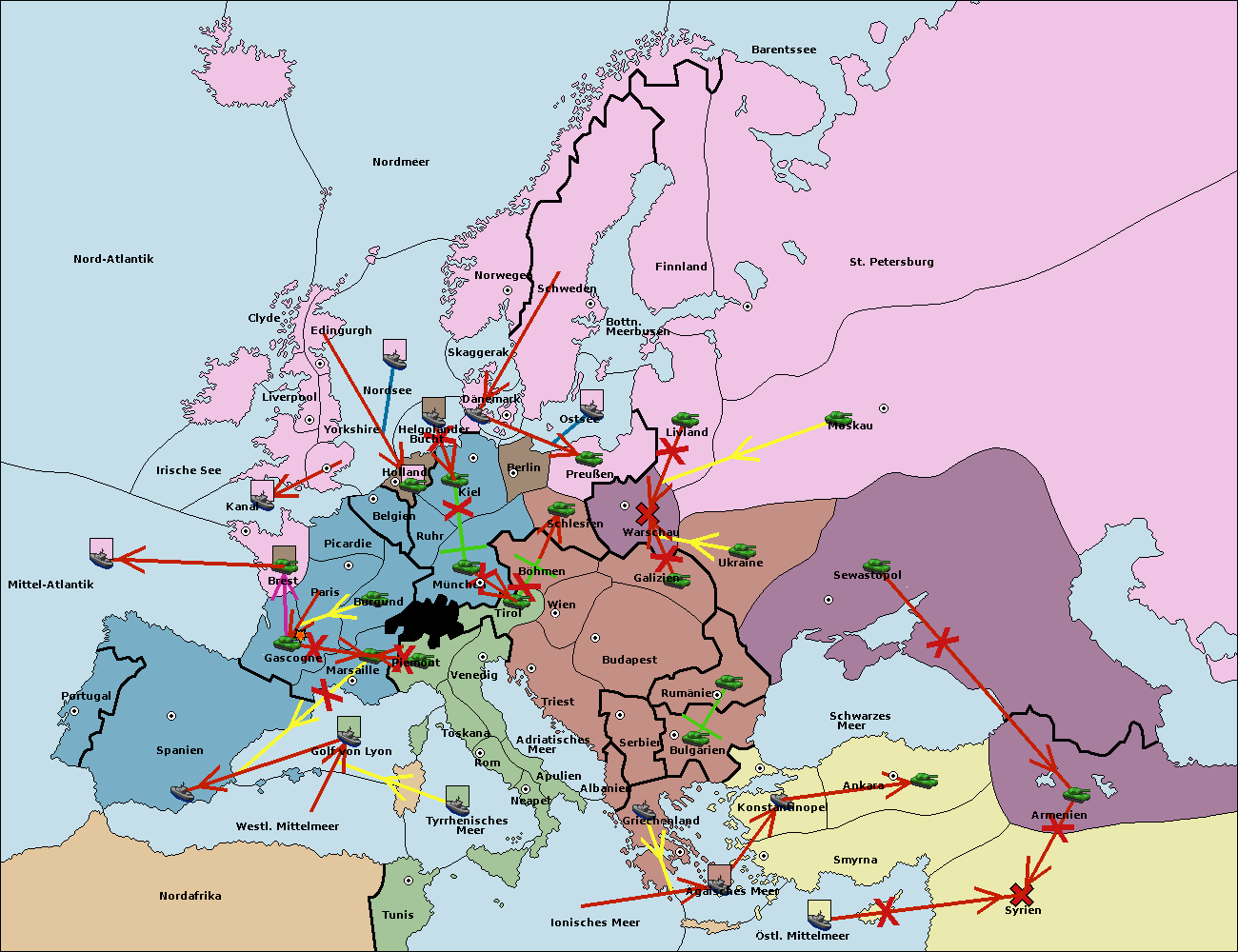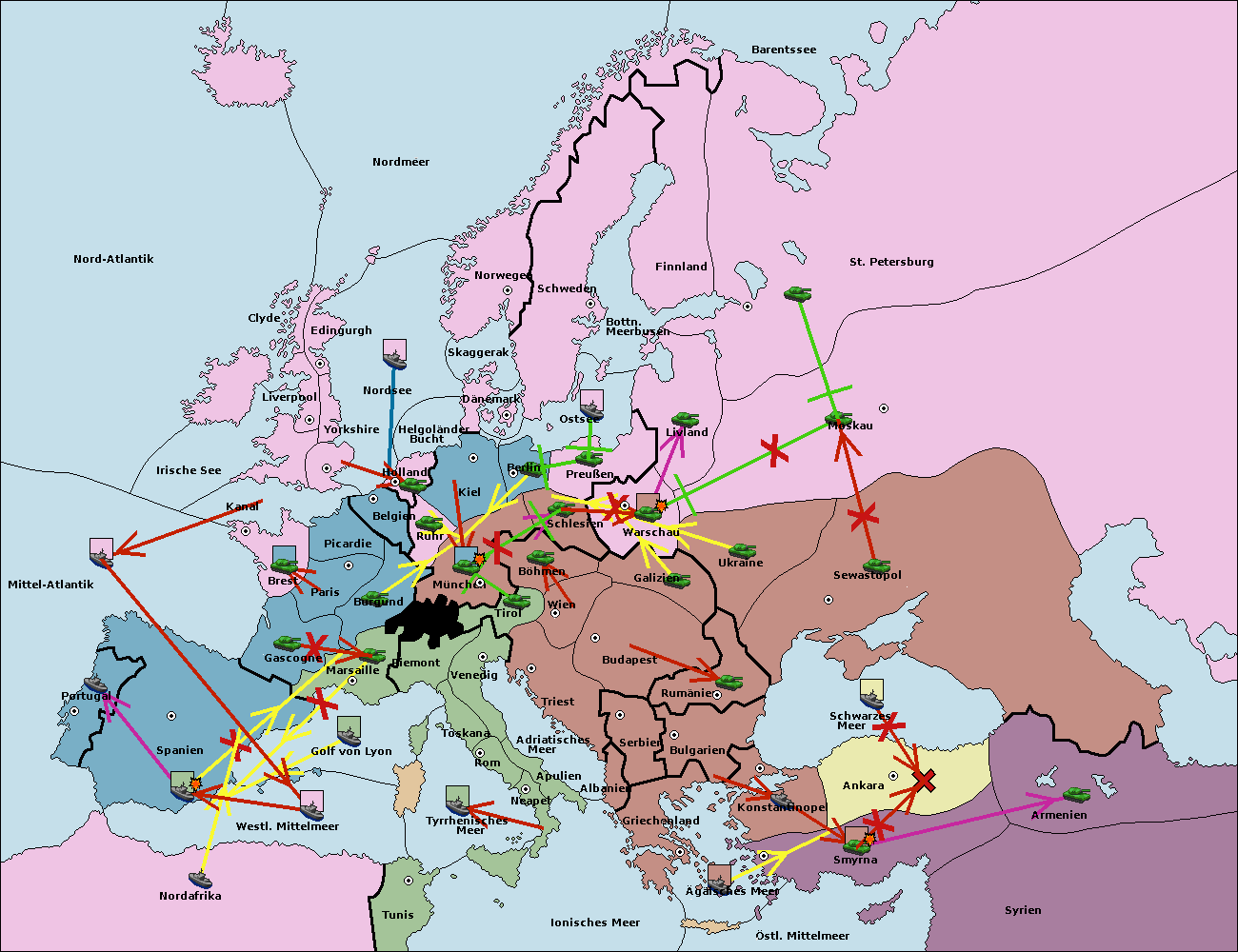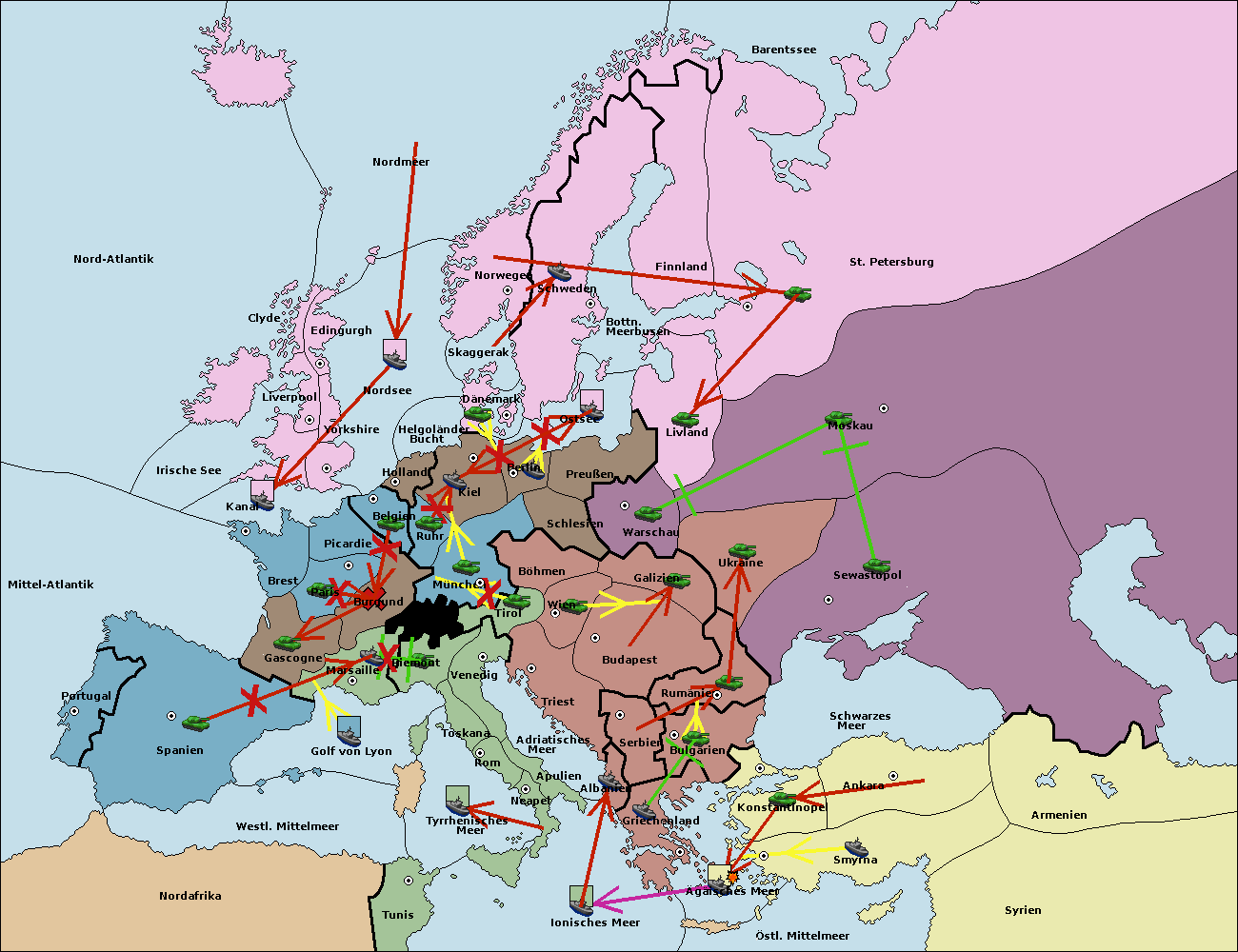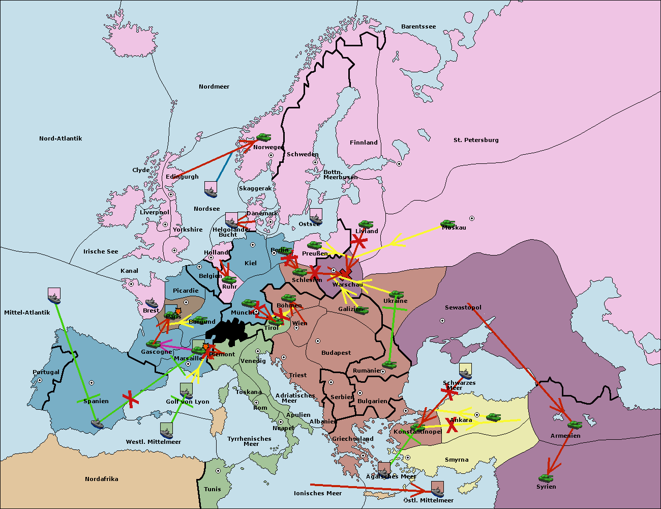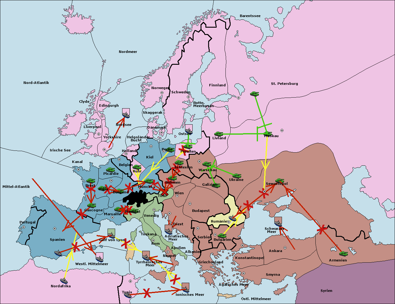 • Die Armee in Ruhr support move nach München von Burgund. (gescheitert)