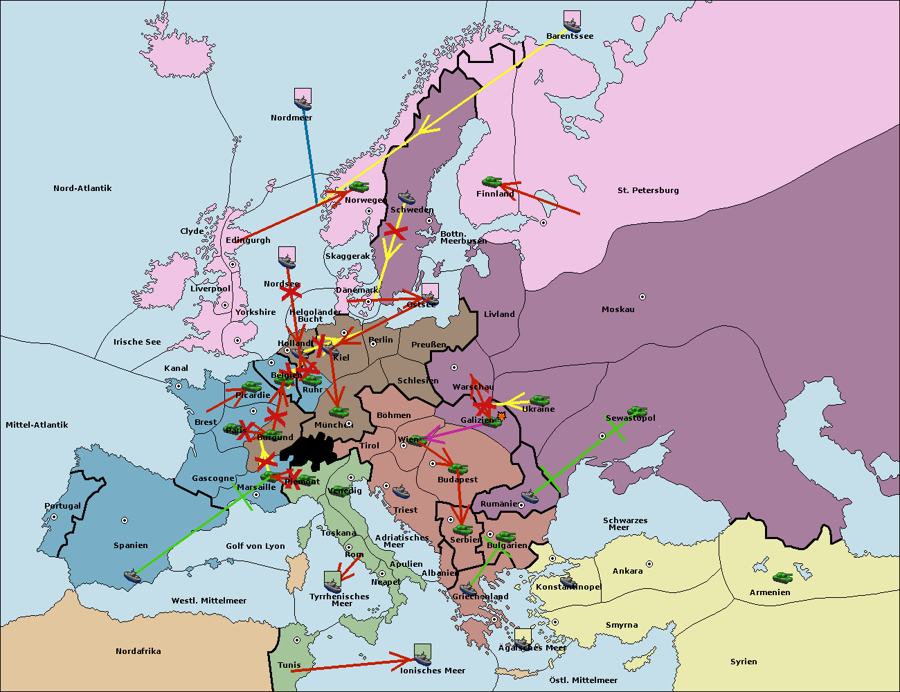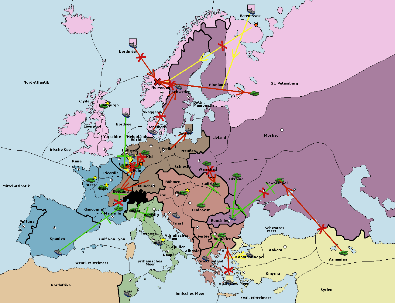 • Die Flotte in St. Petersburg (Nordküste) support move nach Norwegen von Schweden. (gescheitert) (verdrängt)