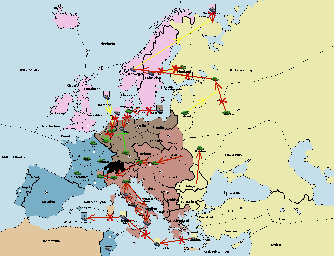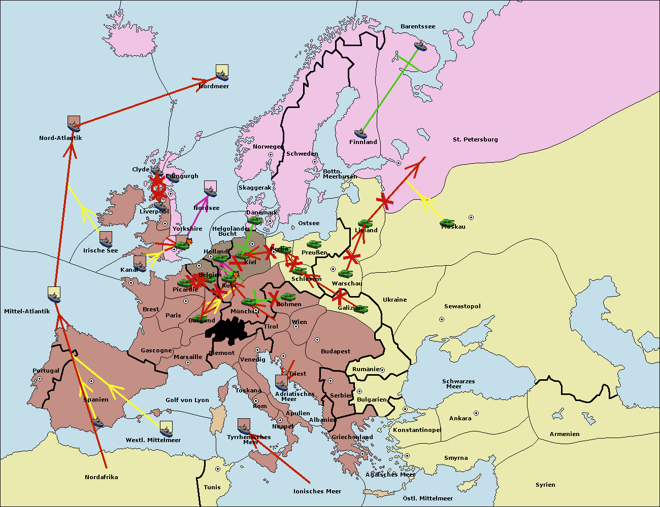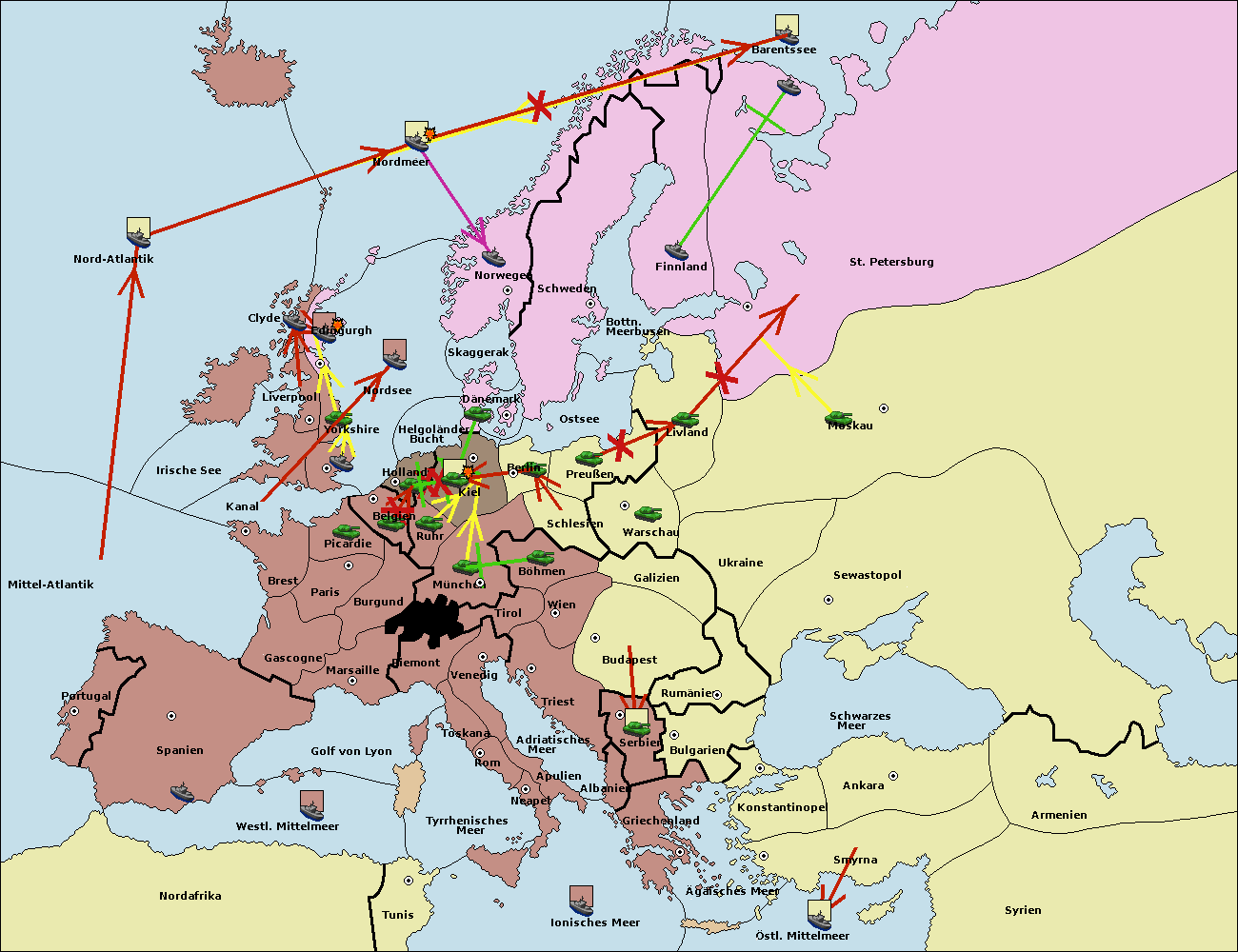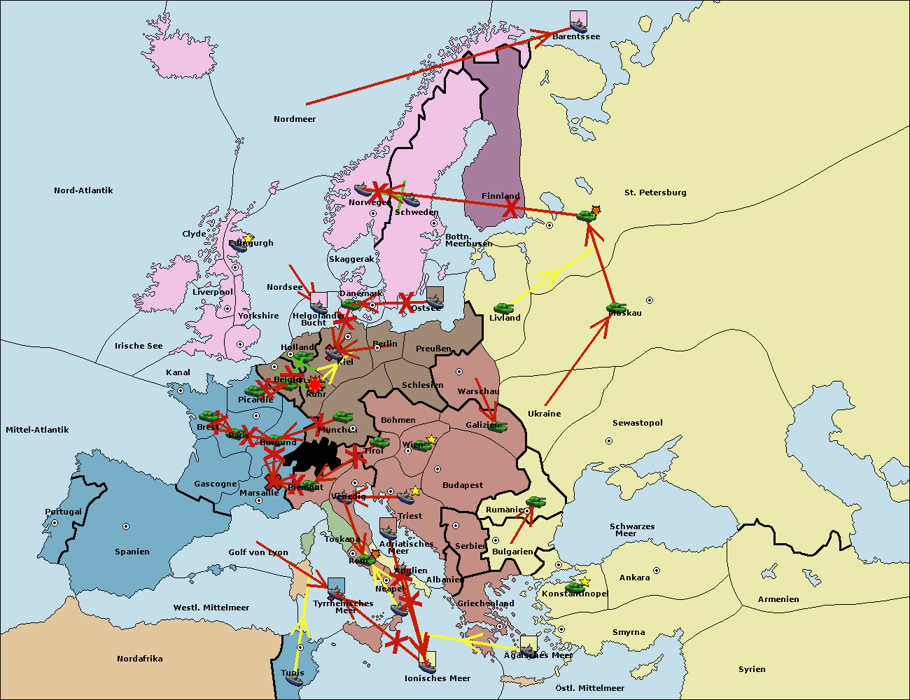 • Die Armee in Kiel wird zerstörtFlotte in Kiel gebaut.