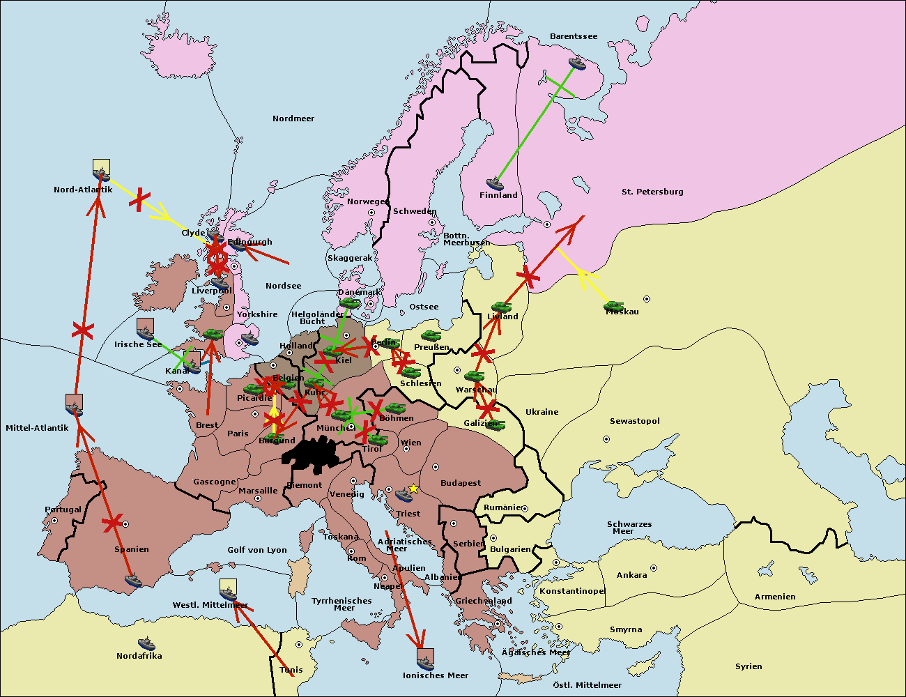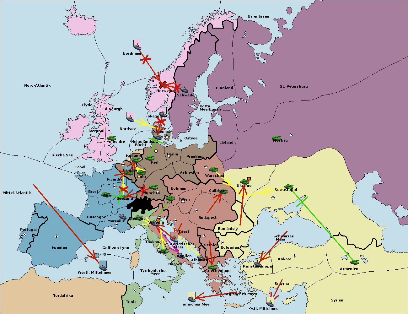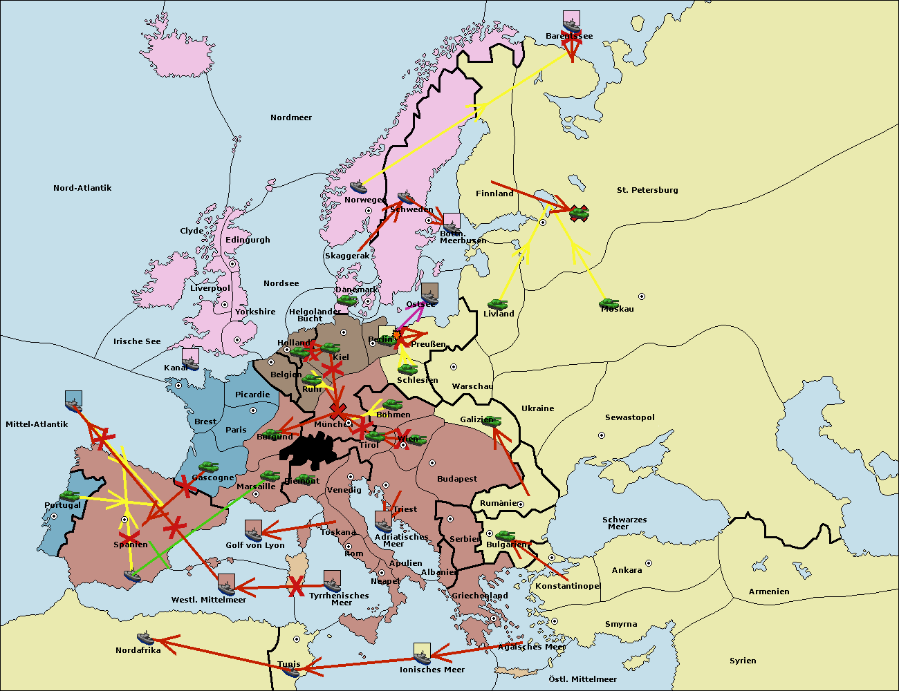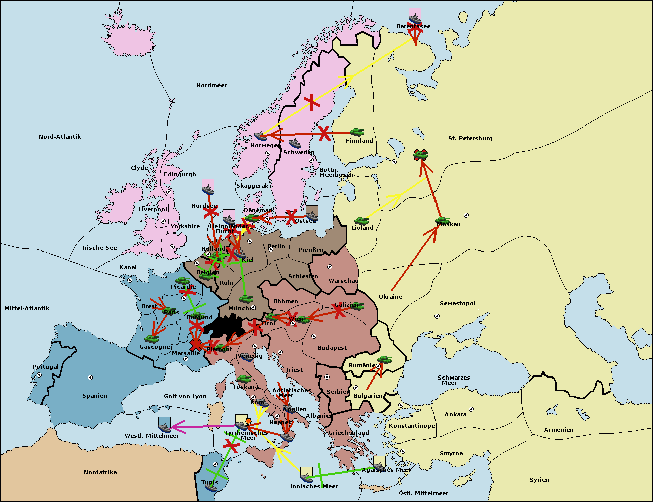• Die Armee in Kiel wird zerstörtFlotte in Kiel gebaut.