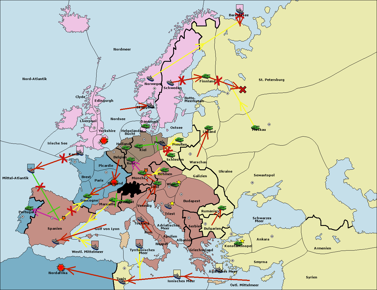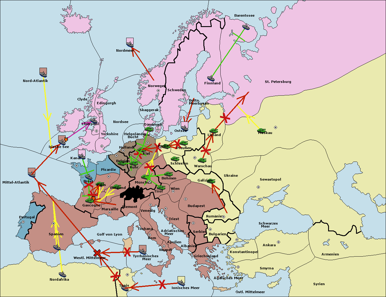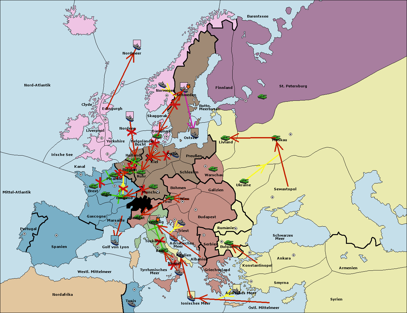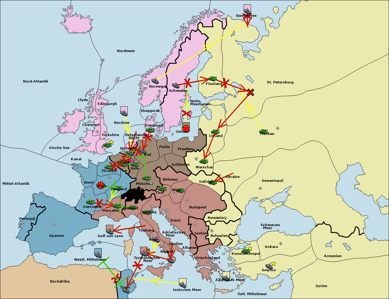 • Die Armee in Kiel wird zerstörtFlotte in Kiel gebaut.