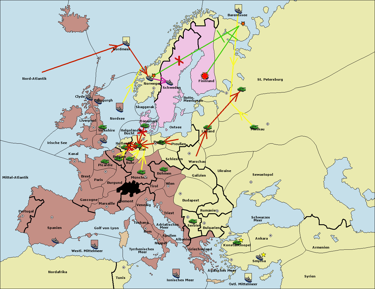 • Die Flotte in Norwegen support hold nach St. Petersburg. (gescheitert) (verdrängt)