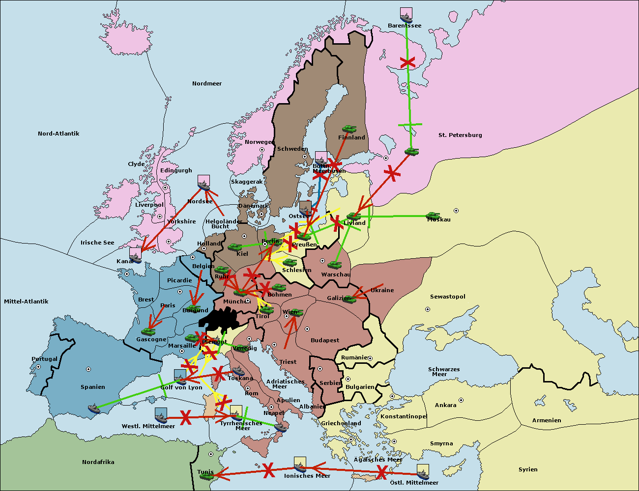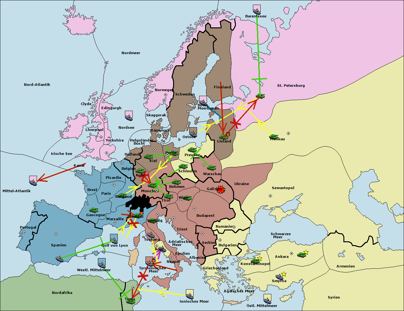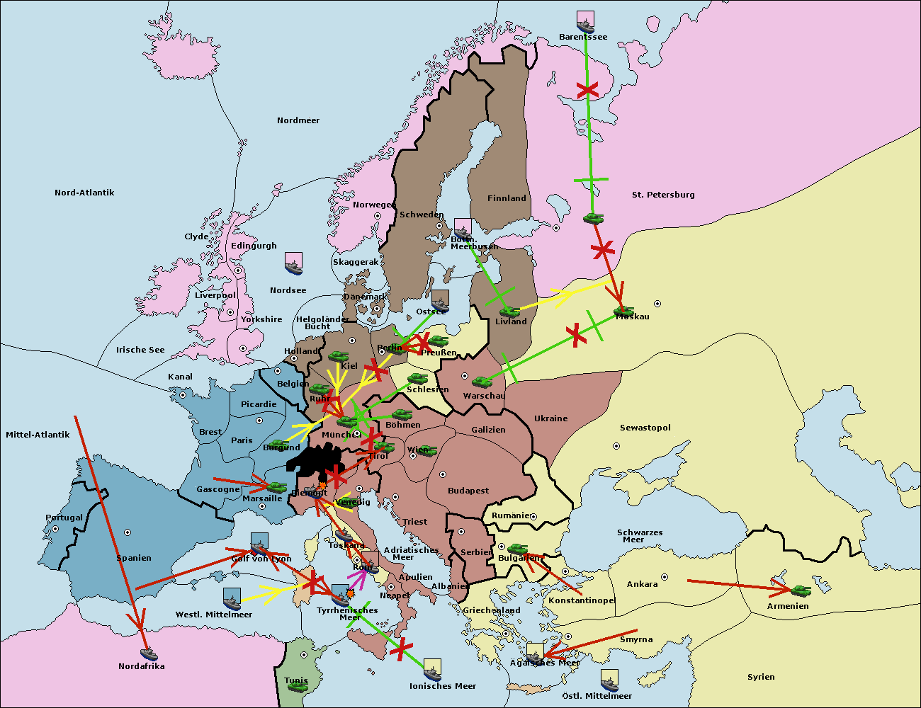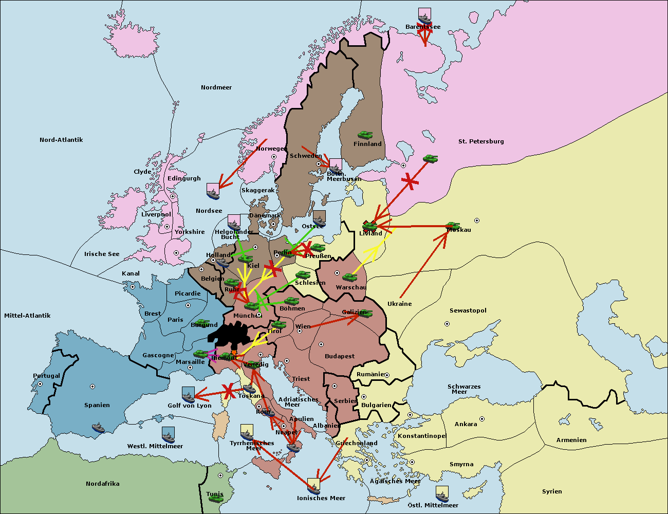 • Die Armee in München wird zerstörtFlotte in München gebaut.