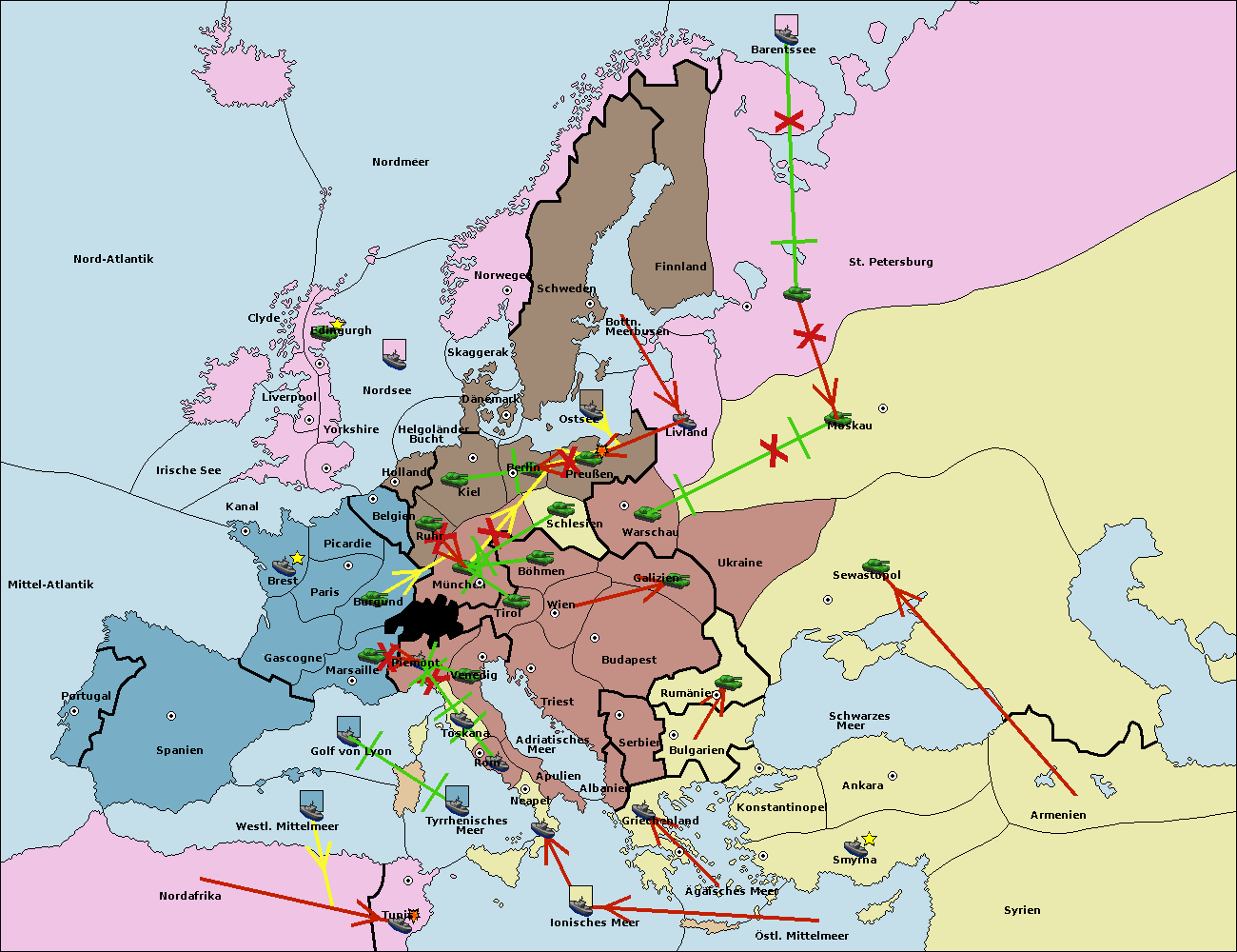 • Die Armee in Warschau support move nach Moskau von Sewastopol.