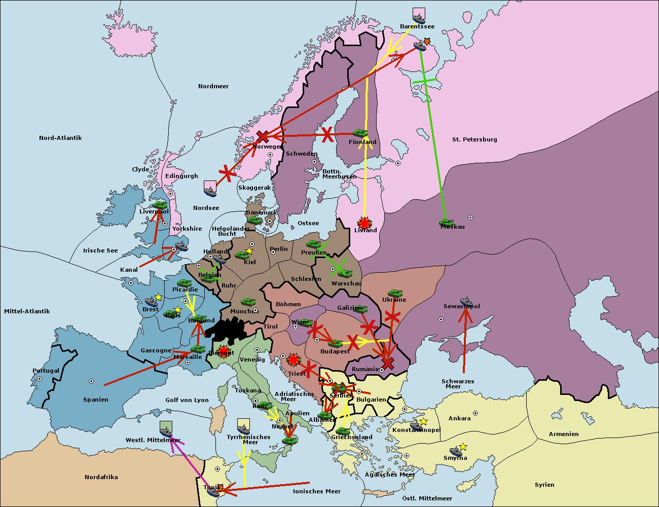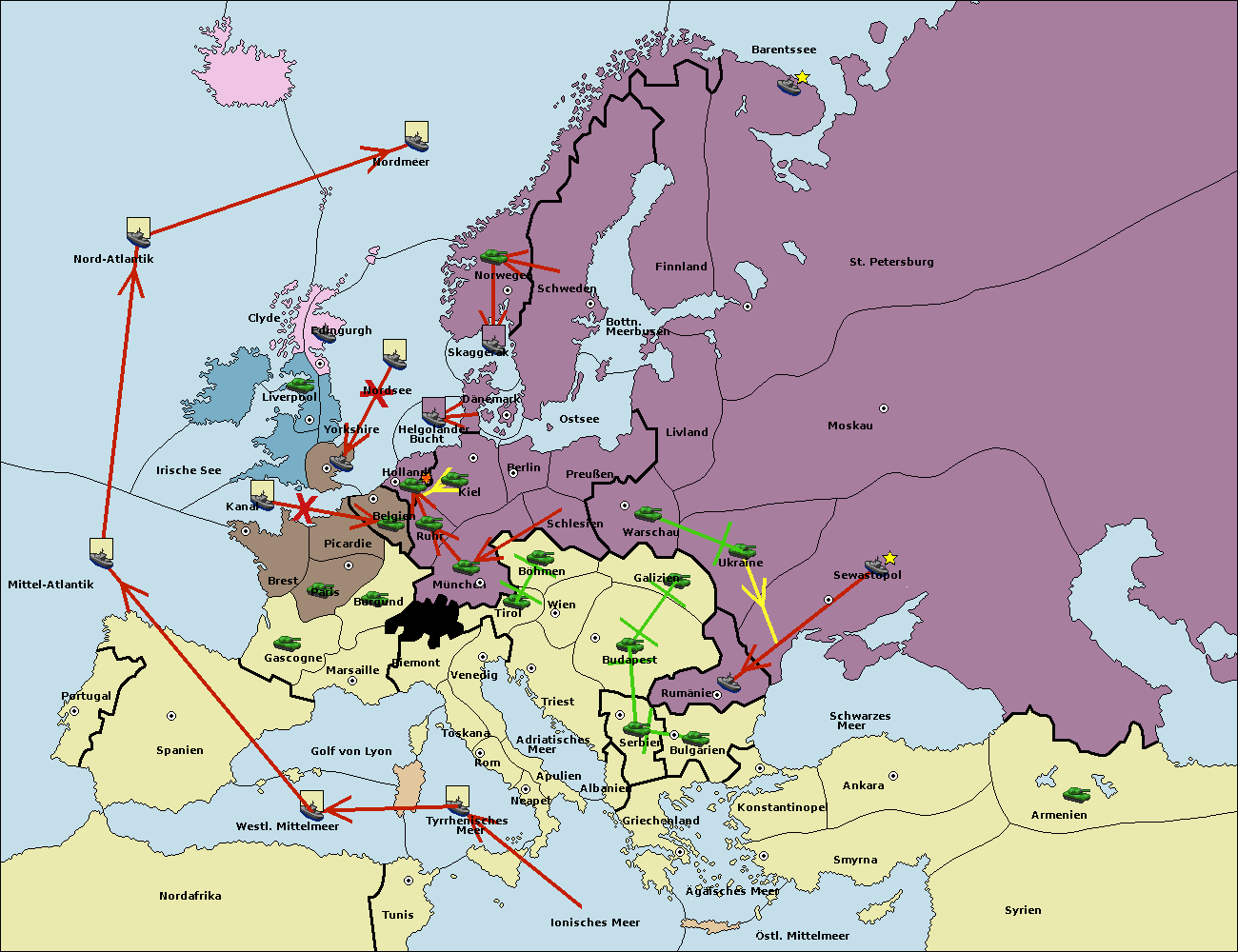• Die Flotte in Barentssee move nach St. Petersburg (Nordküste). (gescheitert)