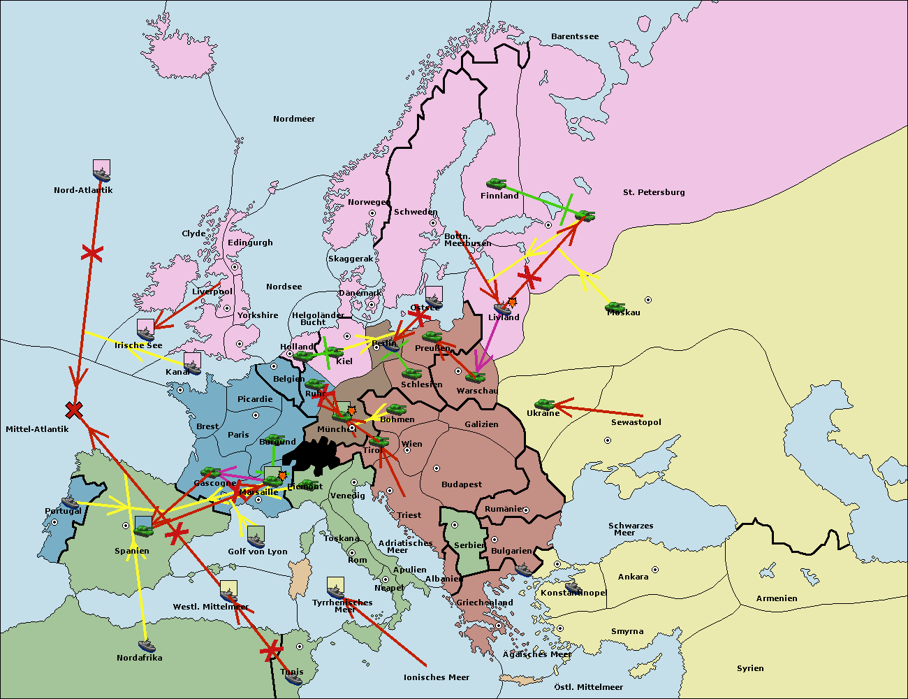 • Die Flotte in Nord Afrika support move nach Mittel-Atlantik von westl. Mittelmeer.