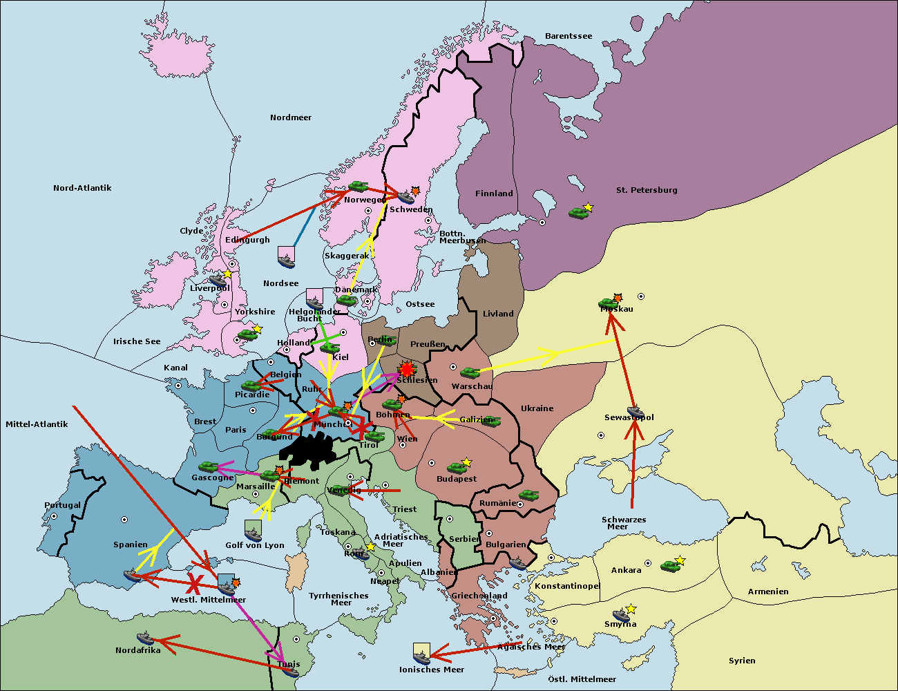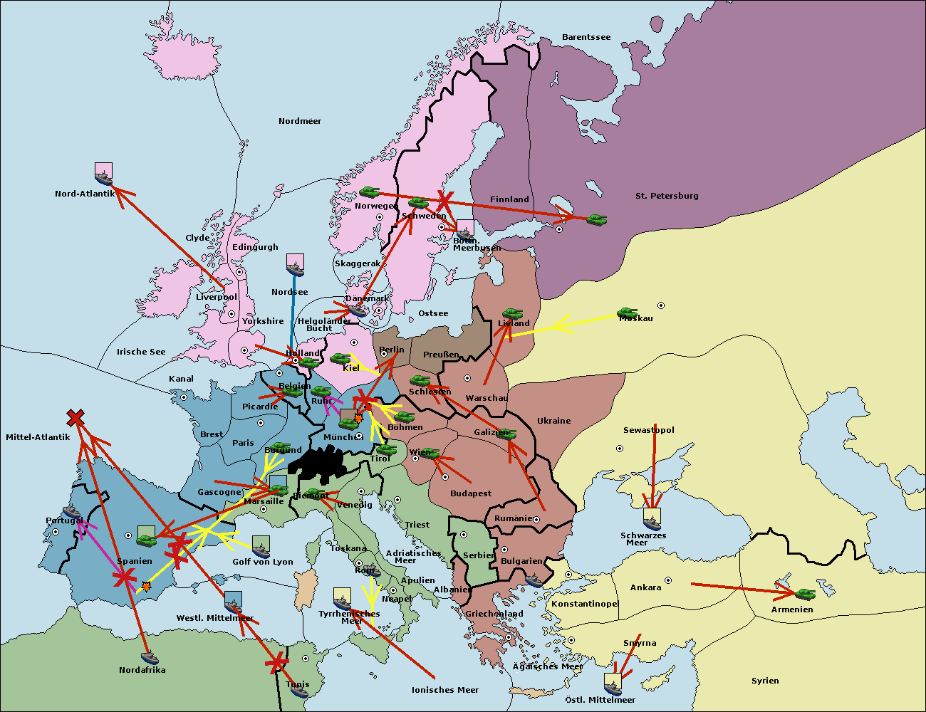 • Die Armee in München wird zerstörtFlotte in München gebaut.