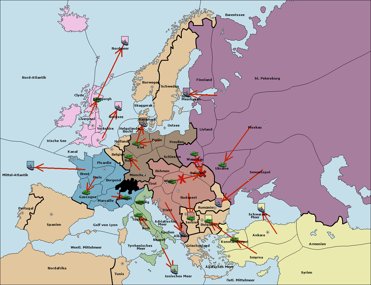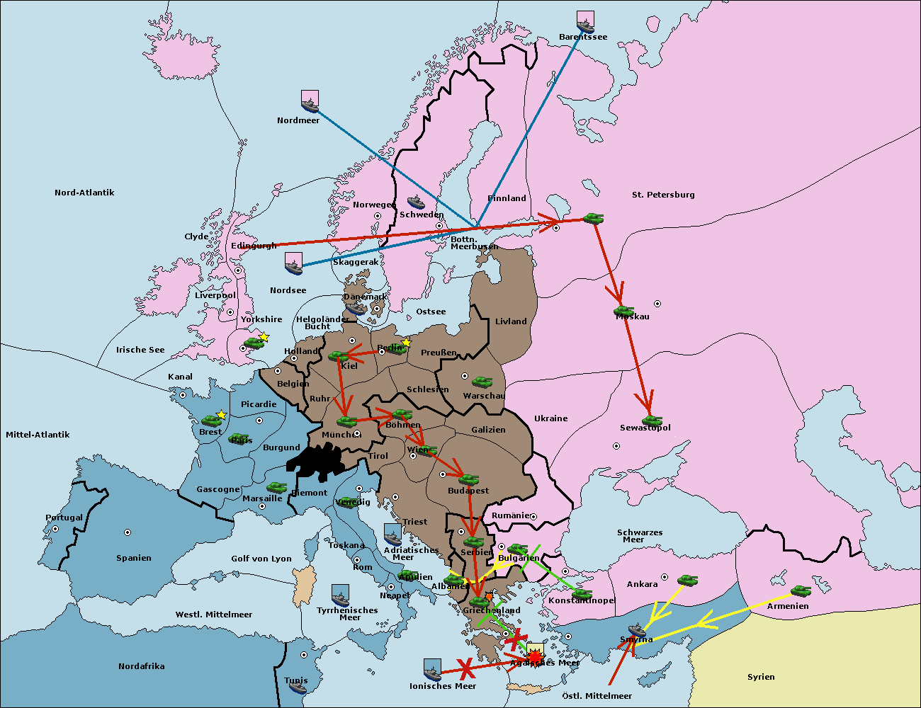 • Die Flotte in Griechenland move nach Bulgarien (Südküste). (gescheitert)