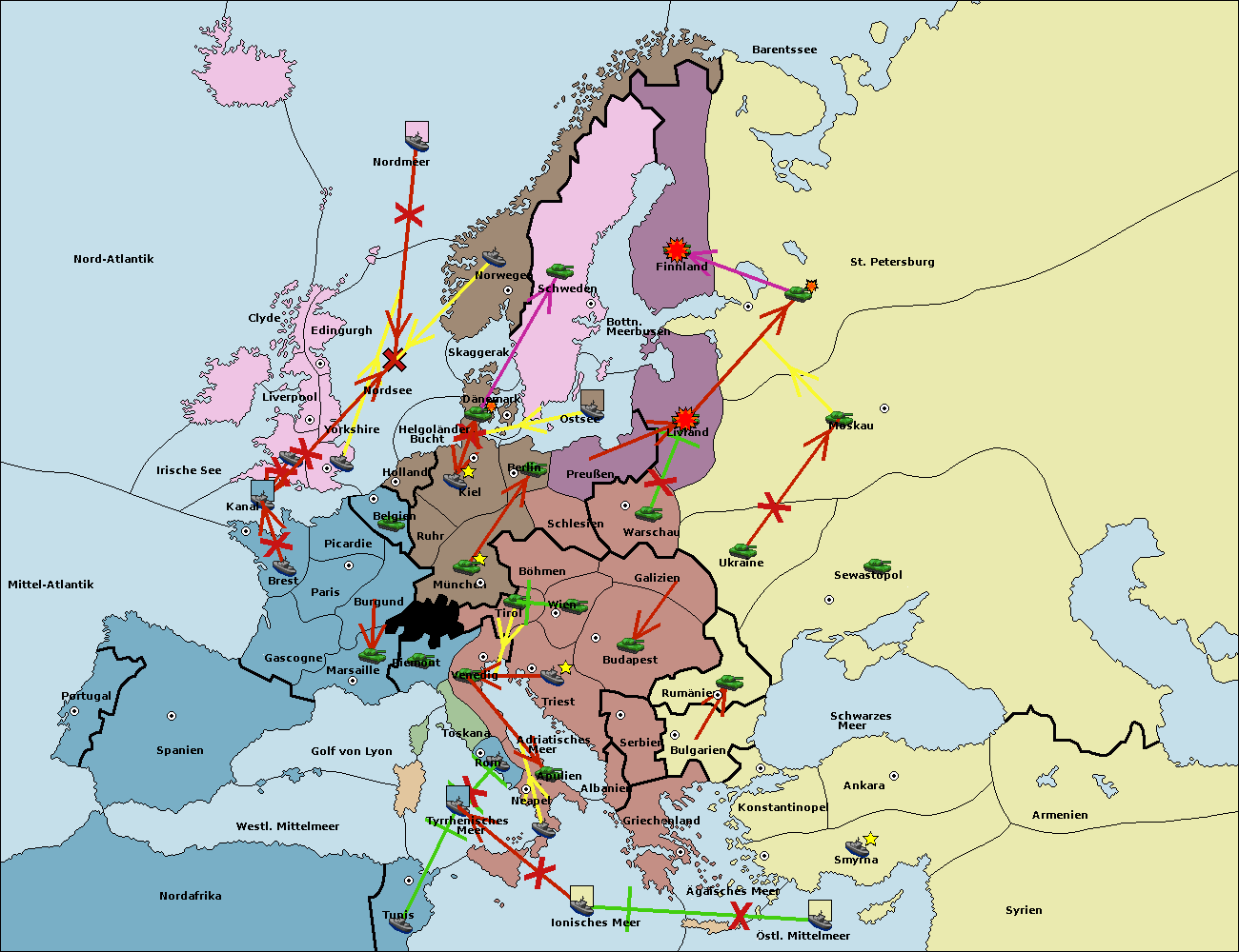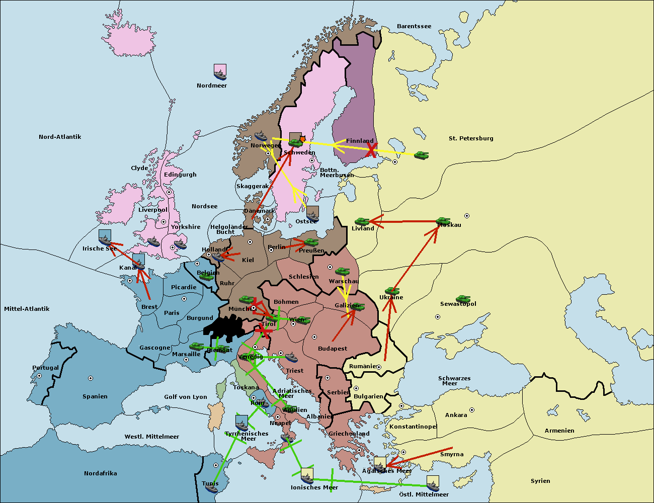 • Die Flotte in Tunis move nach westl. Mittelmeer. (gescheitert)