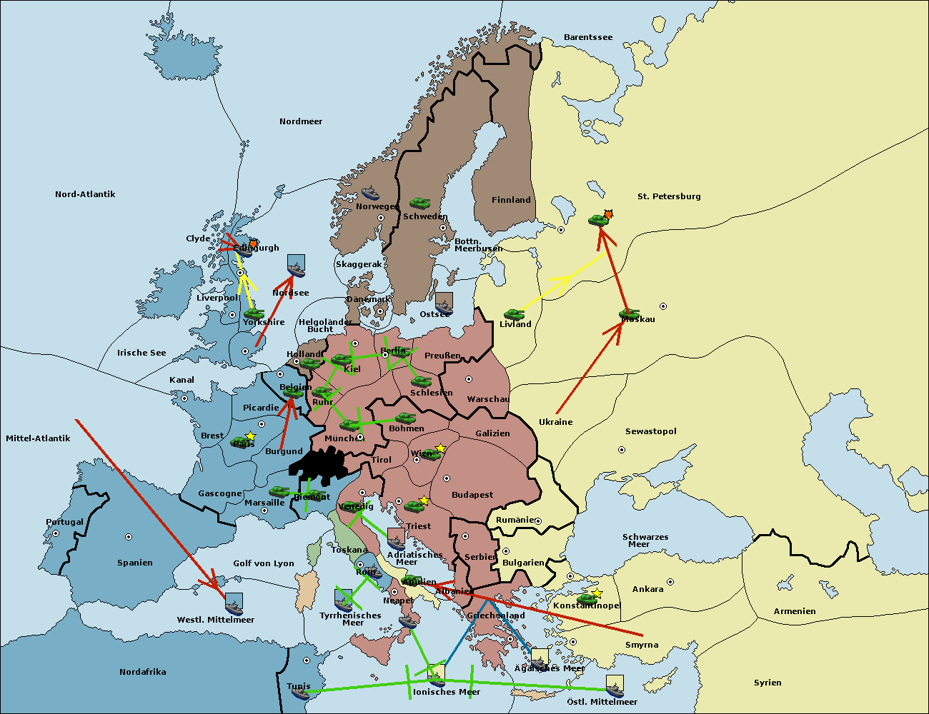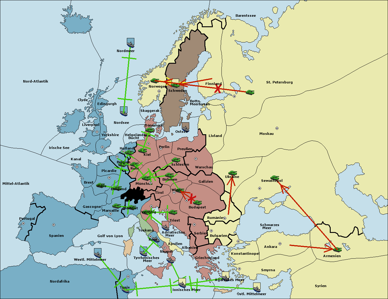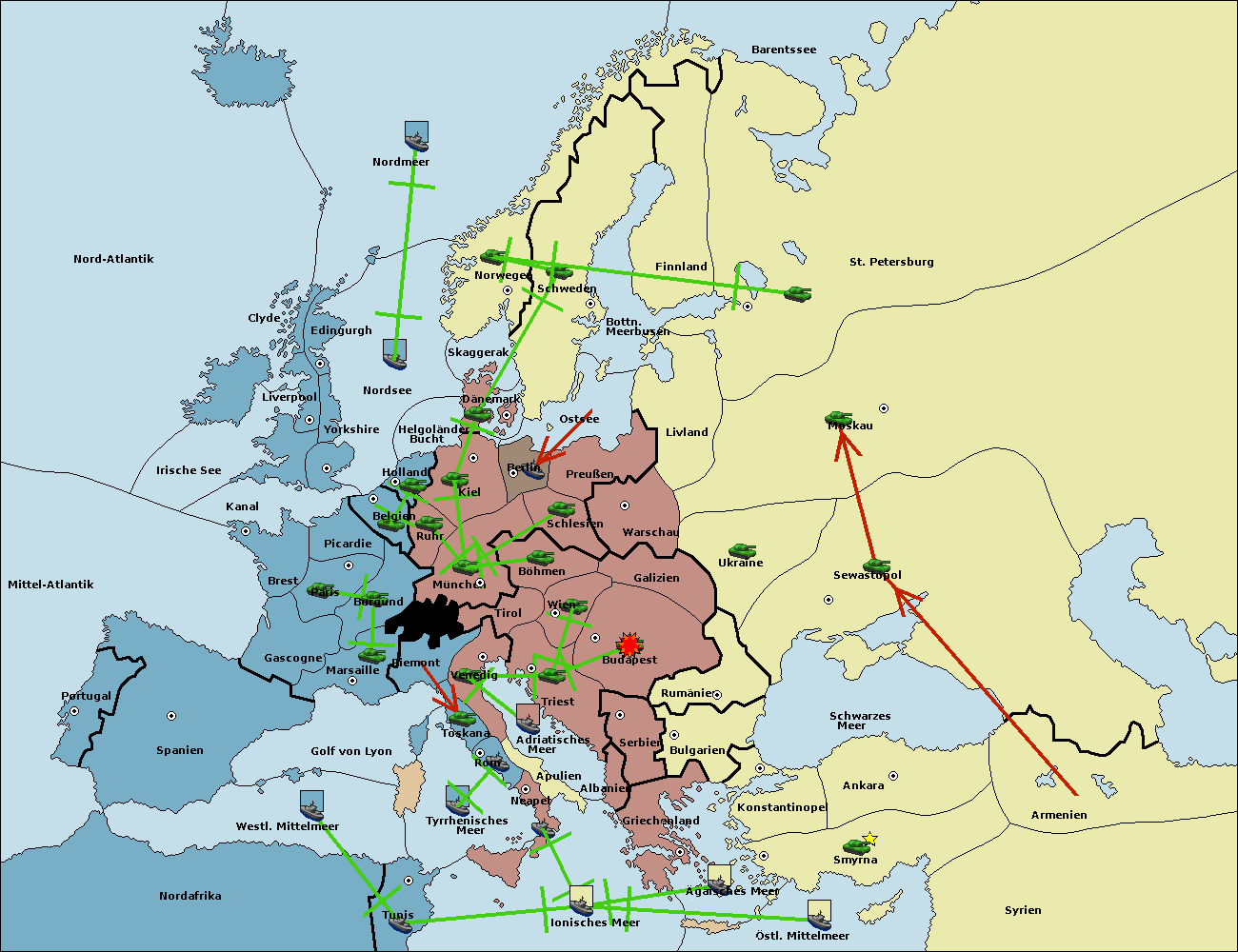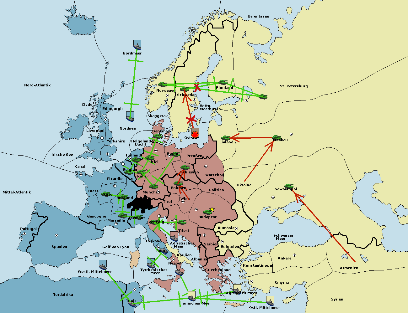 • Die Armee in Wien support move nach Galizien von Budapest.