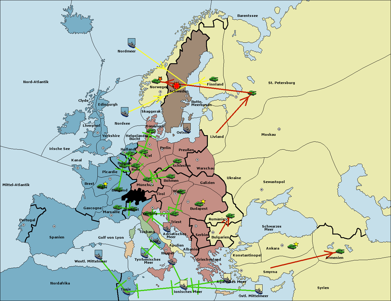 • Die Flotte in Schweden move nach Norwegen. (gescheitert)