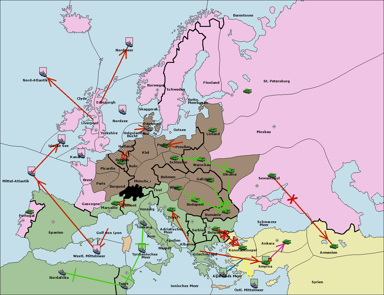 • Die Armee in Ankara support move nach Armenien von Sewastopol.