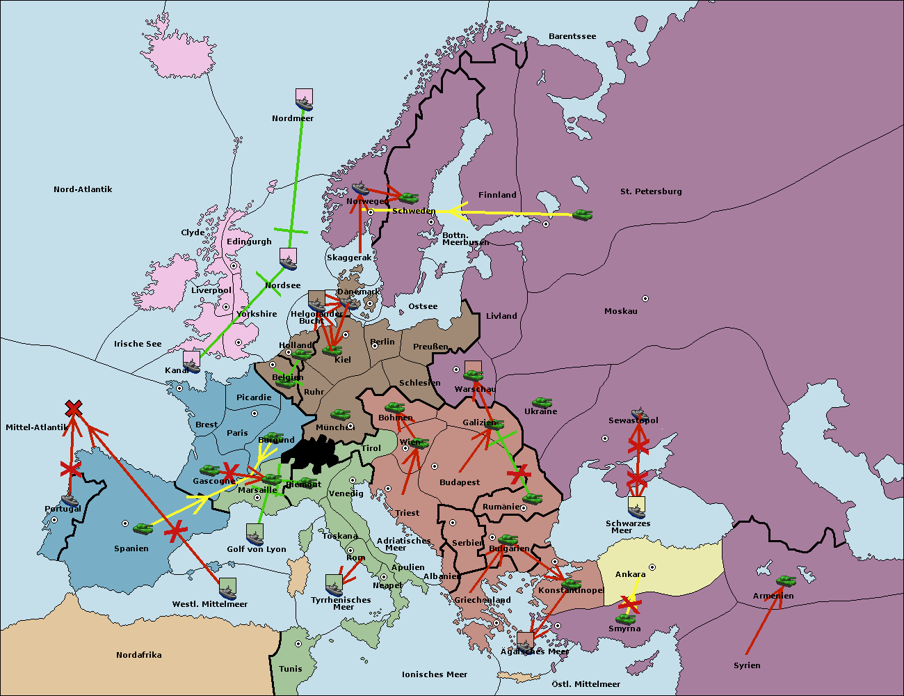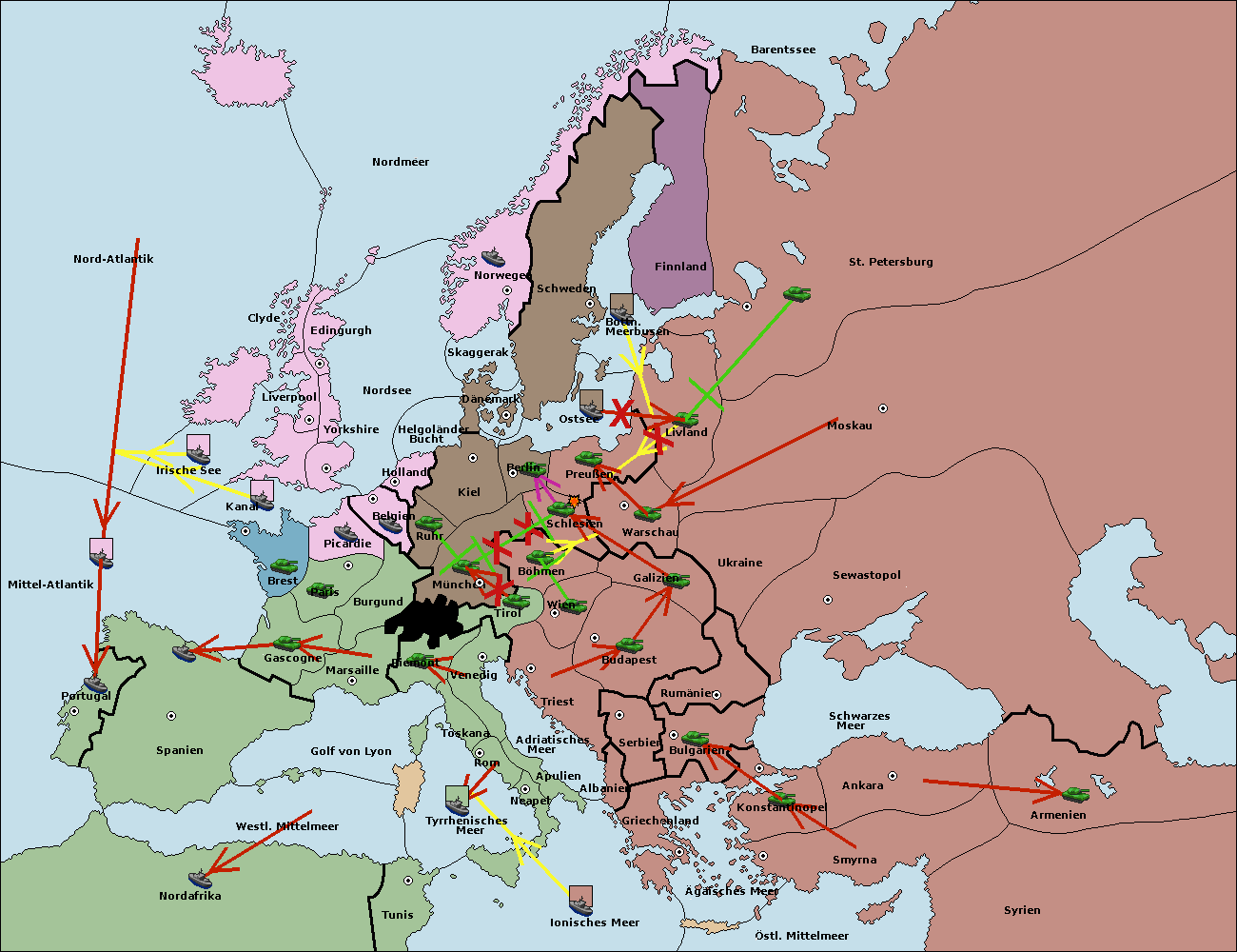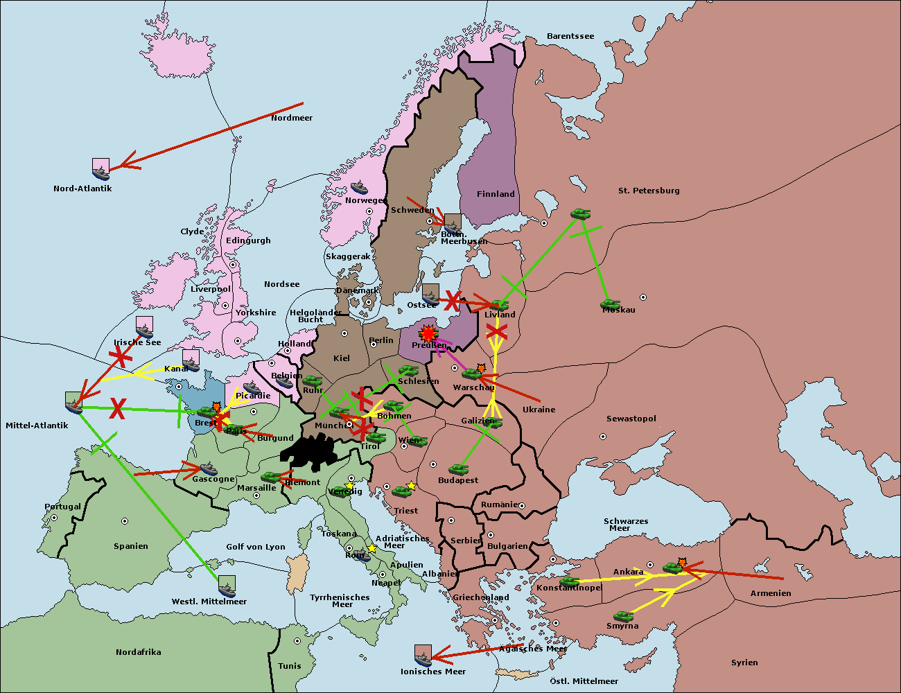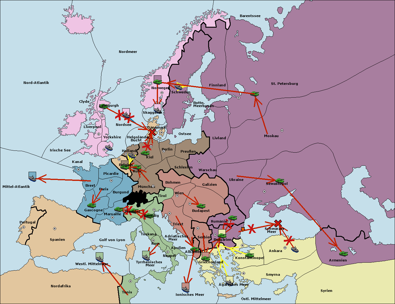 • Die Flotte in Bulgarien (Nordküste) wird zerstörtFlotte in Bulgarien (Nordküste) gebaut.