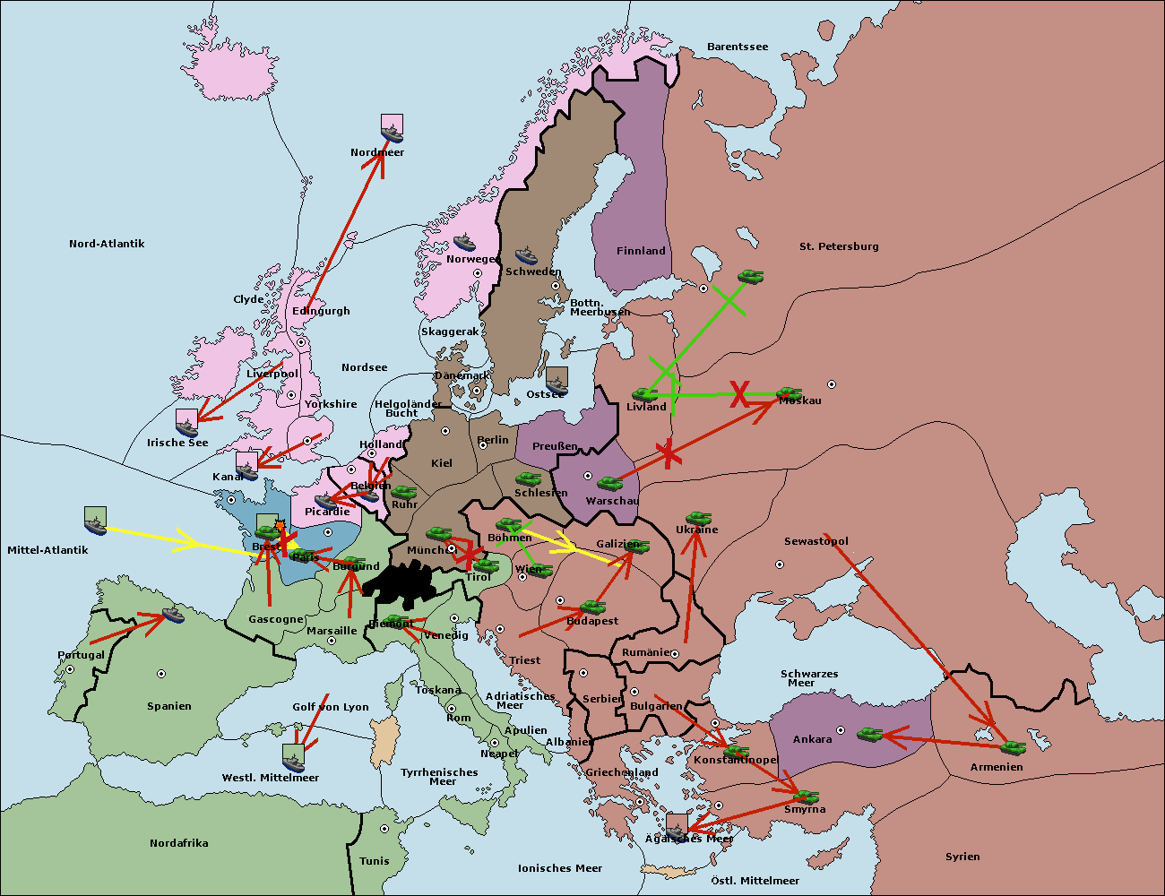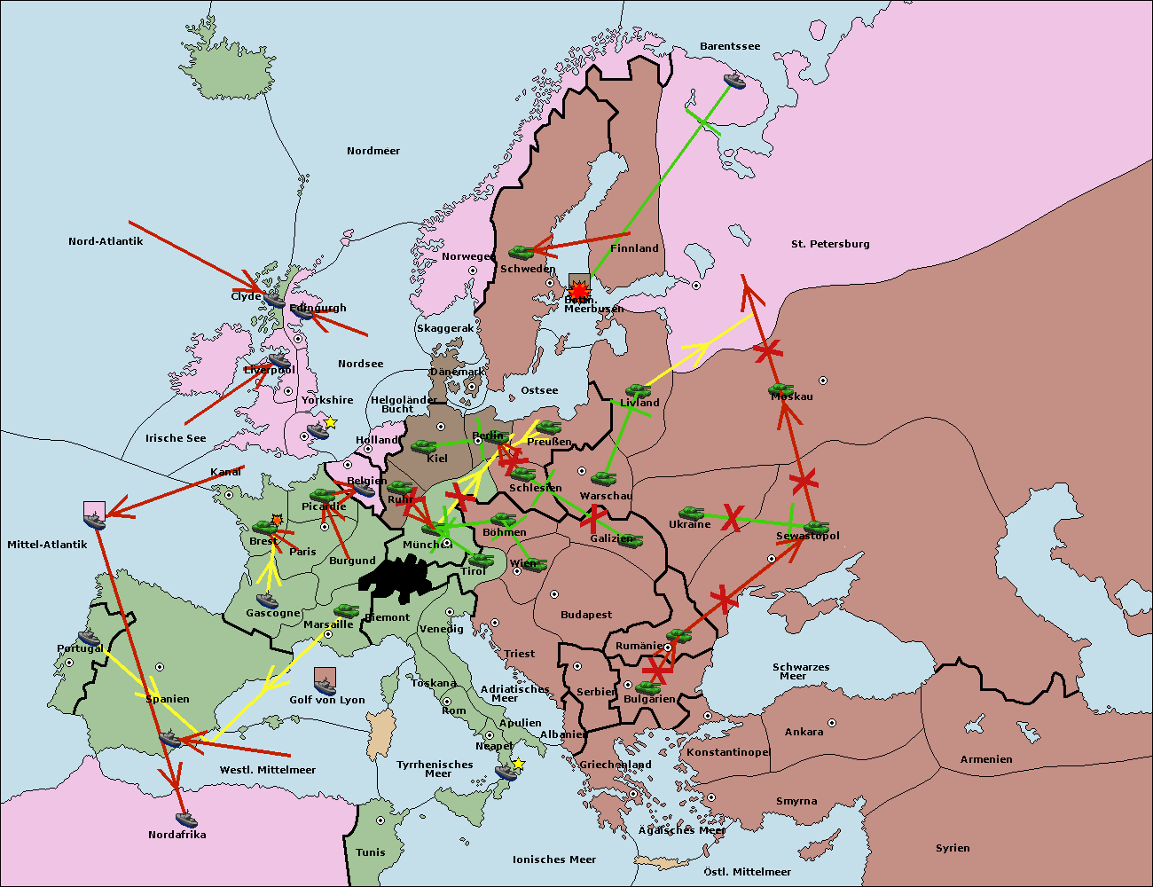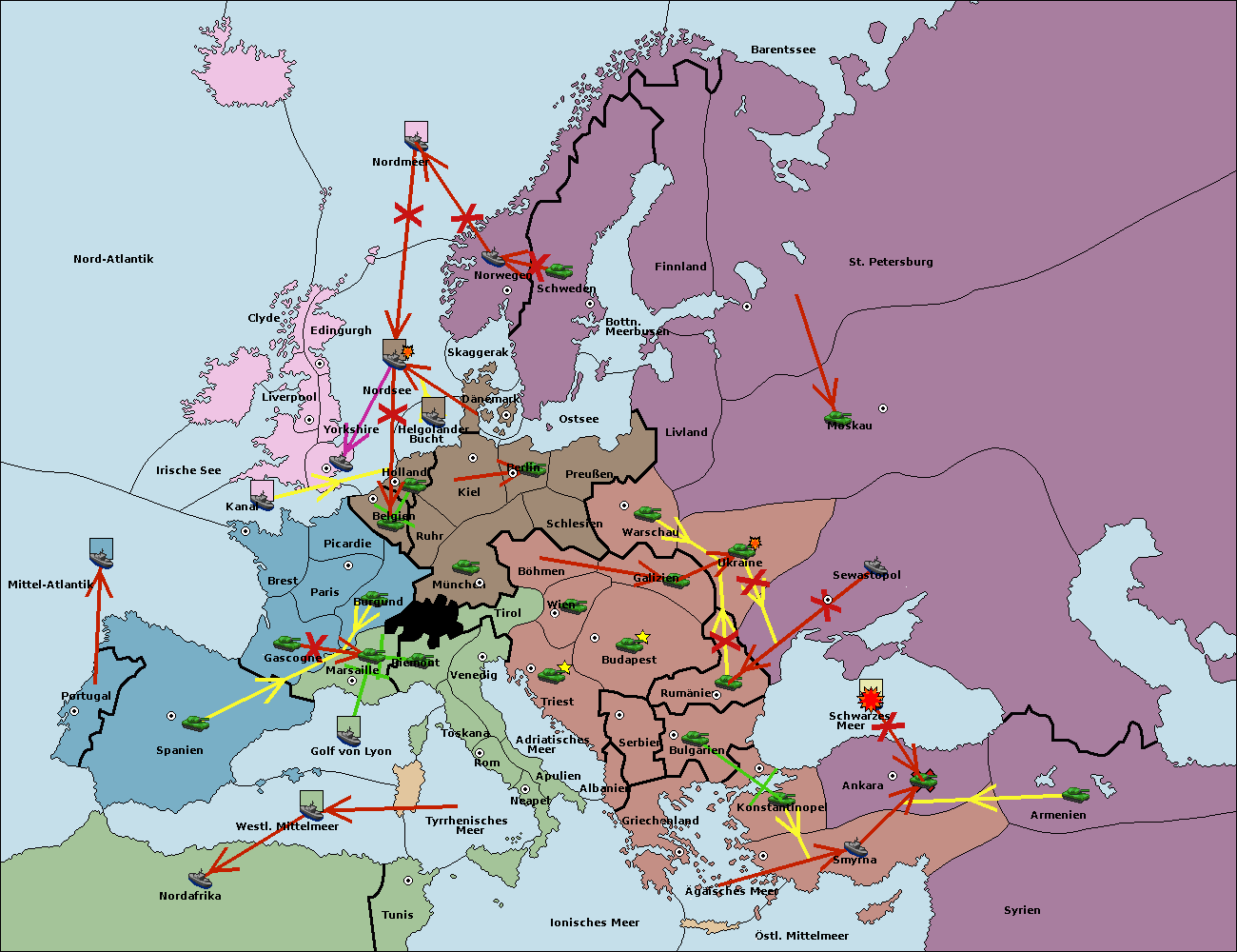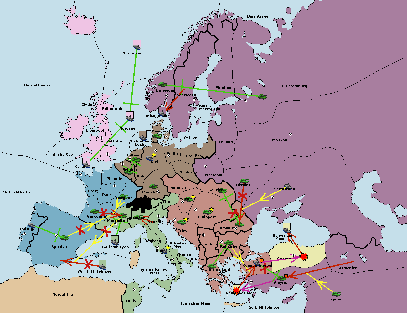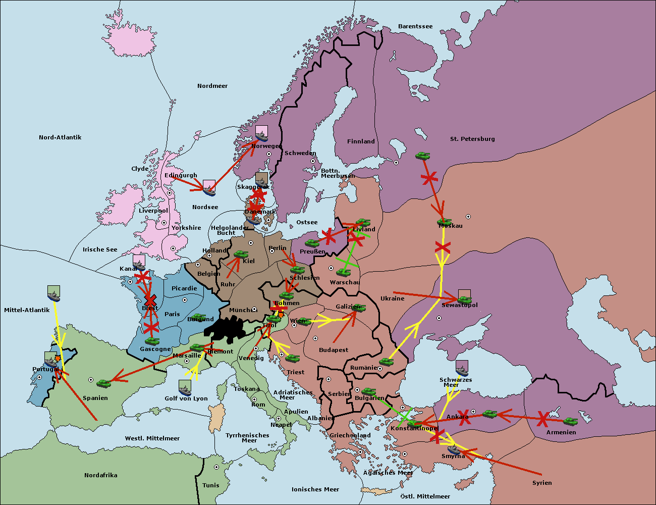 • Die Flotte in Bulgarien (Nordküste) wird zerstörtFlotte in Bulgarien (Nordküste) gebaut.