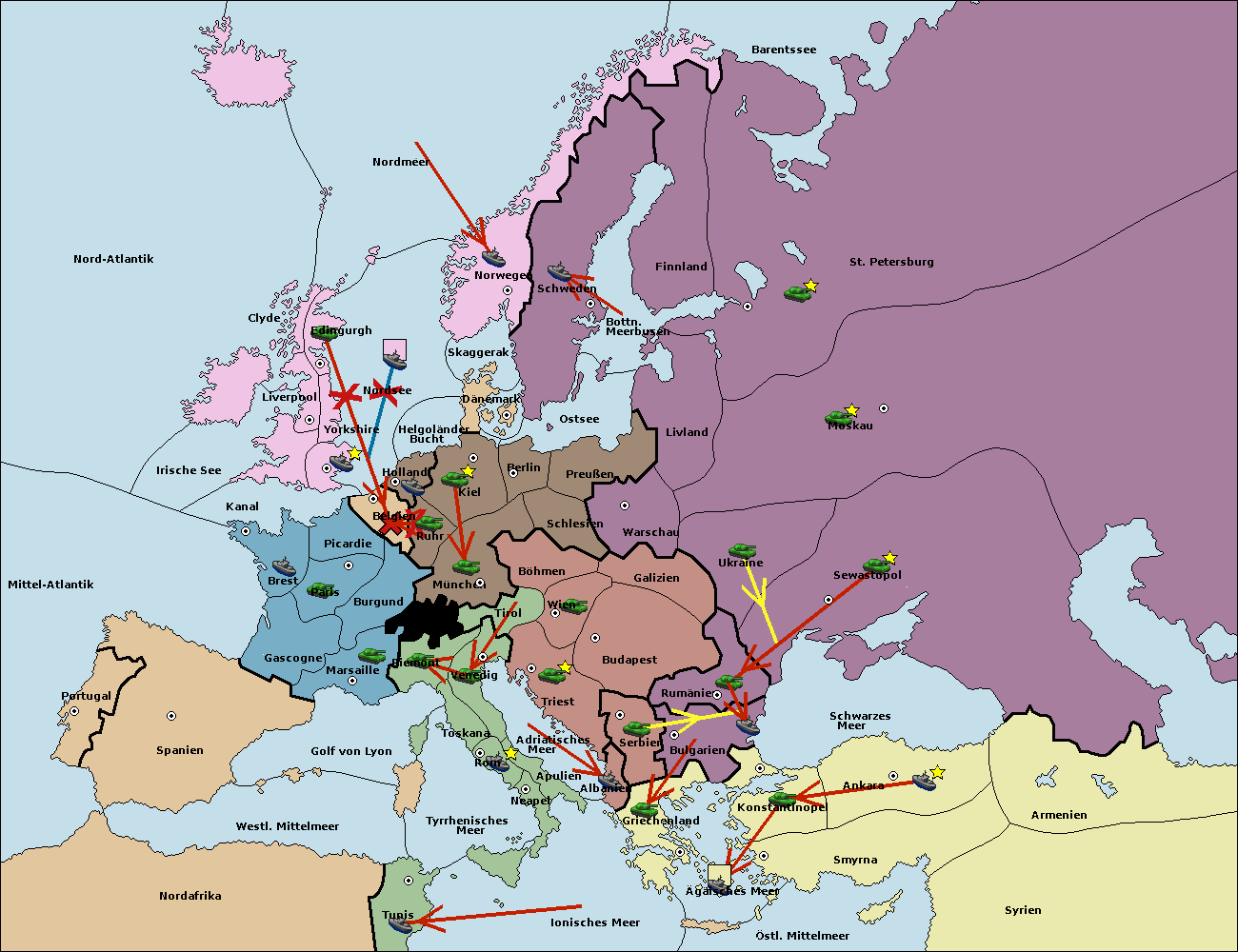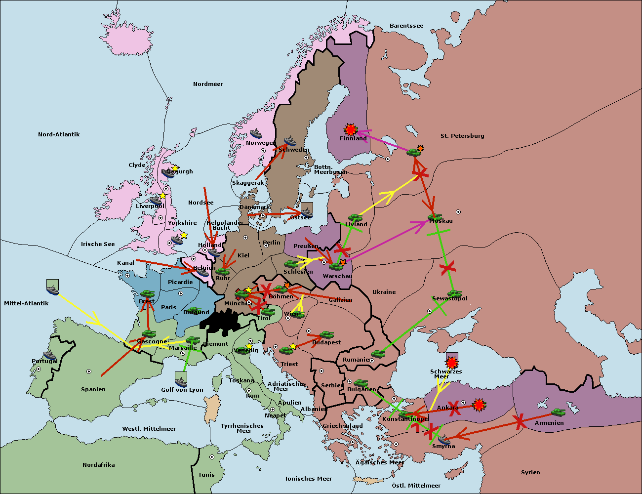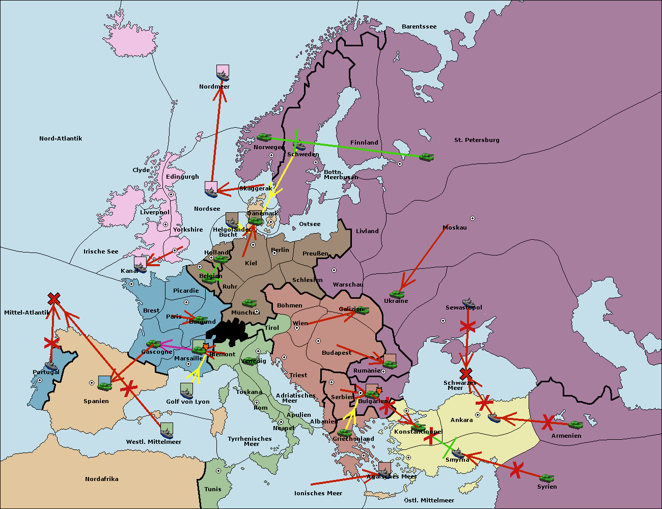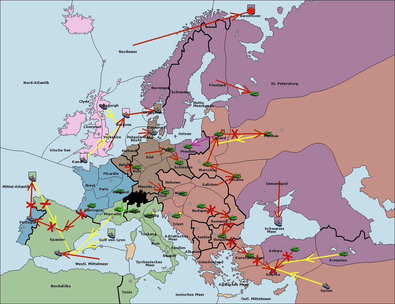• Die Flotte in Bulgarien (Nordküste) wird zerstörtFlotte in Bulgarien (Nordküste) gebaut.