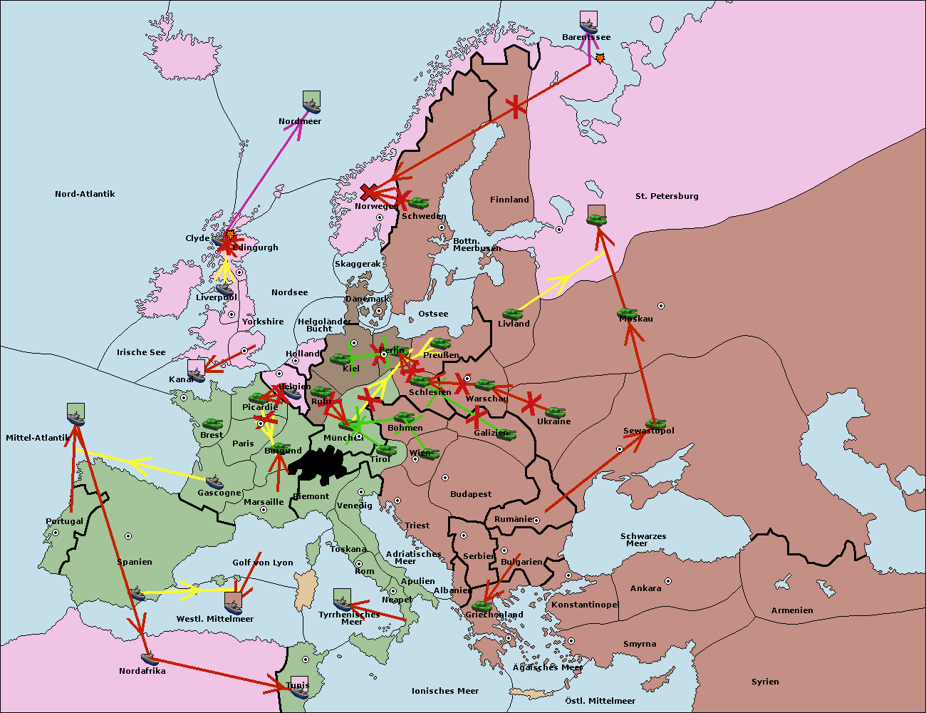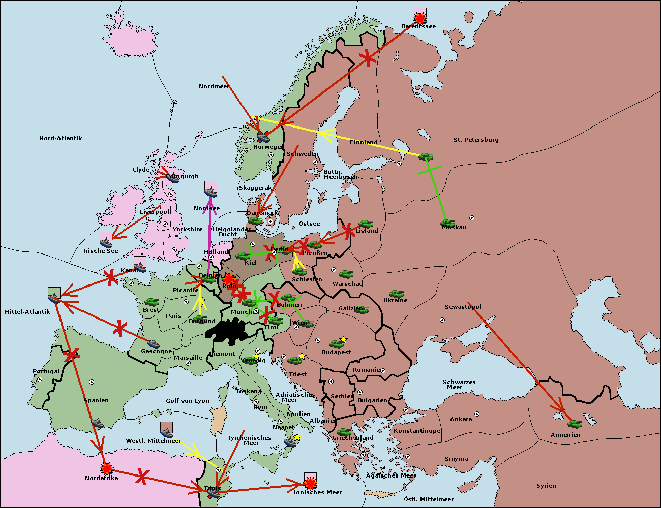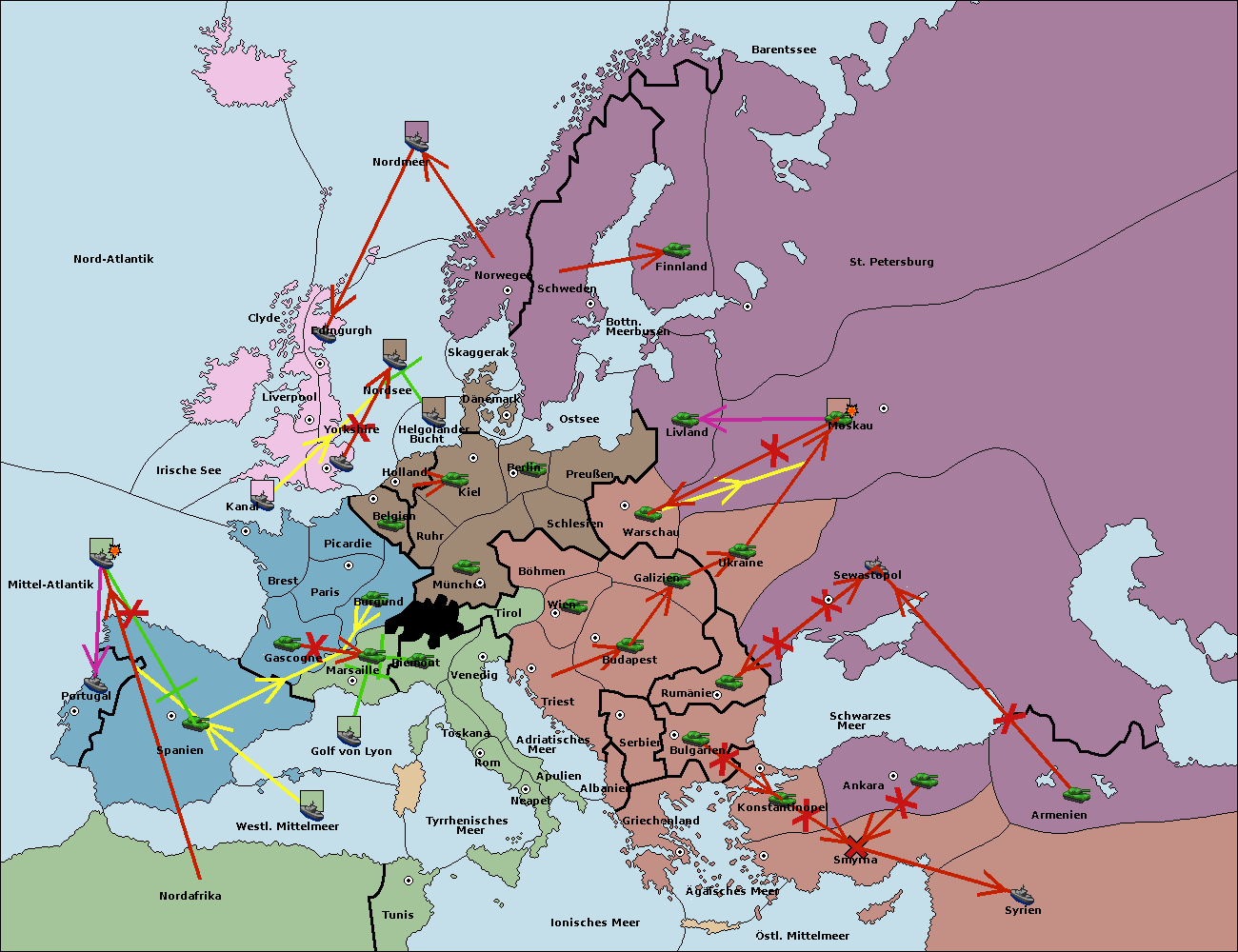 • Die Flotte in Tunis move nach Nord Afrika. (gescheitert)