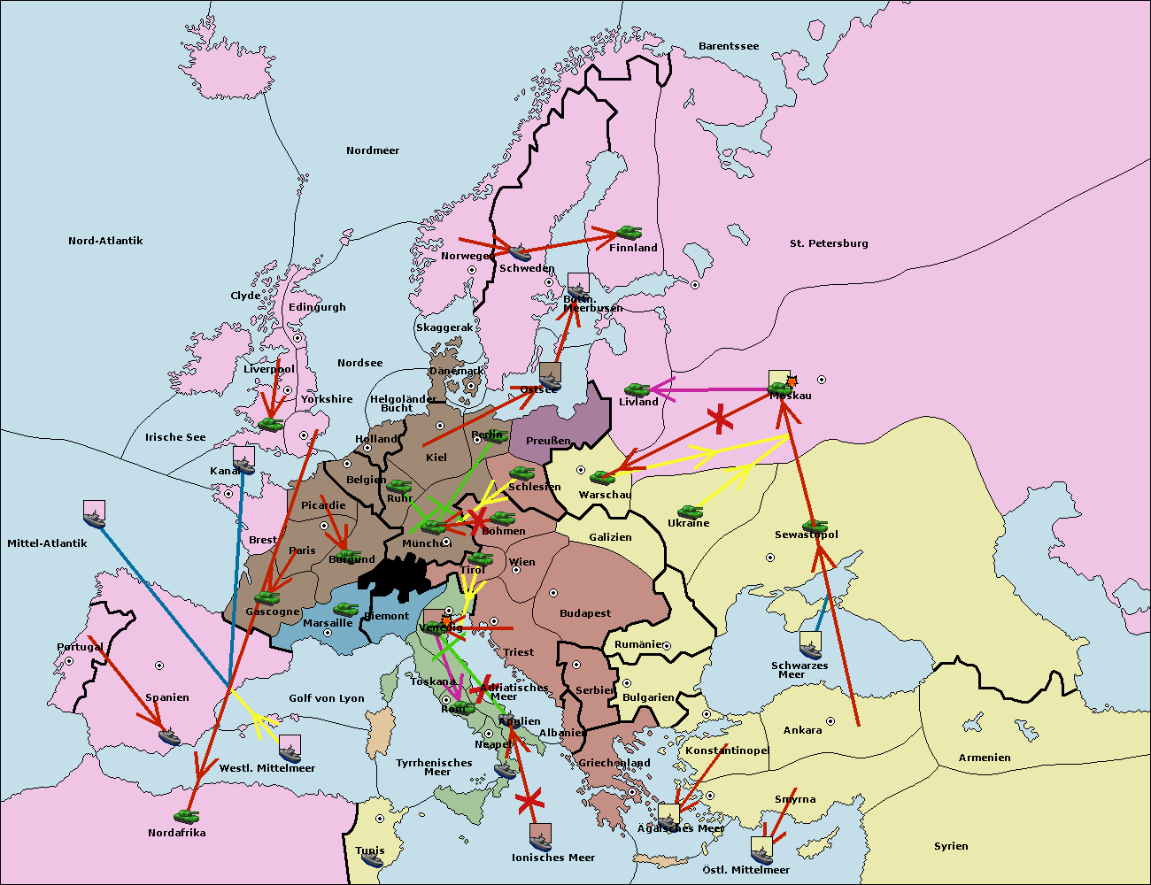 • Die Armee in Nord Afrika support move nach Tunis von westl. Mittelmeer.