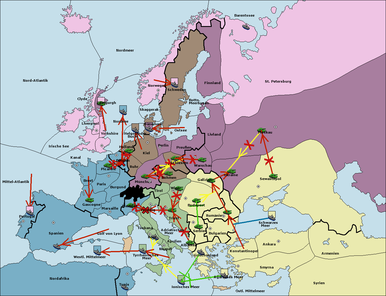 • Die Flotte in Spanien (Südküste) move nach Portugal.