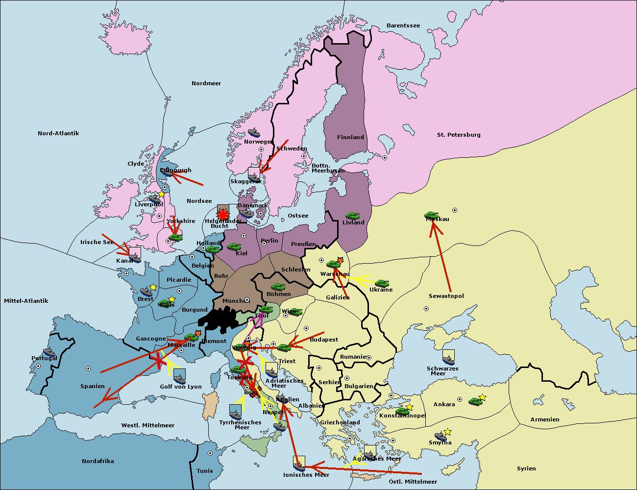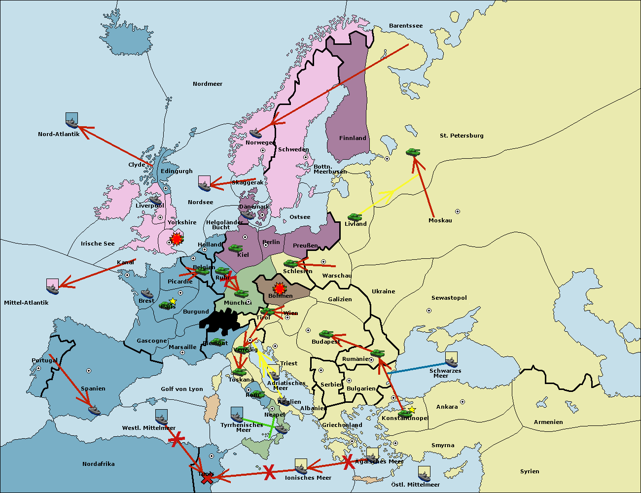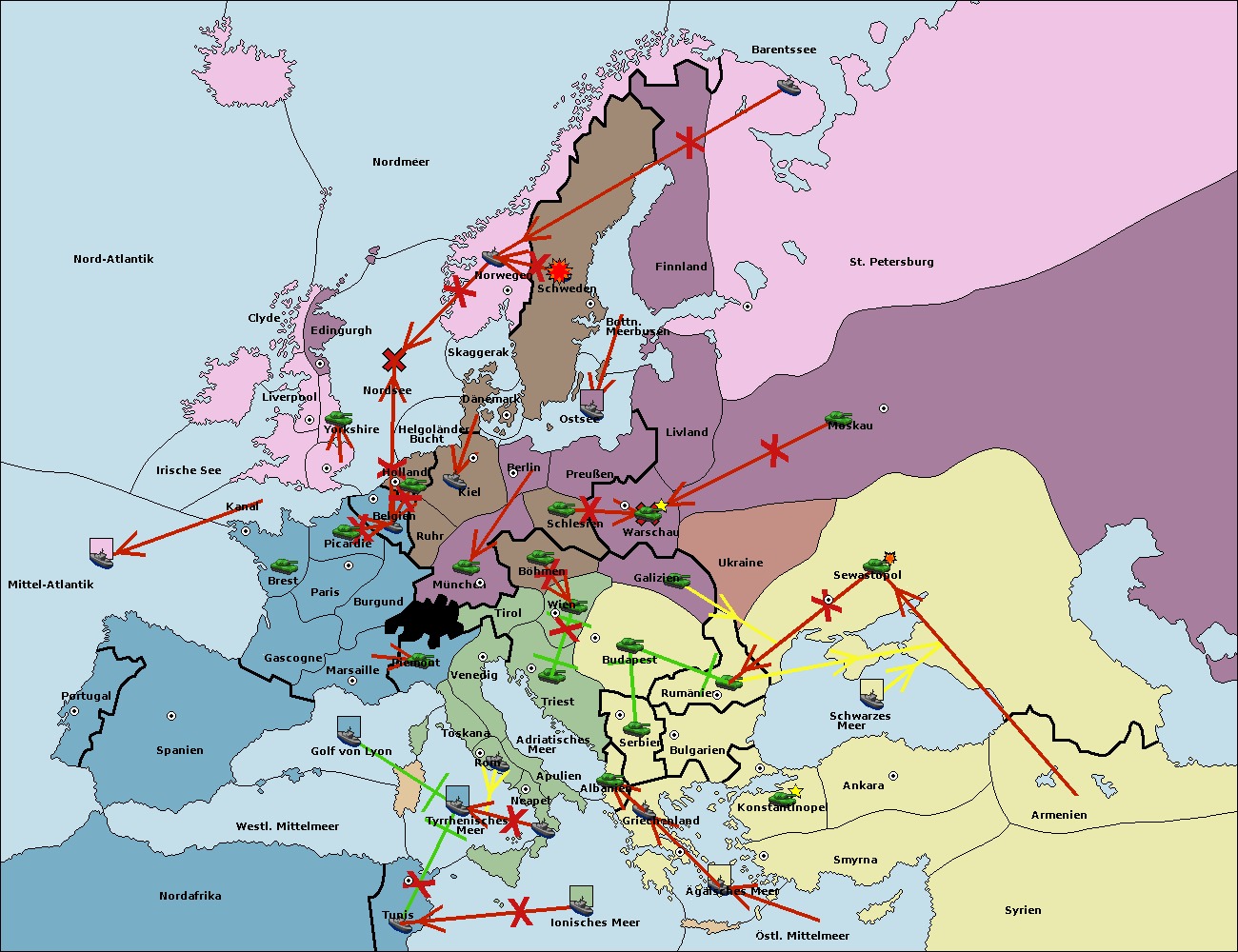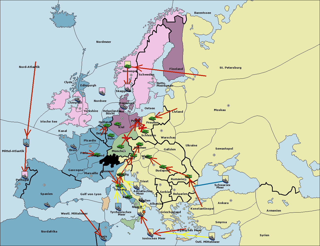 • Die Flotte in St. Petersburg (Nordküste) move nach Norwegen.