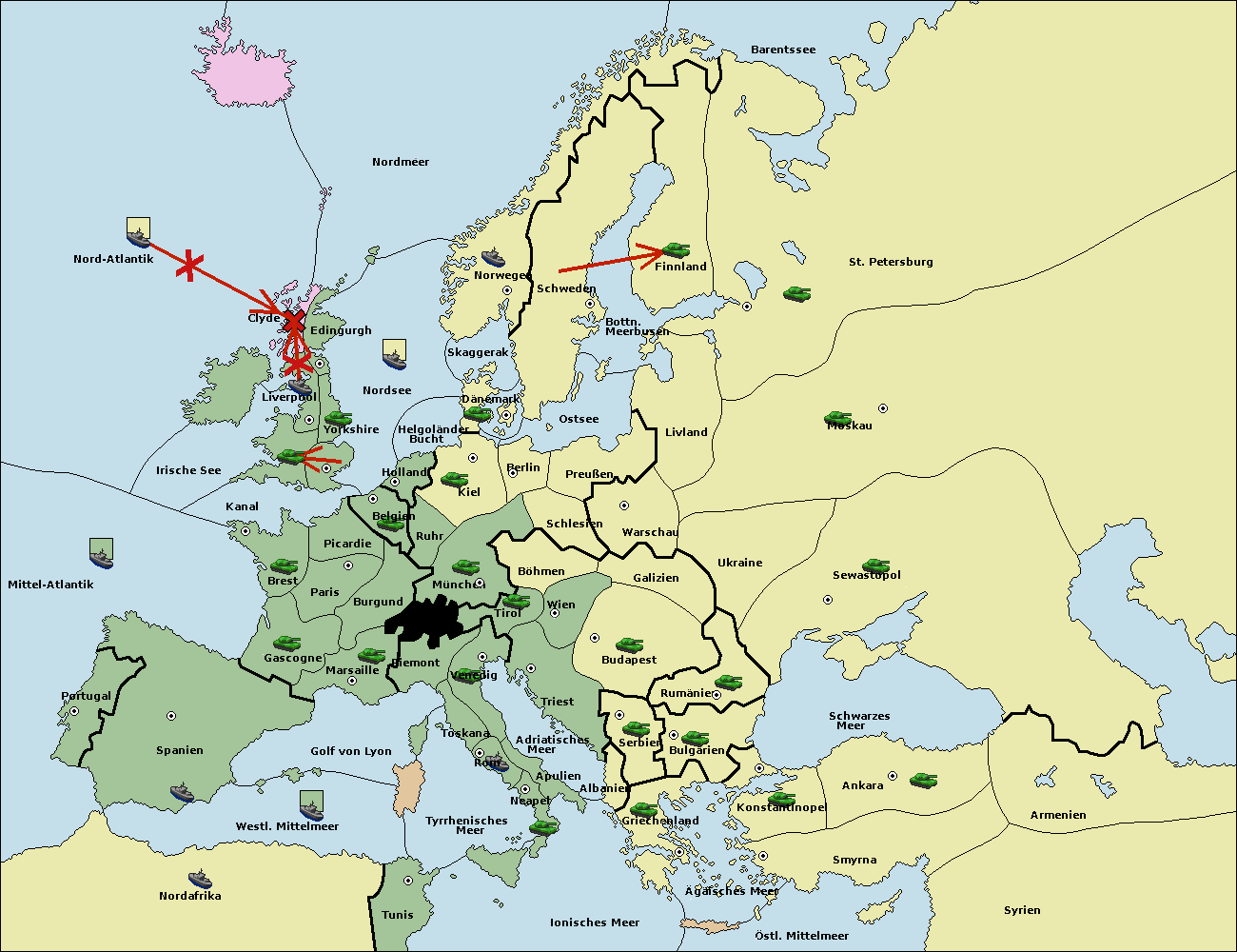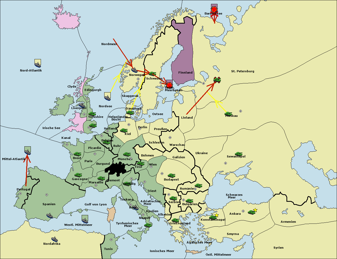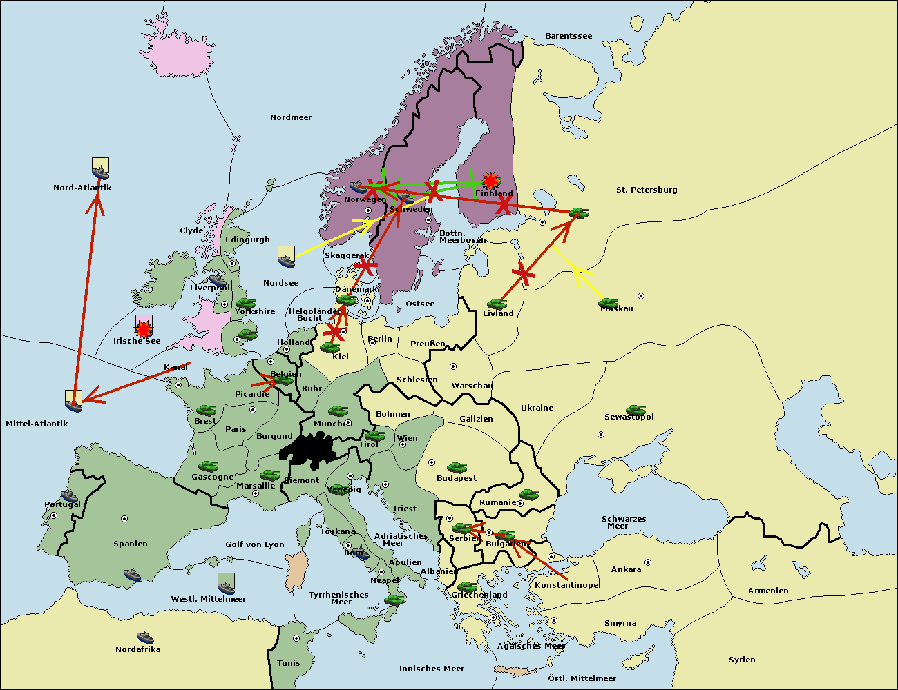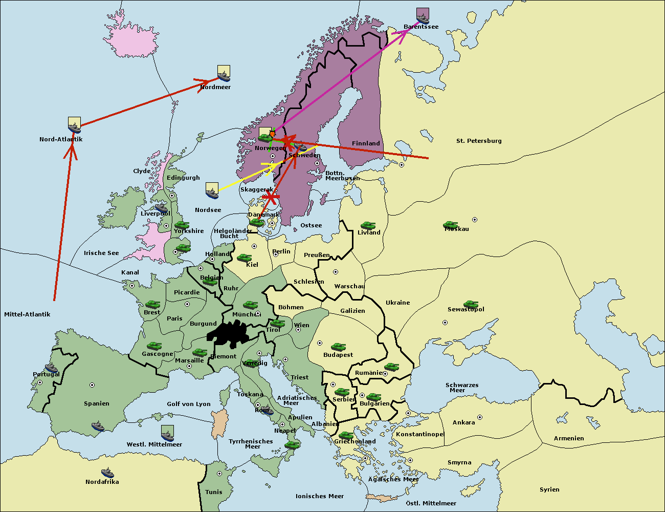 • Die Flotte in St. Petersburg (Nordküste) move nach Norwegen. (gescheitert)
