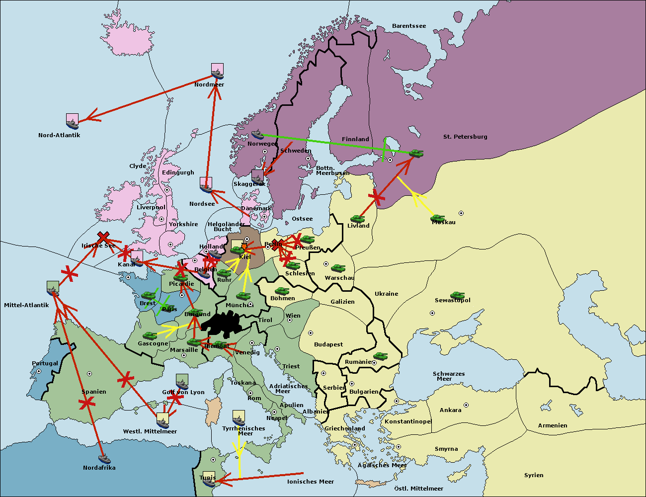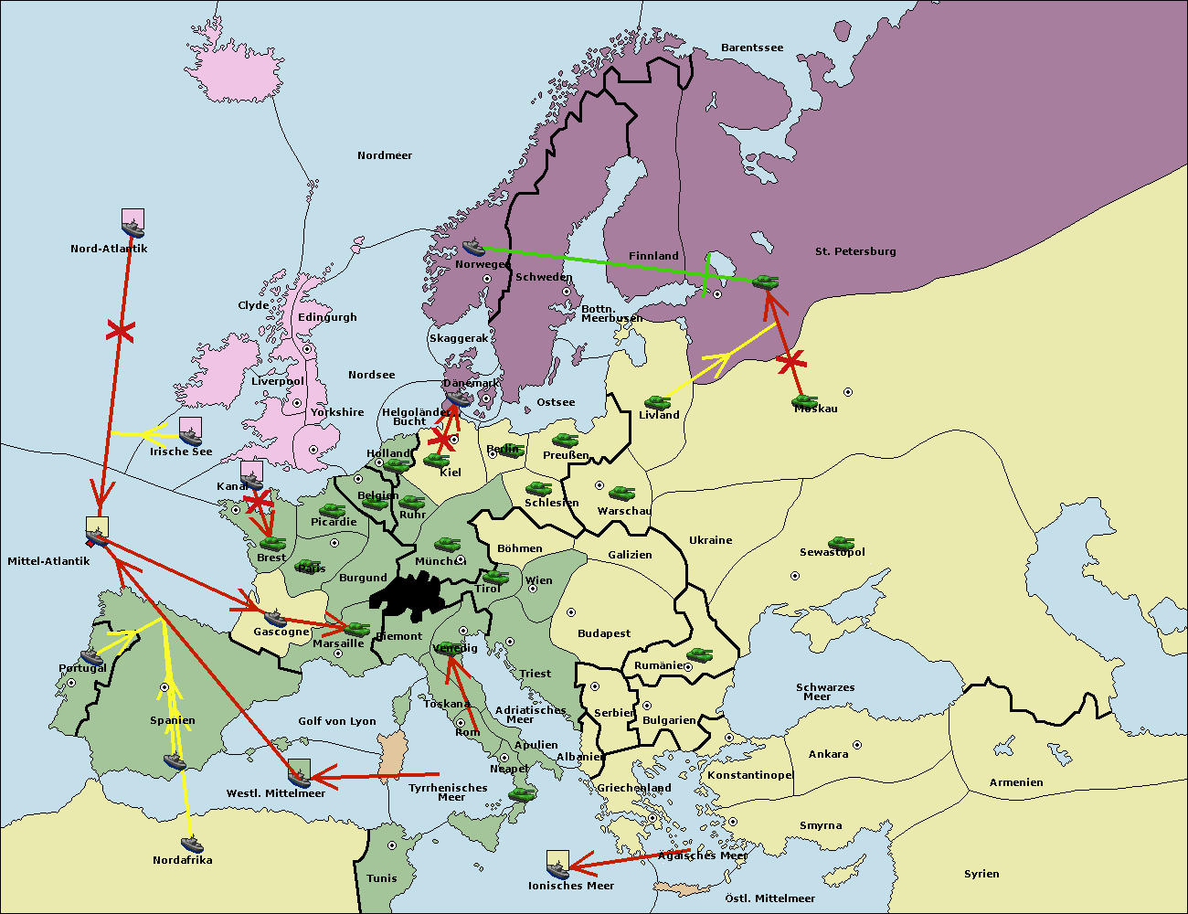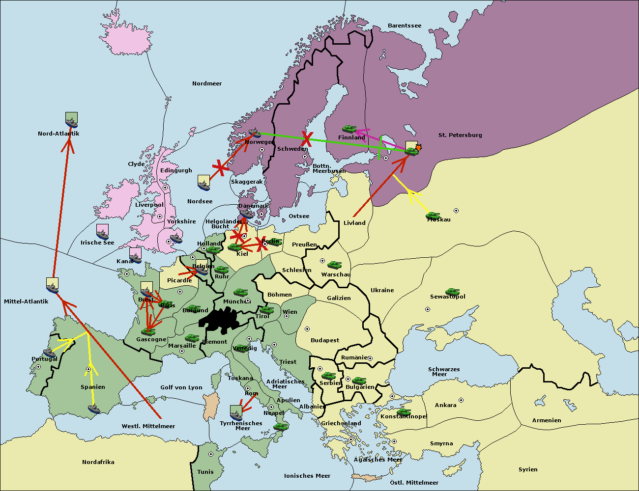 • Die Flotte in St. Petersburg (Nordküste) move nach Norwegen. (gescheitert)