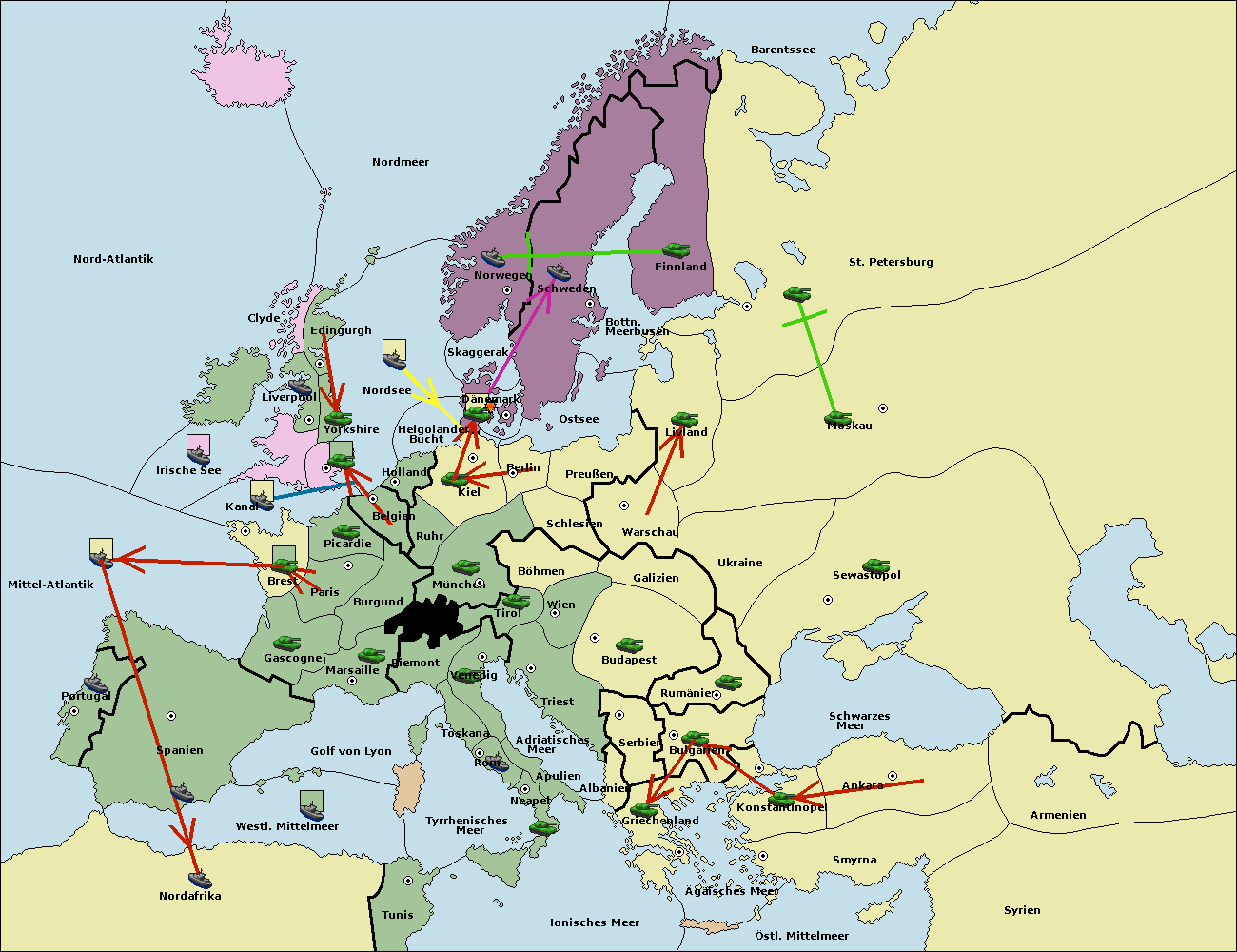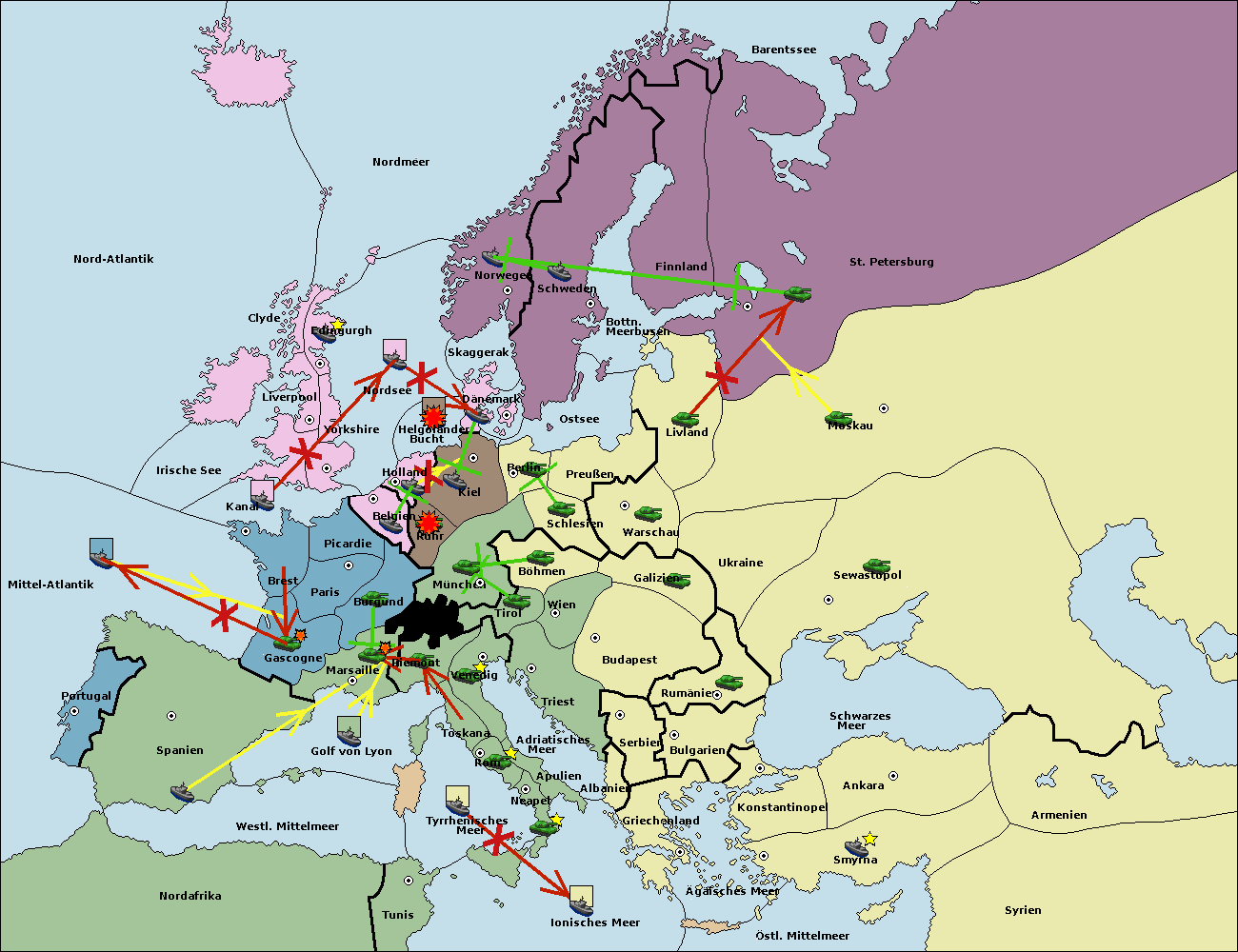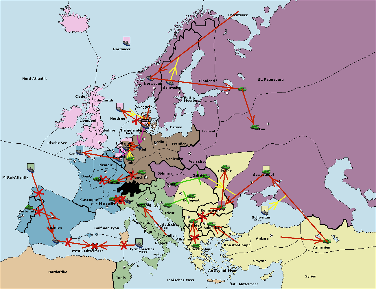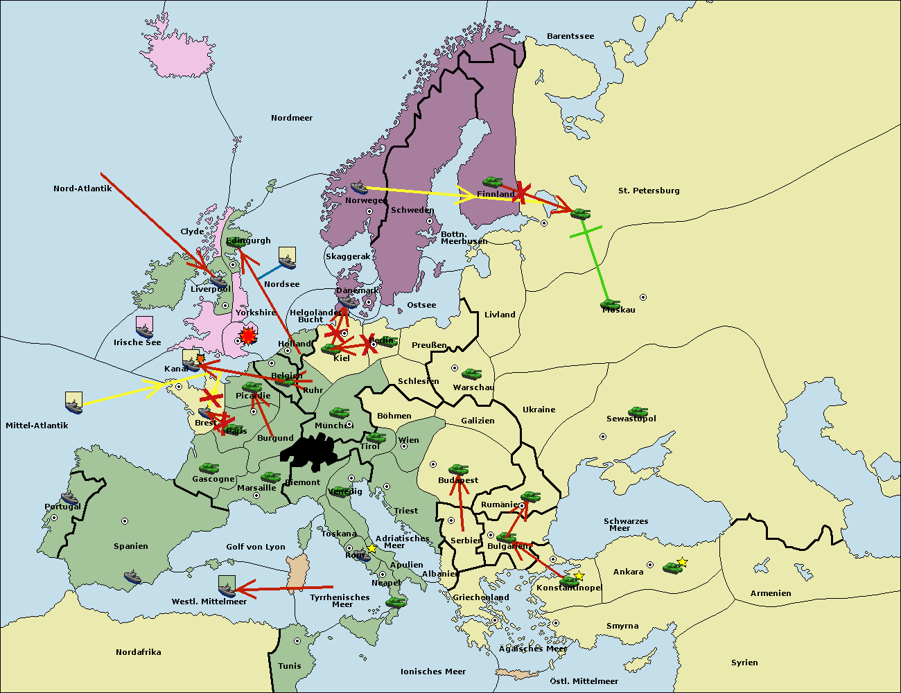• Die Flotte in St. Petersburg (Nordküste) move nach Norwegen. (gescheitert)