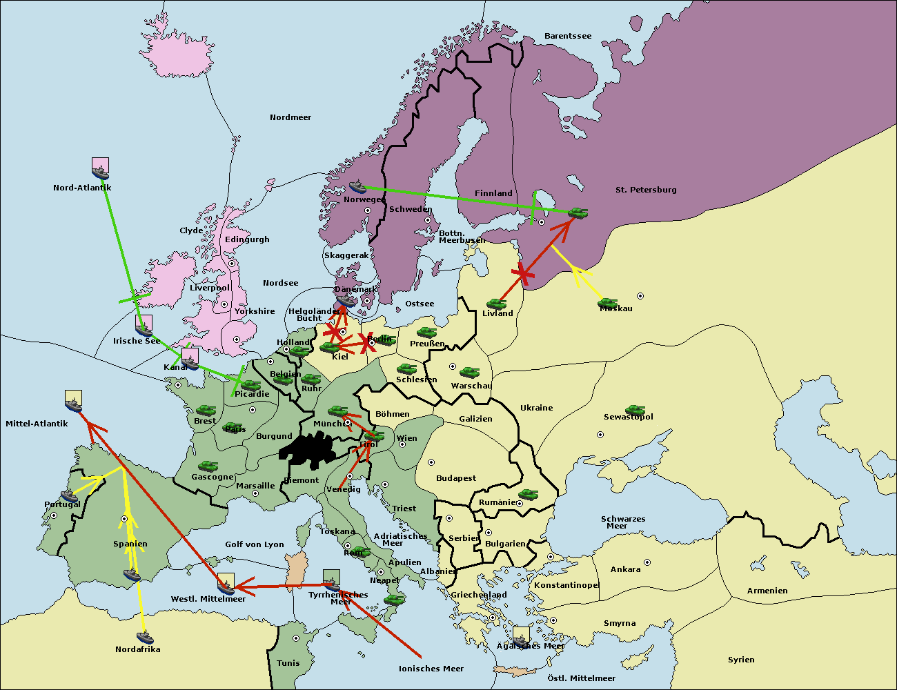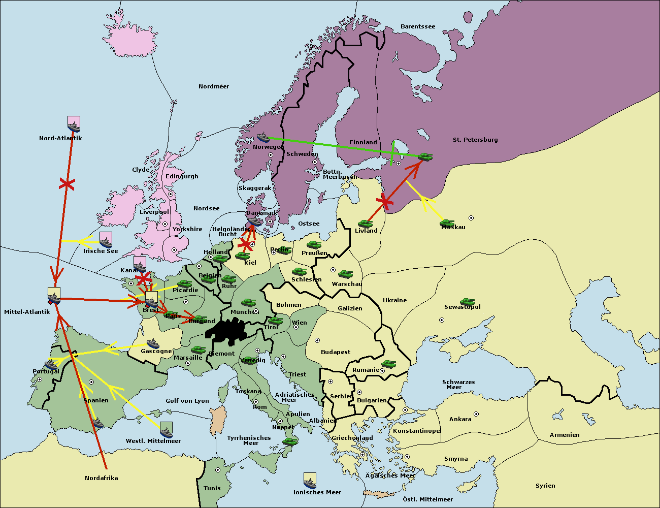 • Die Flotte in Barentssee move nach St. Petersburg (Nordküste). (gescheitert)