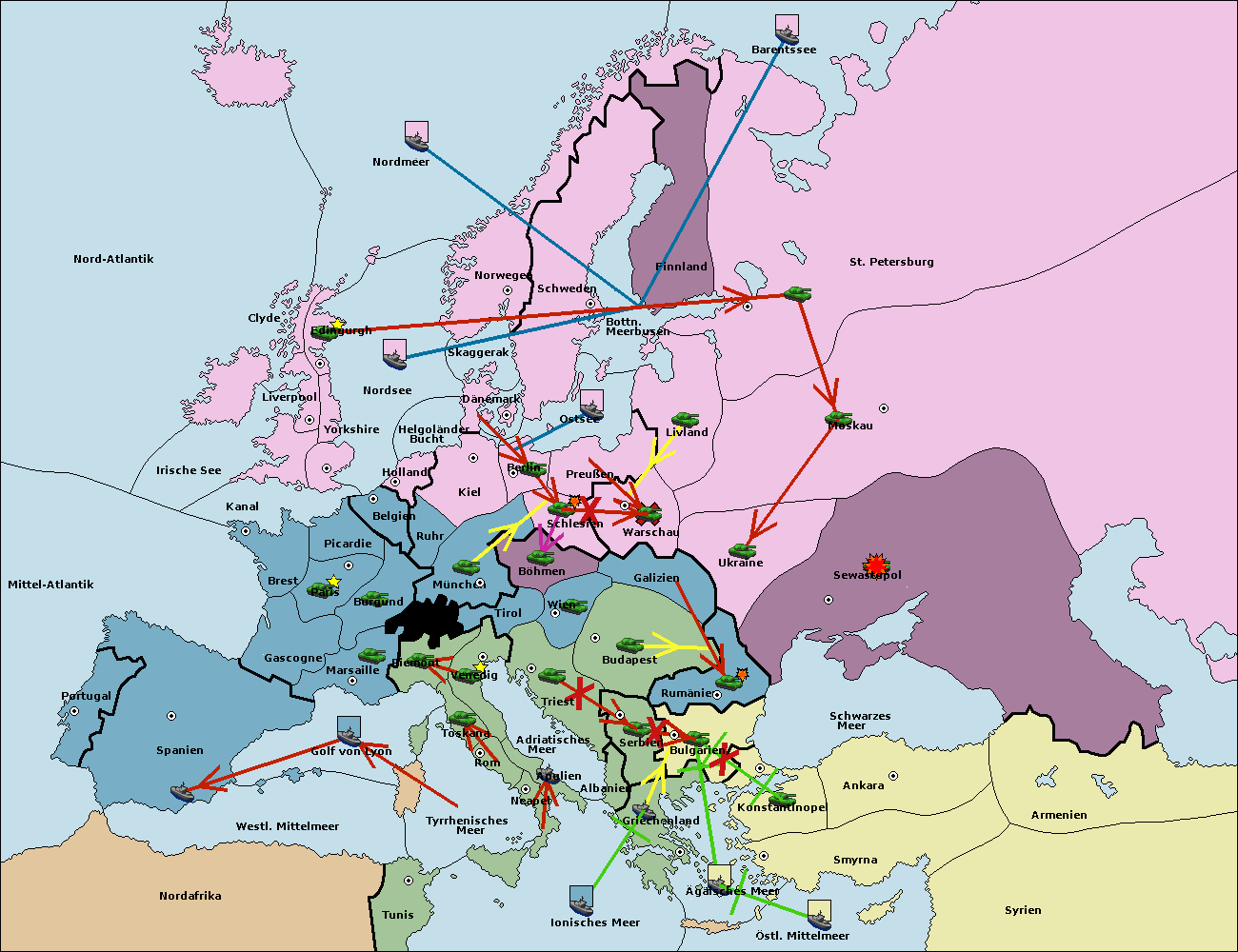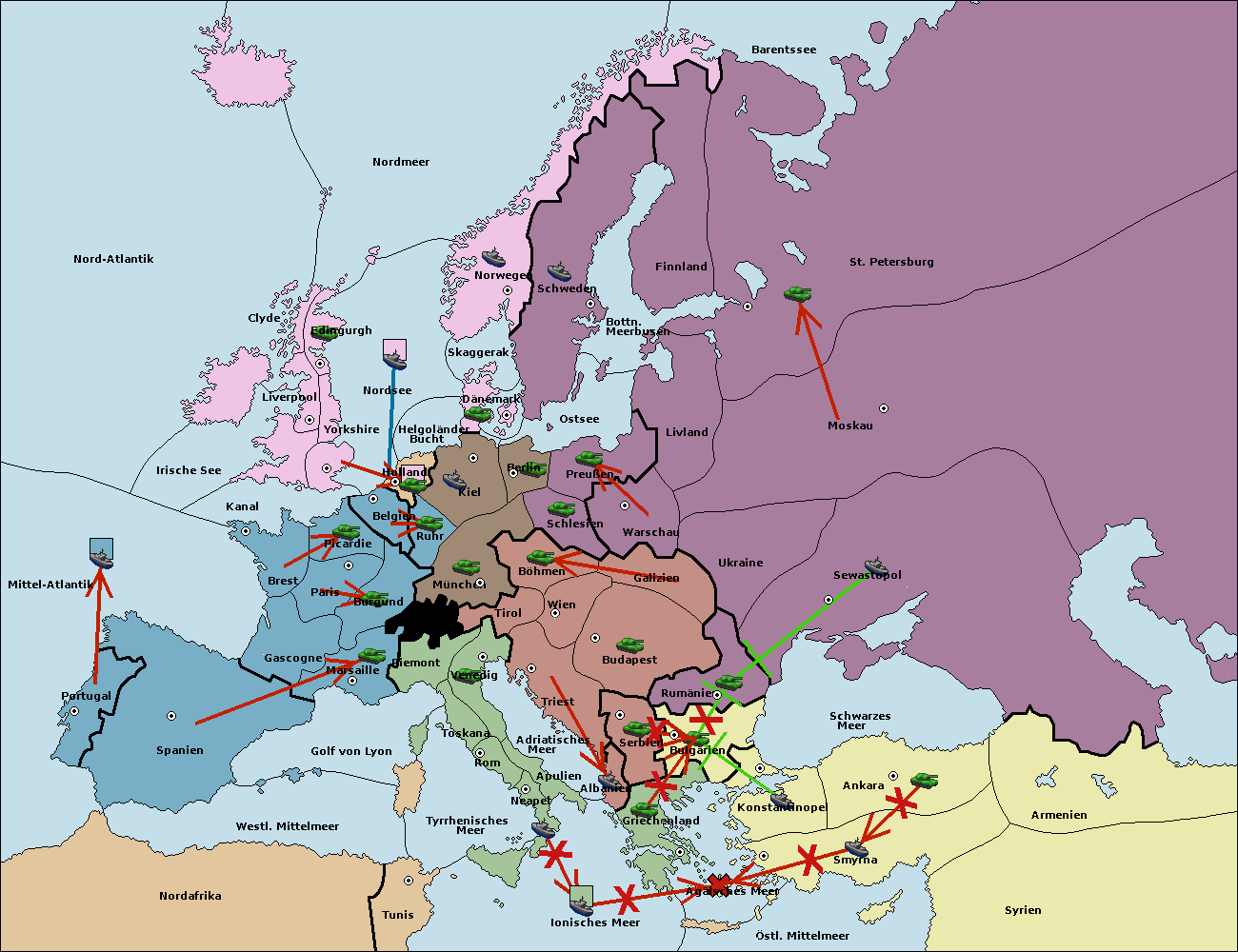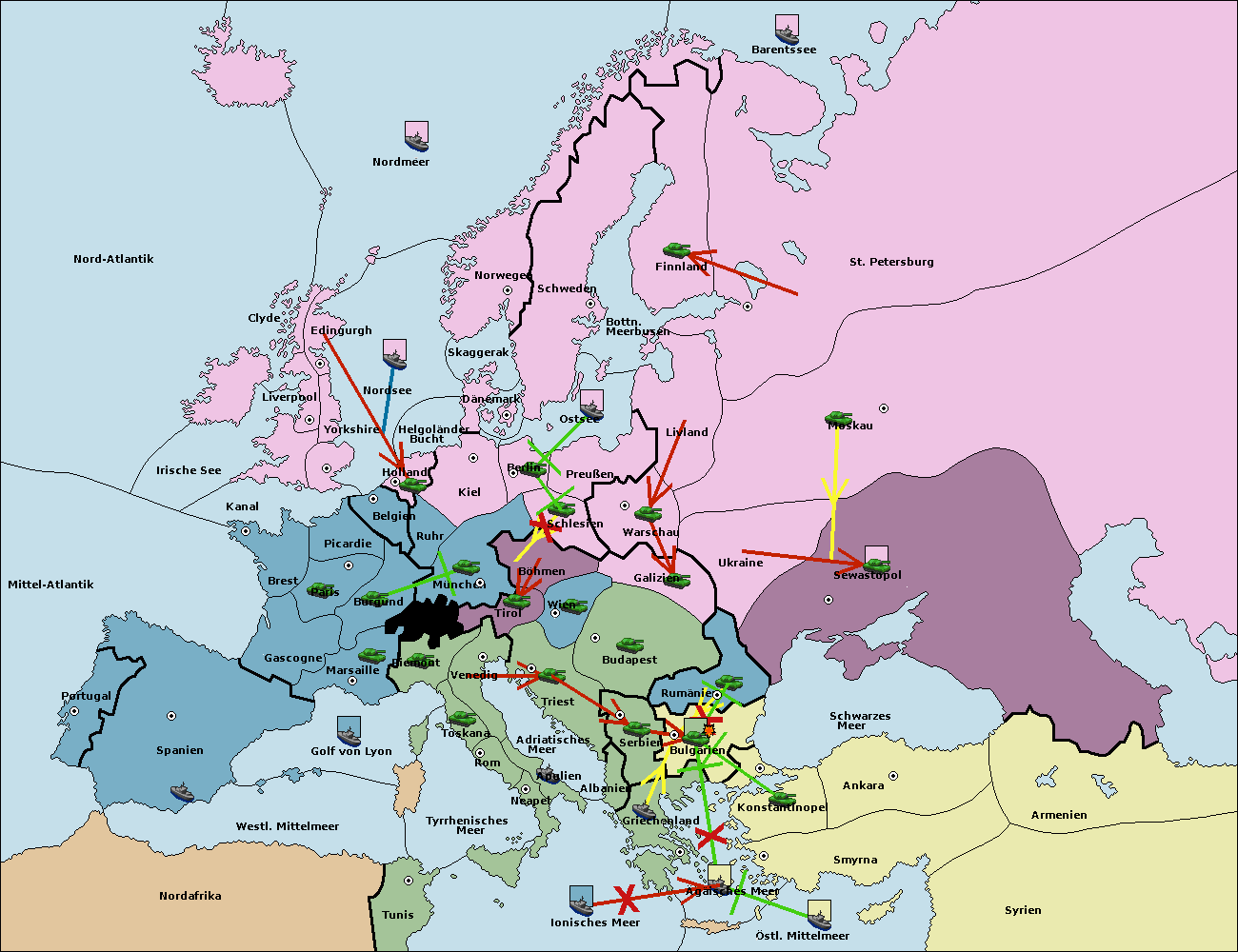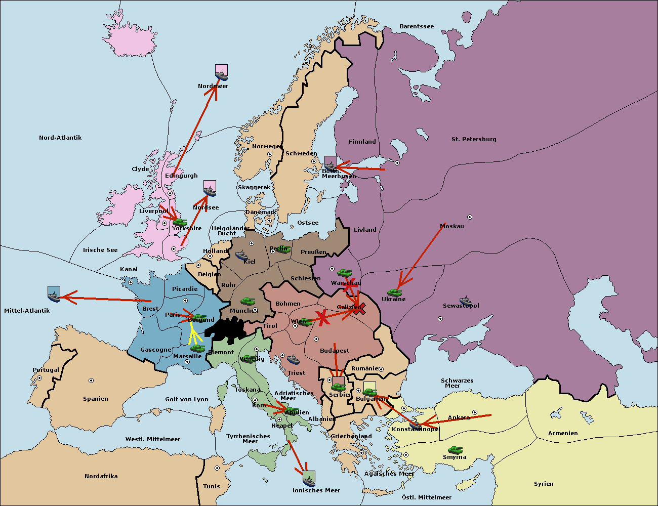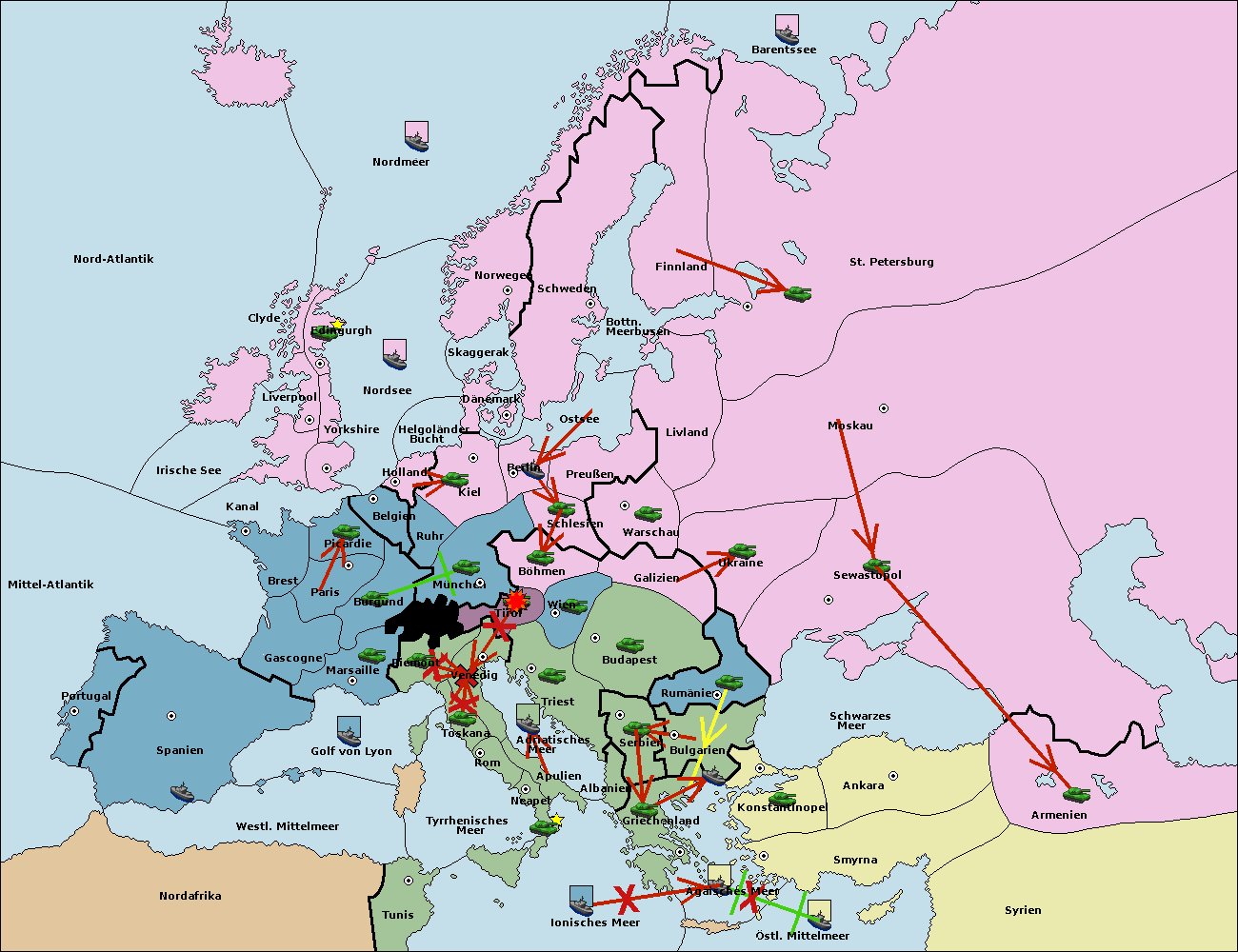 • Die Flotte in Bulgarien (Südküste) support move nach Konstantinopel von Griechenland.