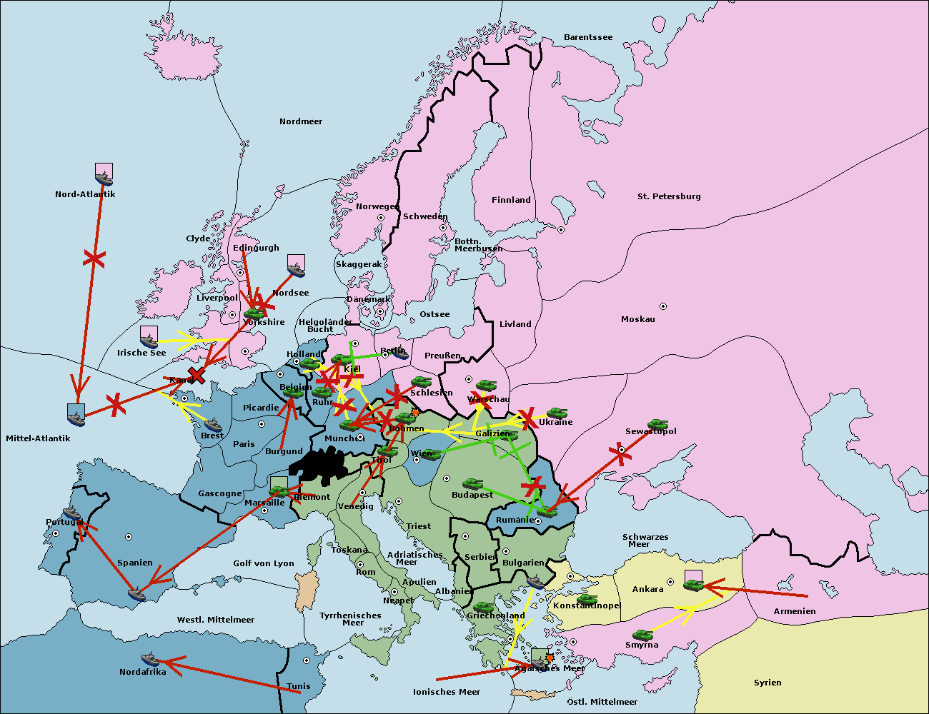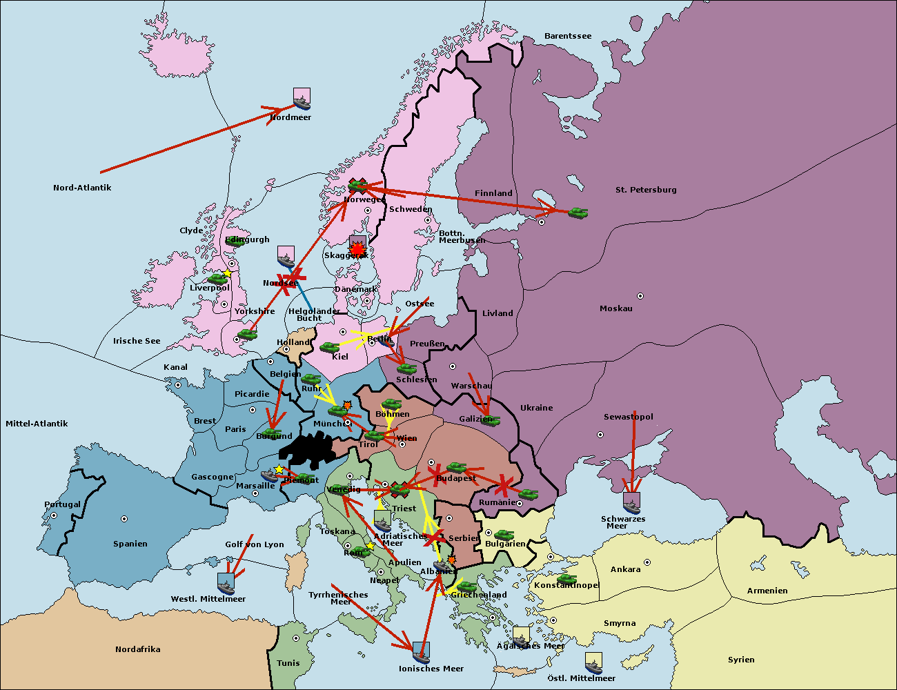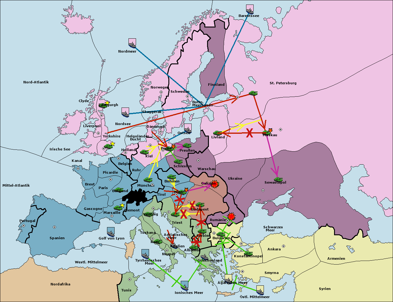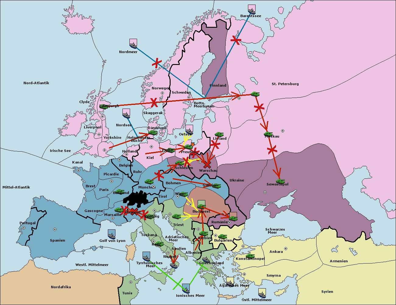 • Die Flotte in Bulgarien (Südküste) support move nach Konstantinopel von Griechenland.