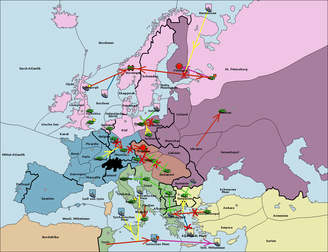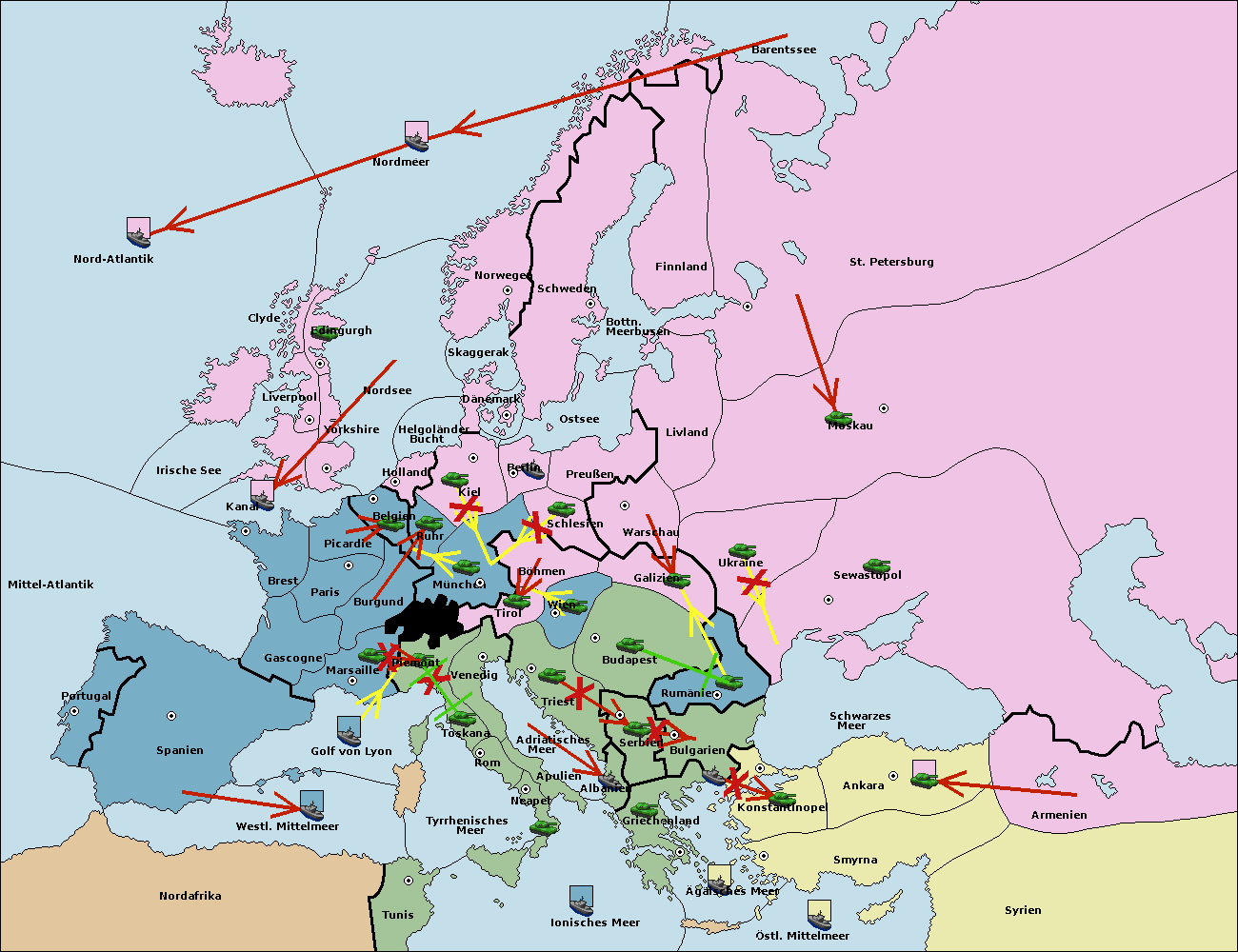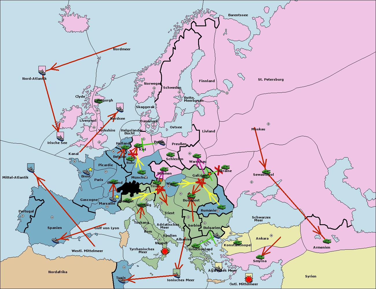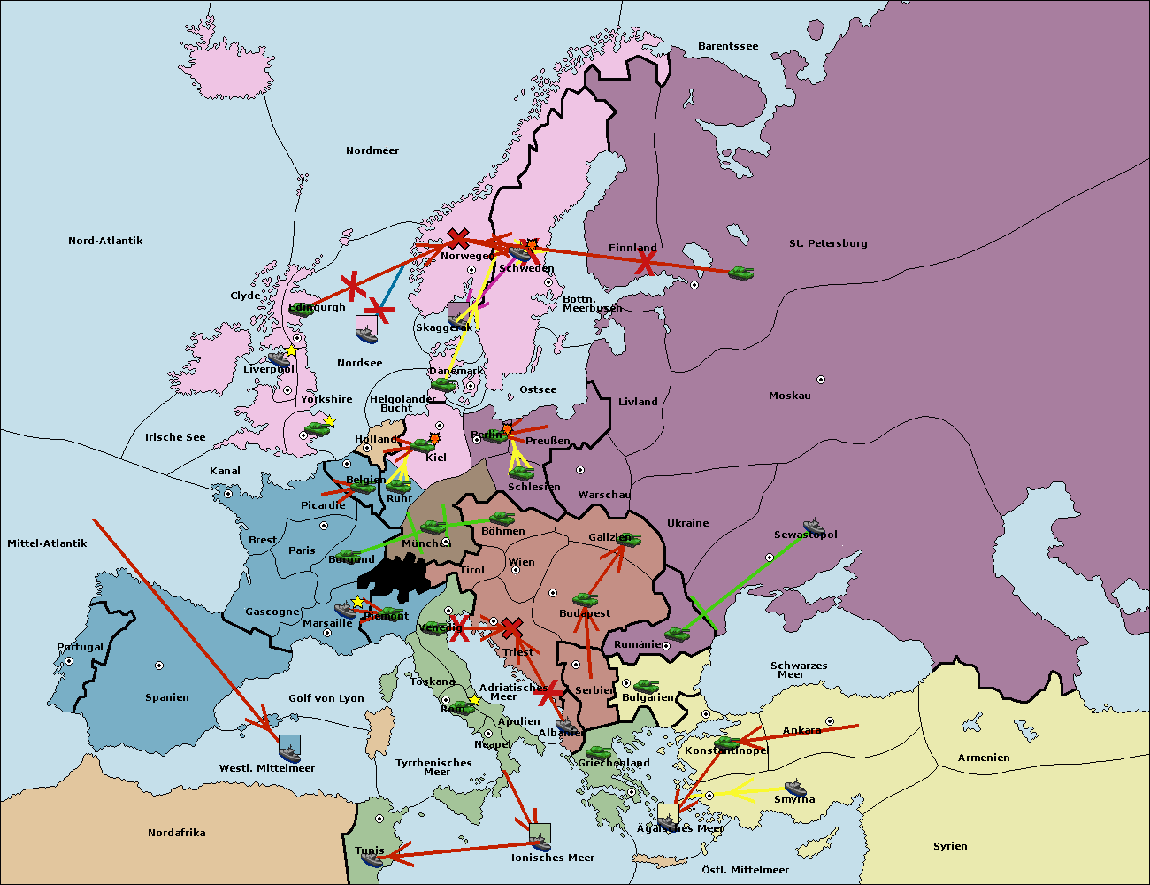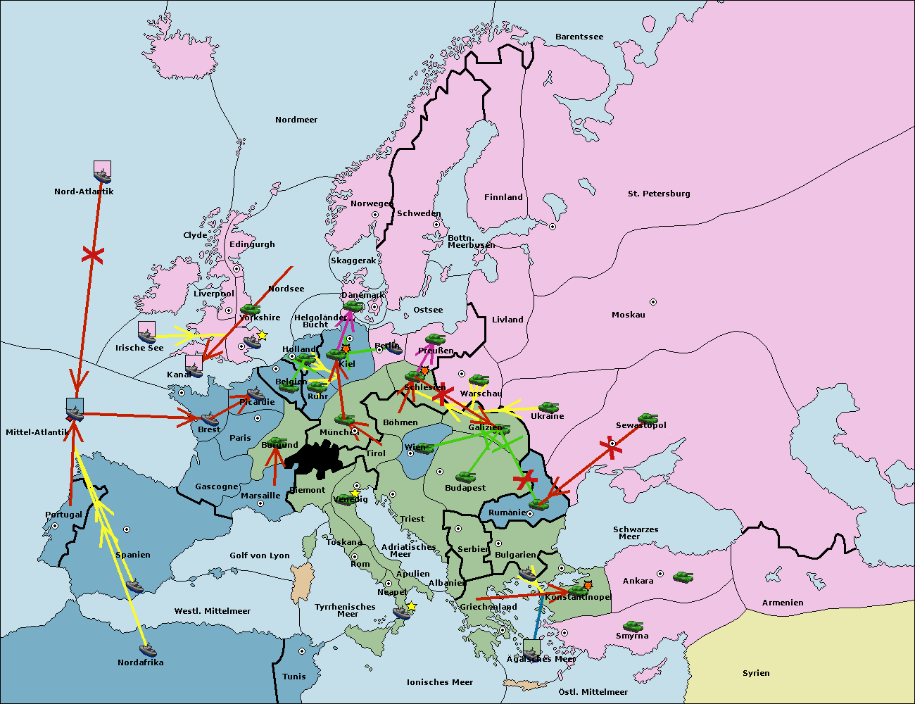 • Die Flotte in Bulgarien (Südküste) support move nach Konstantinopel von Griechenland.