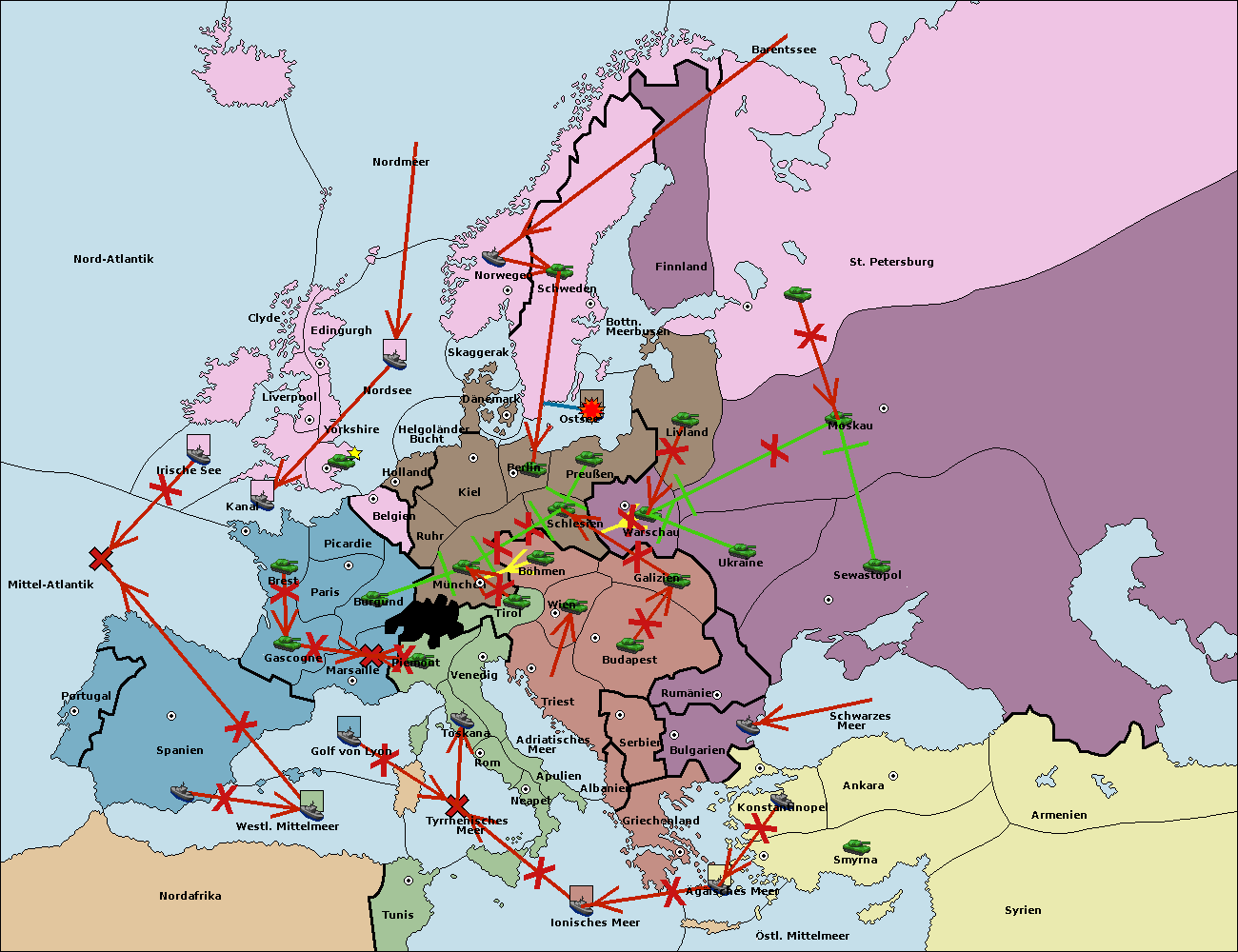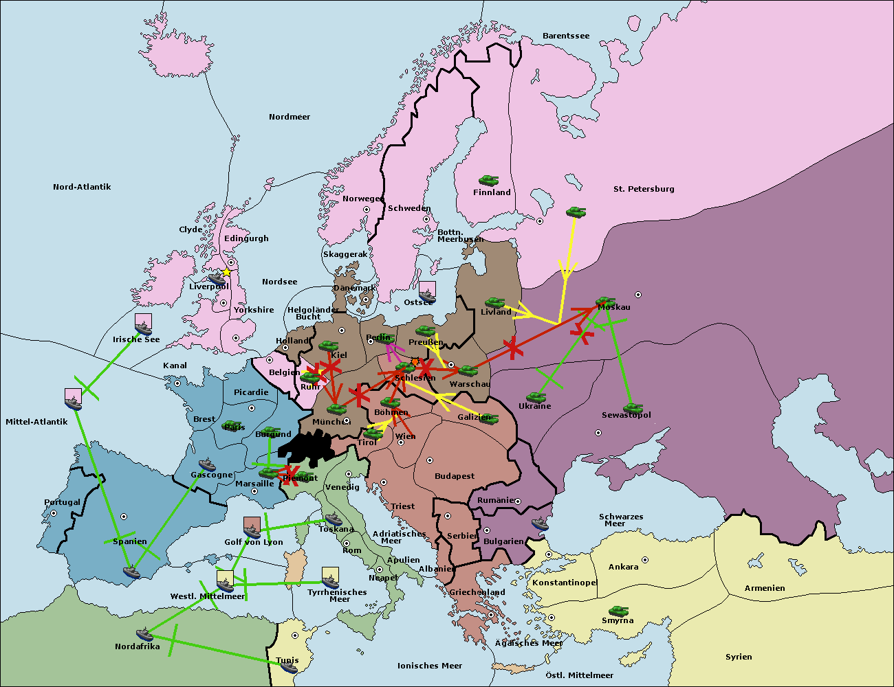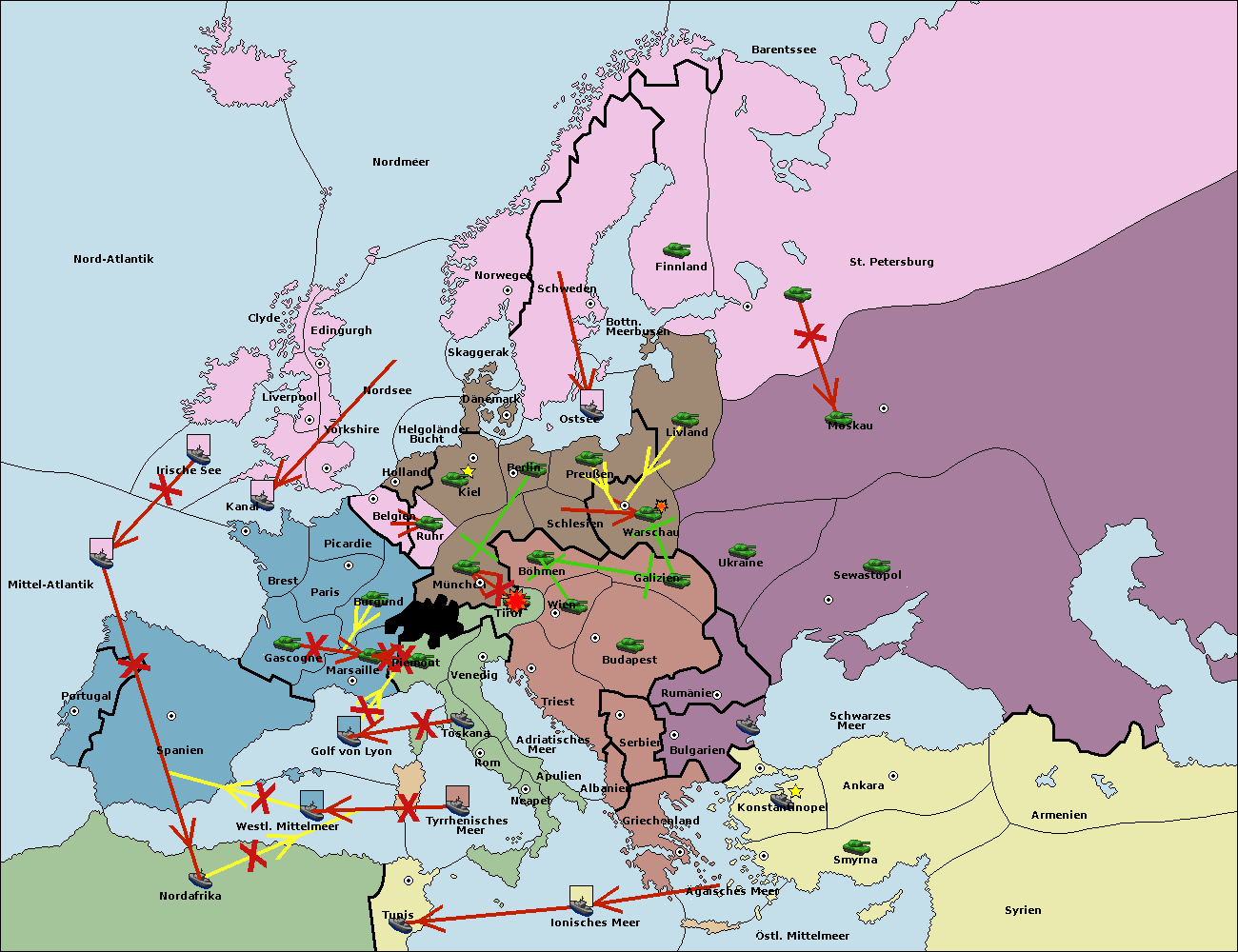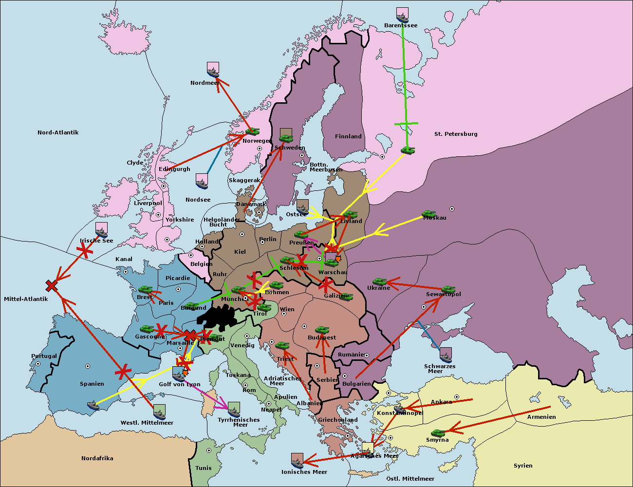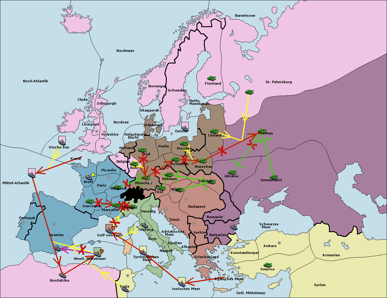 • Die Flotte in Nord Afrika support hold nach westl. Mittelmeer.