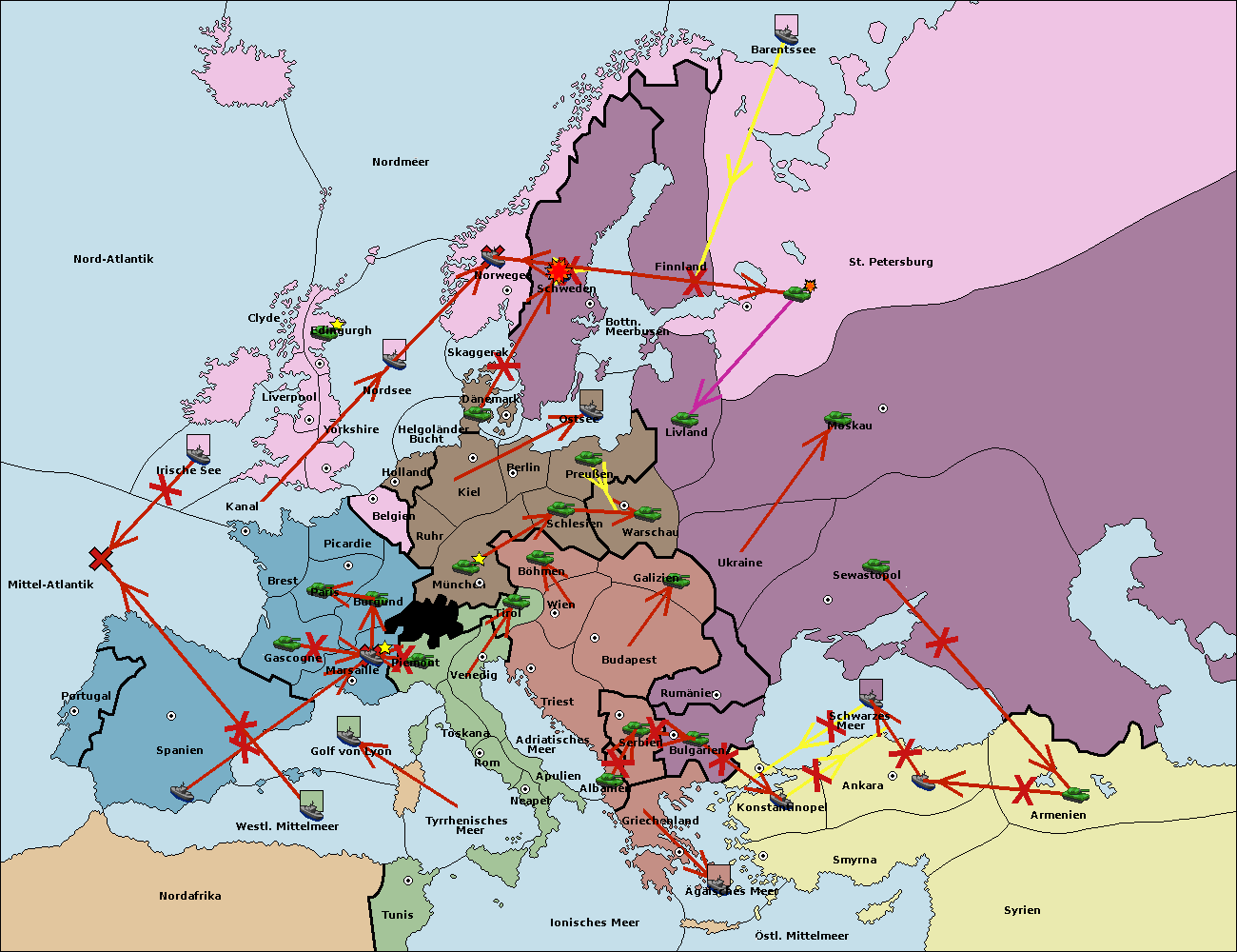 • Die Armee in Bulgarien wird zerstörtFlotte in Bulgarien gebaut.