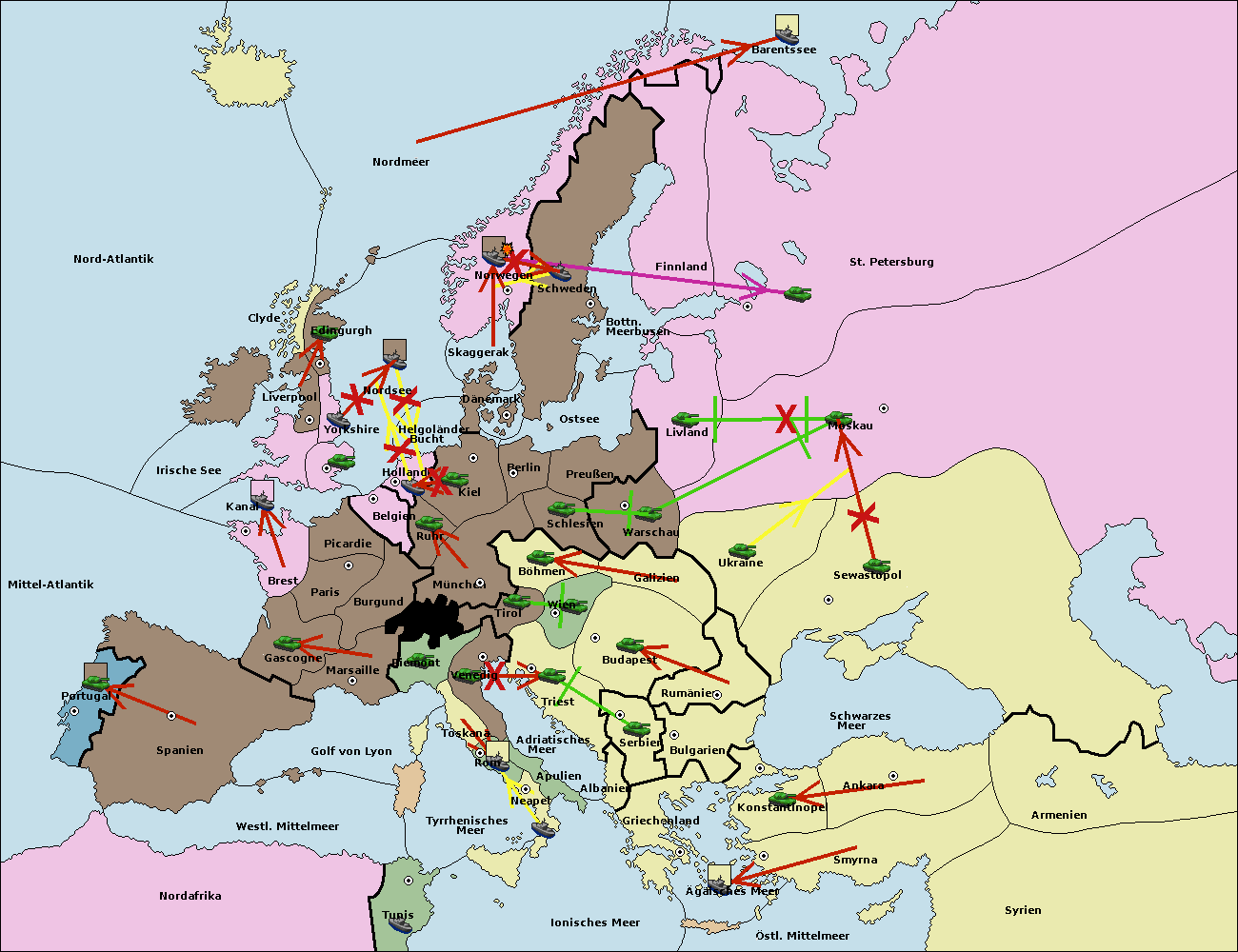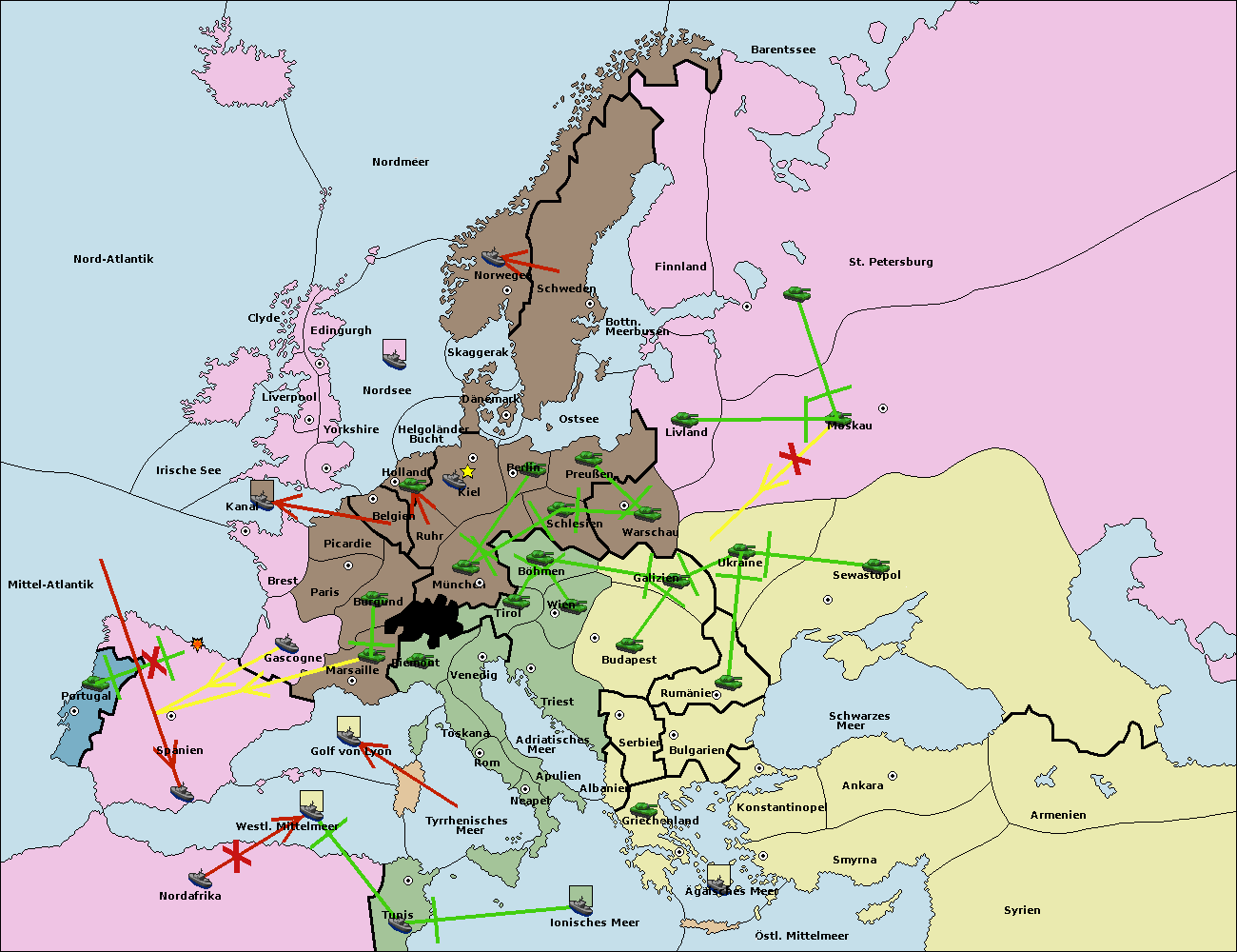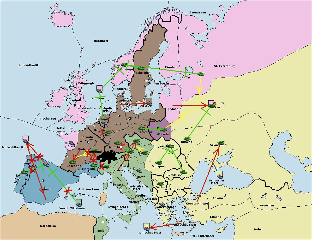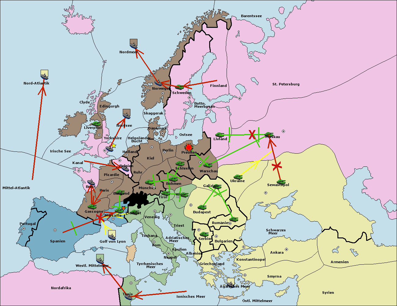 • Die Flotte in St. Petersburg (Nordküste) move nach Barentssee.