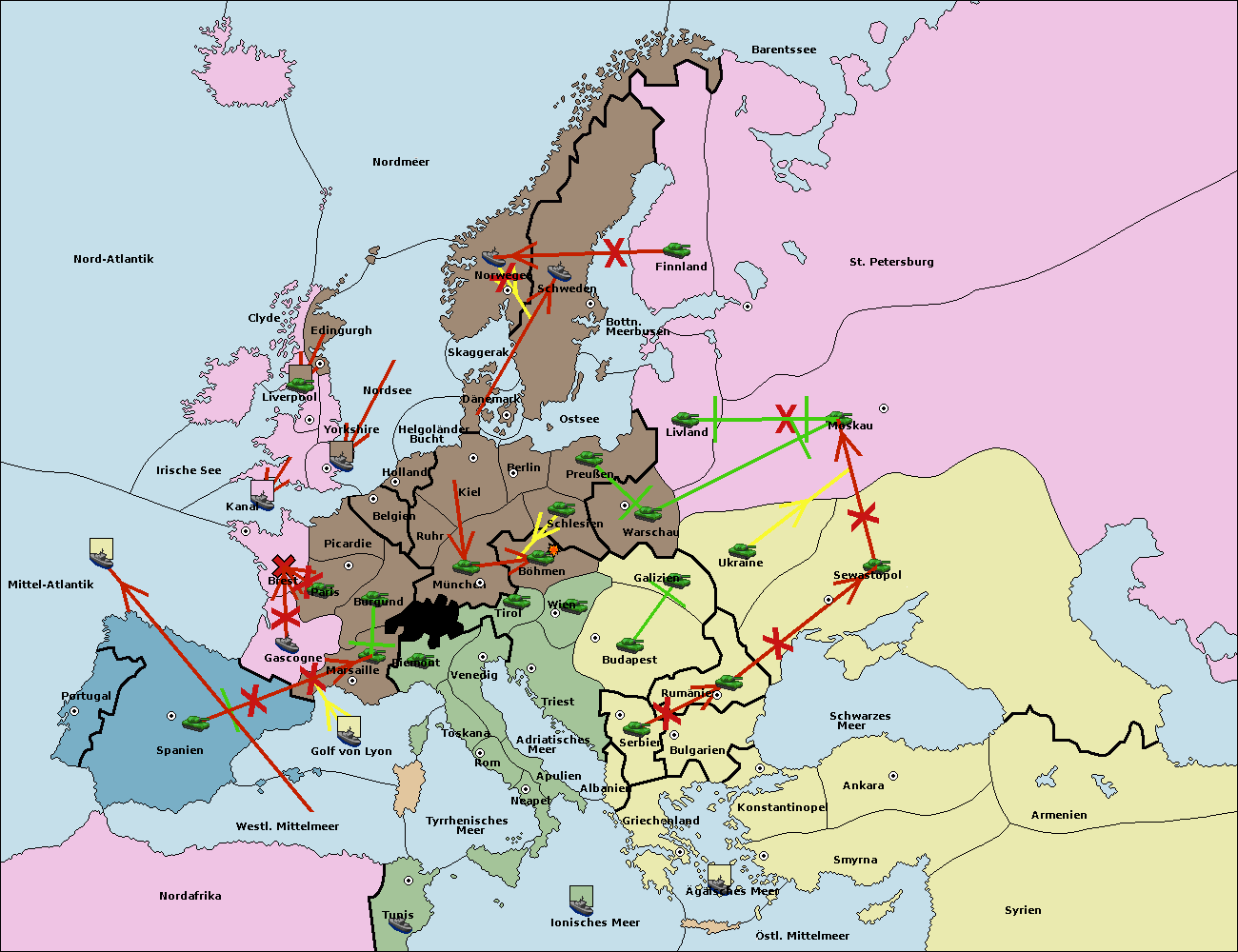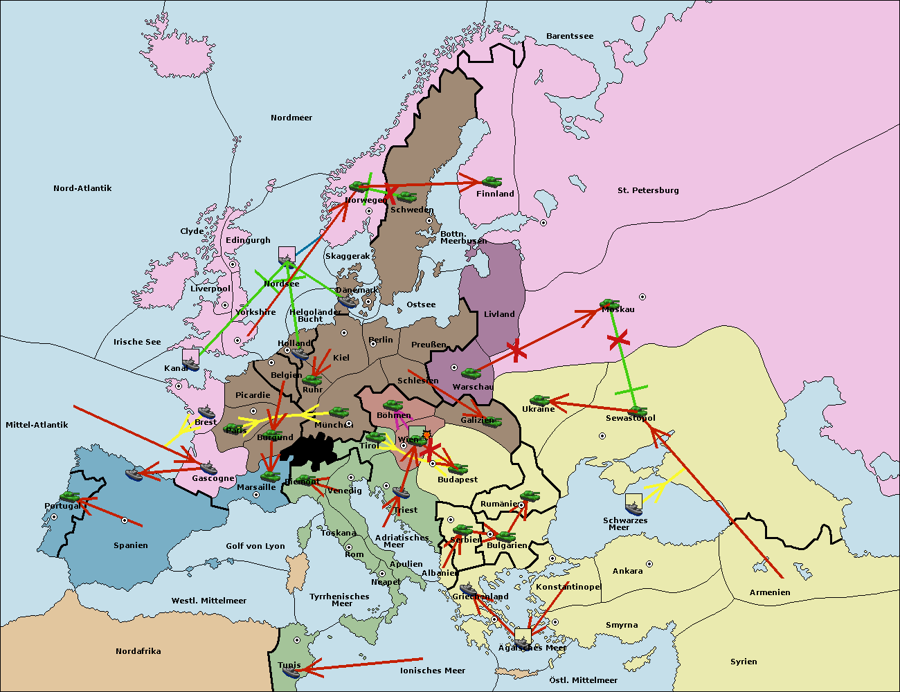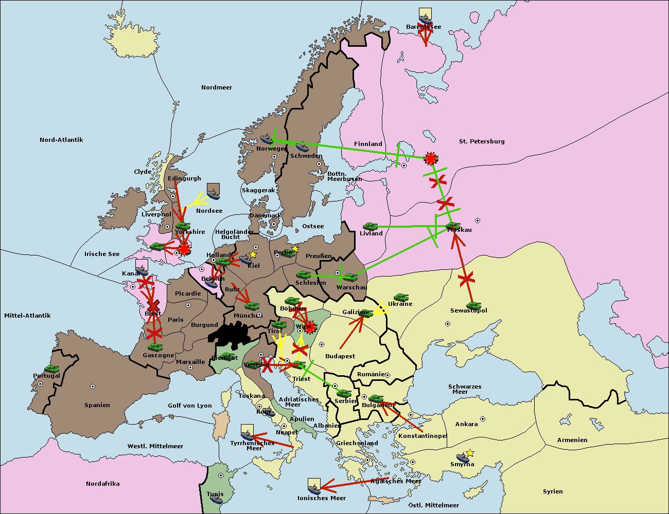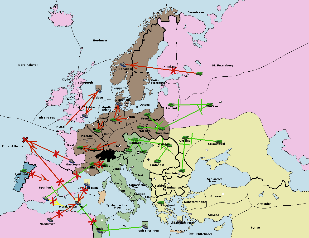 • Die Flotte in St. Petersburg (Nordküste) move nach Barentssee.