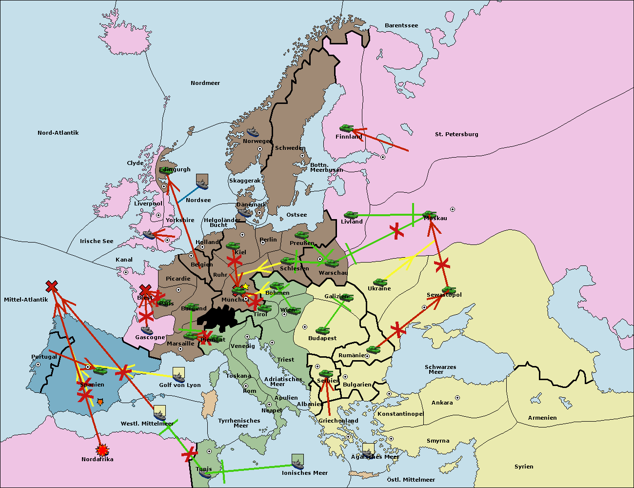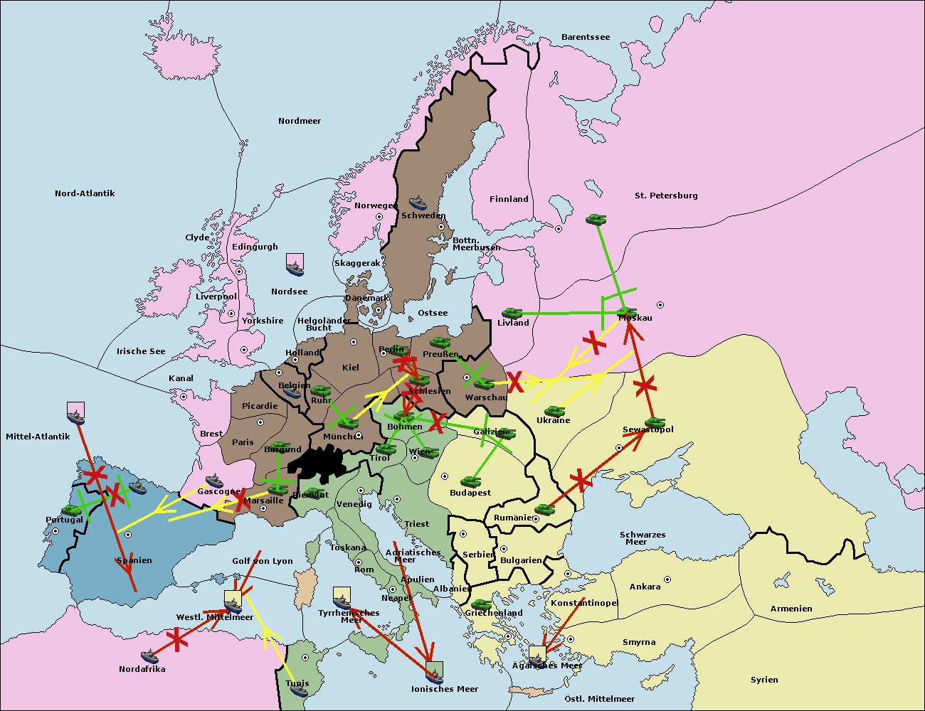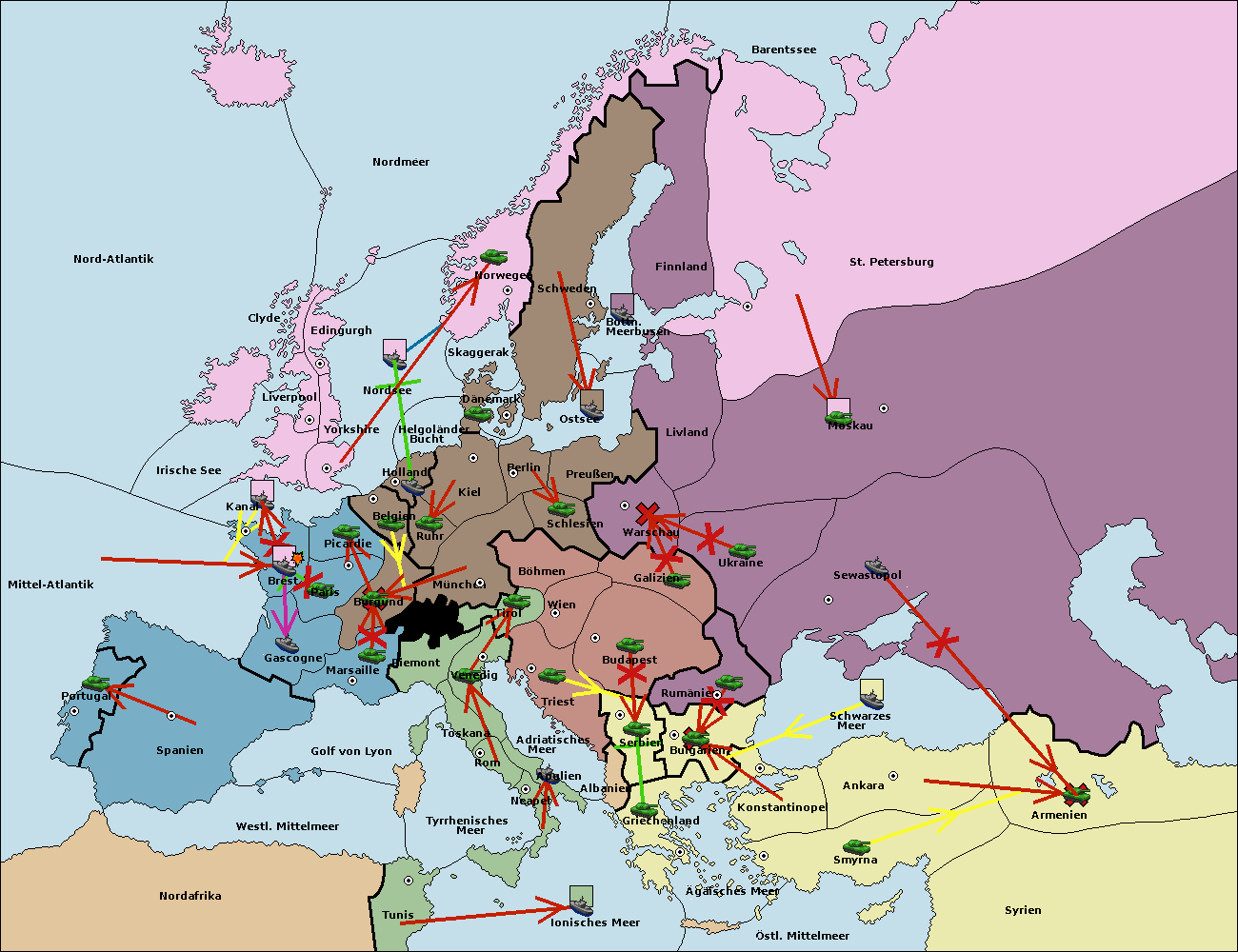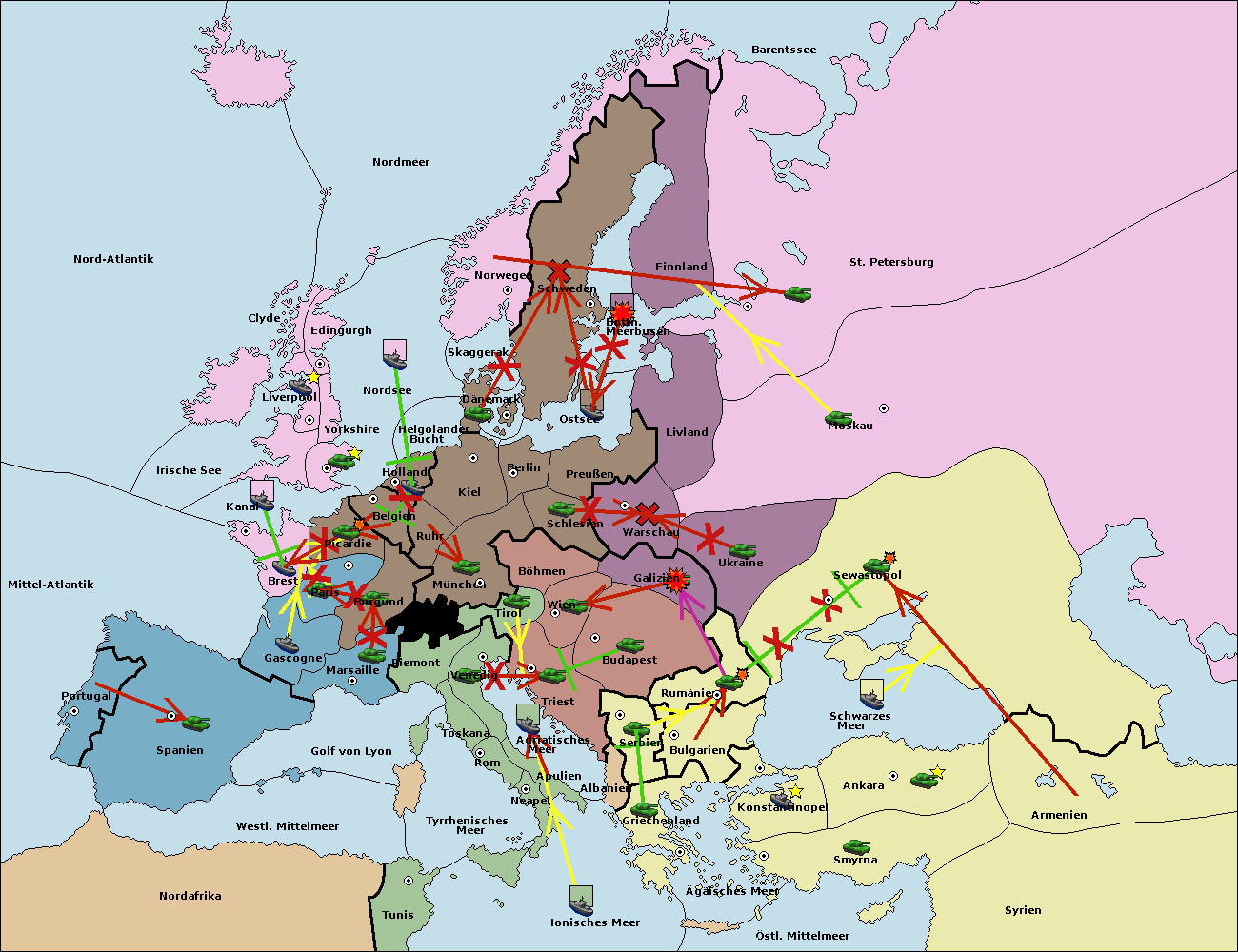 • Die Flotte in St. Petersburg (Nordküste) move nach Barentssee.