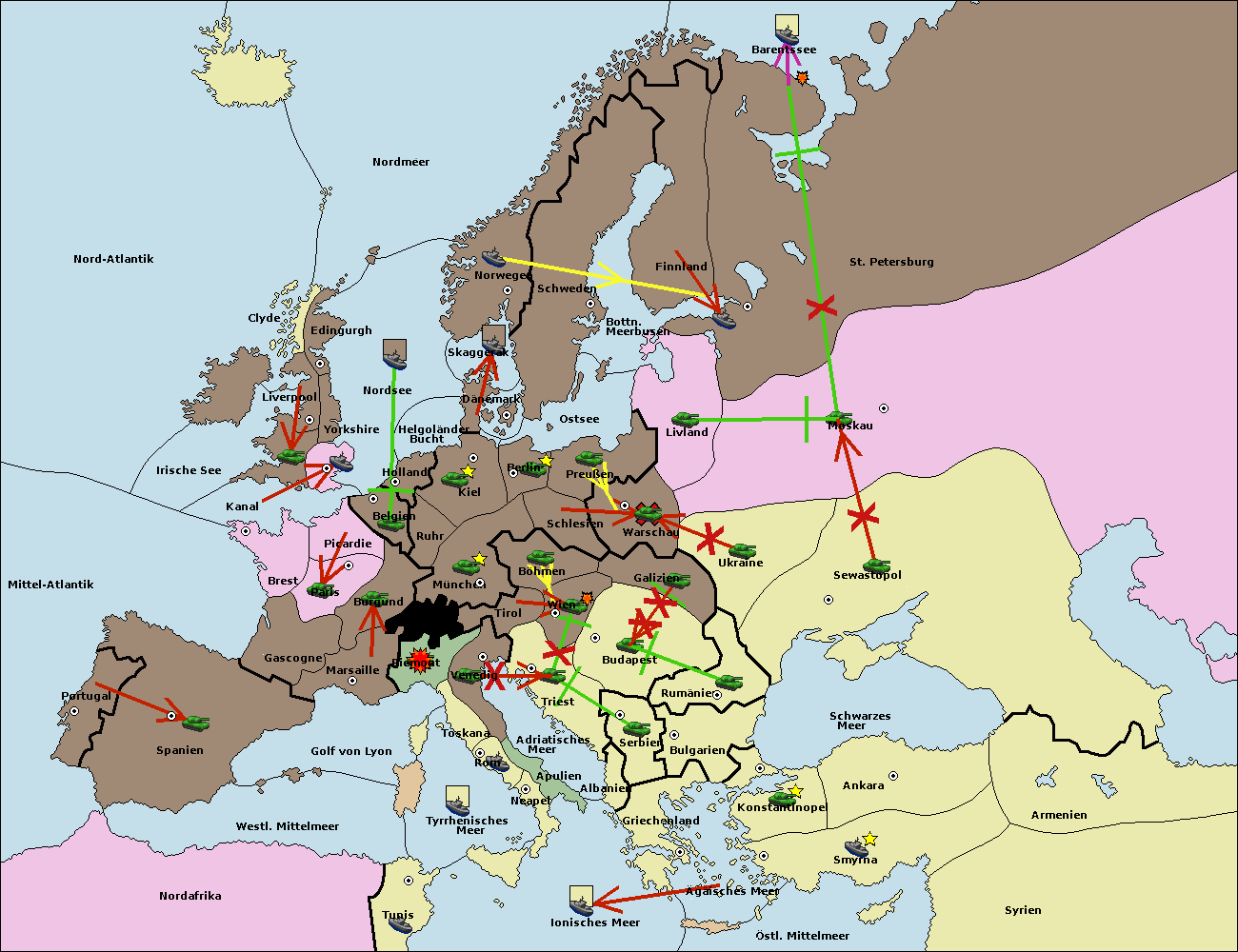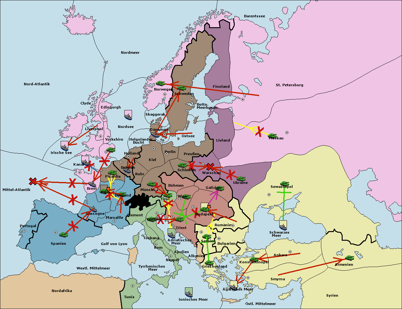 • Die Armee in Wien support move nach Budapest von Serbien.