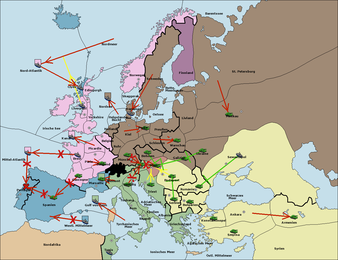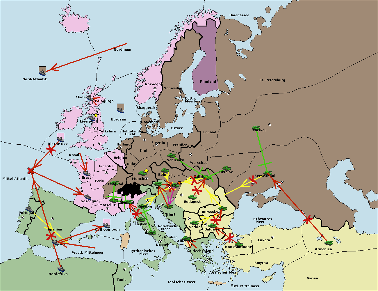 • Die Flotte in Konstantinopel support move nach Bulgarien von Rumänien. (gescheitert)