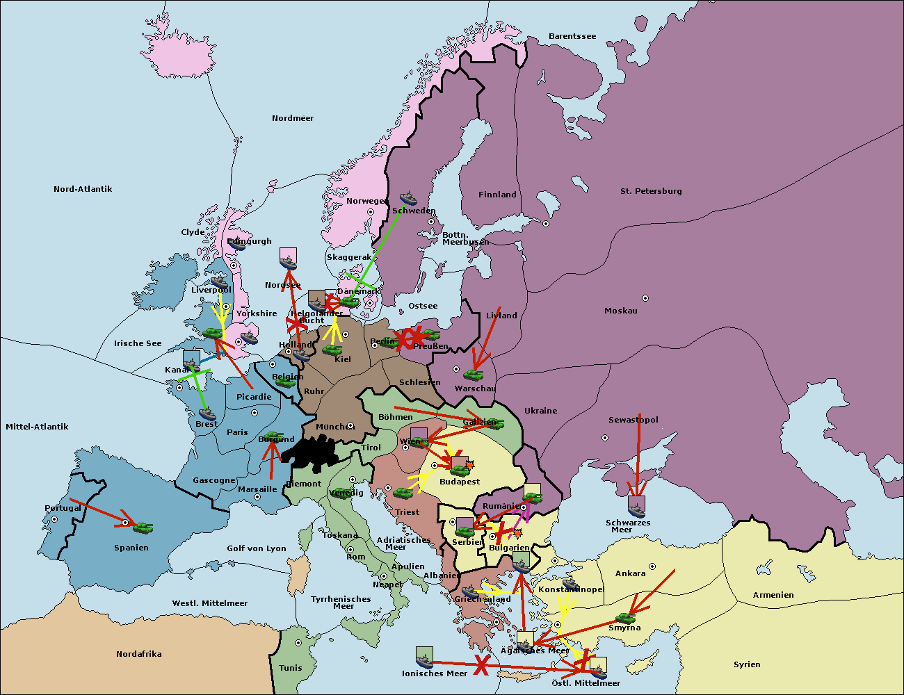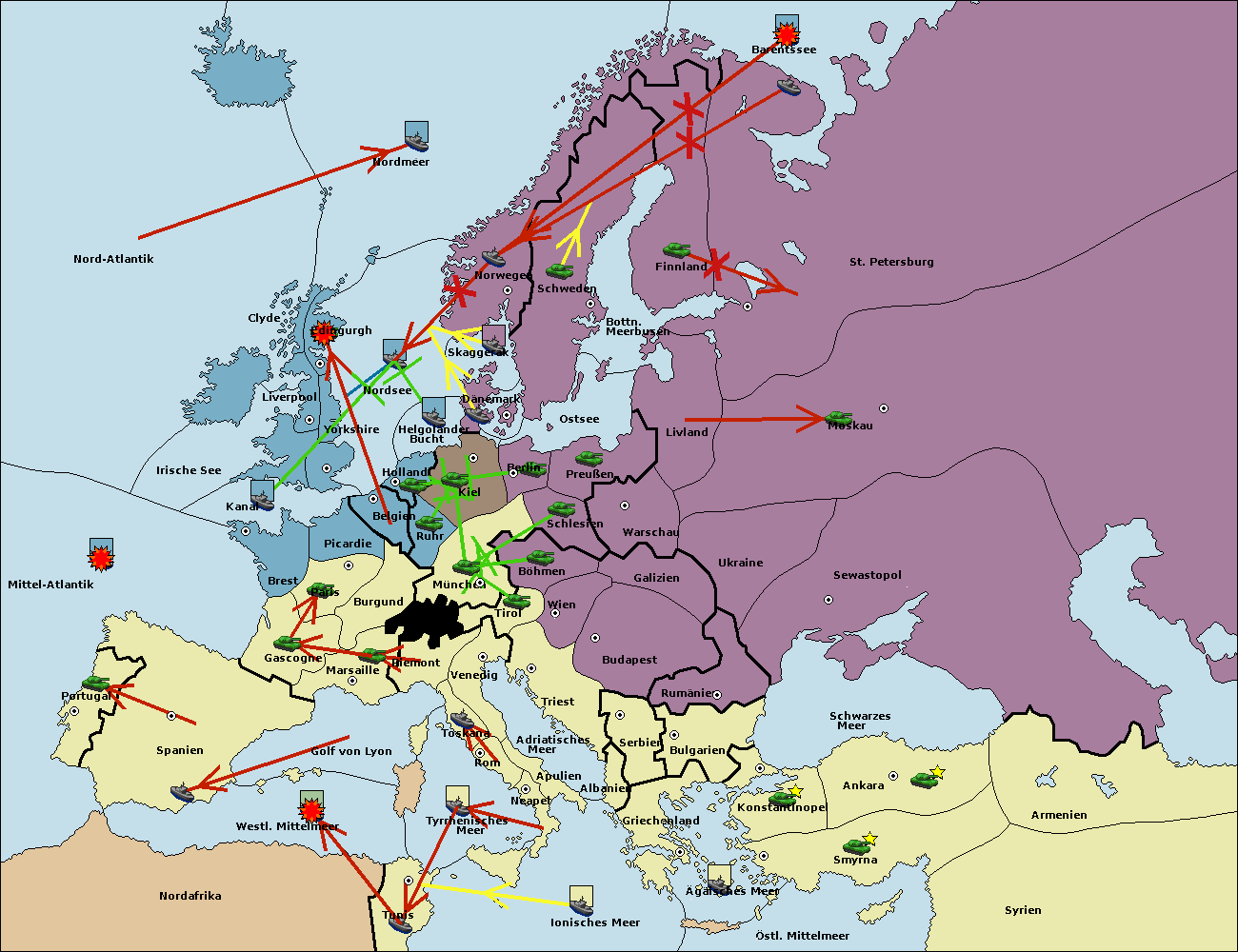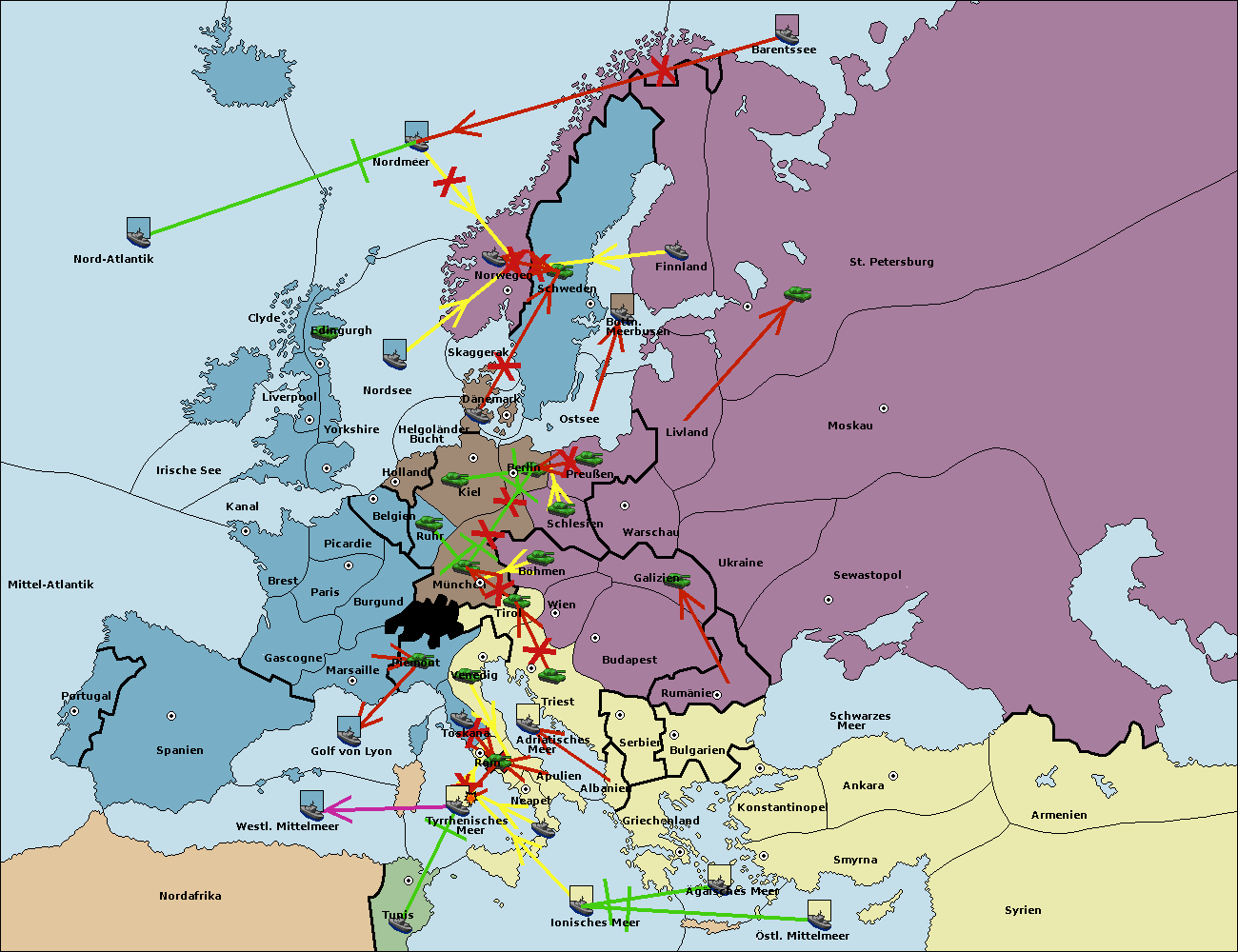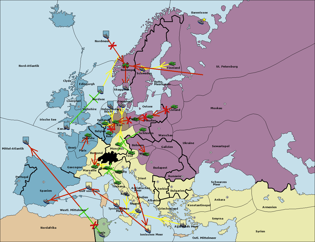 • Die Flotte in St. Petersburg (Nordküste) move nach Barentssee.