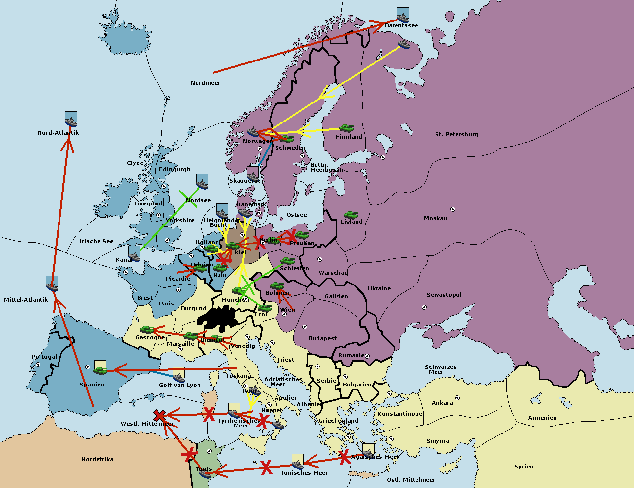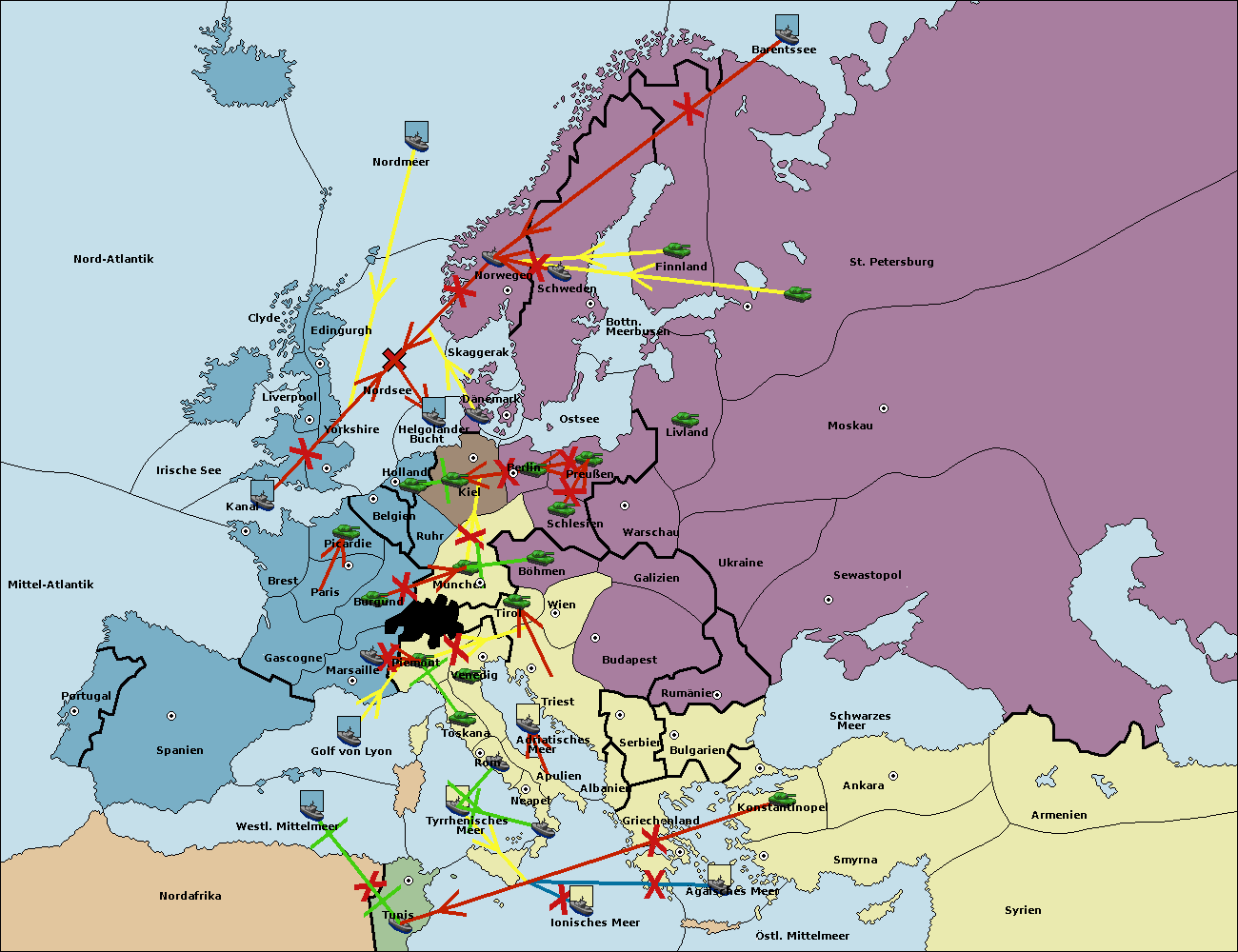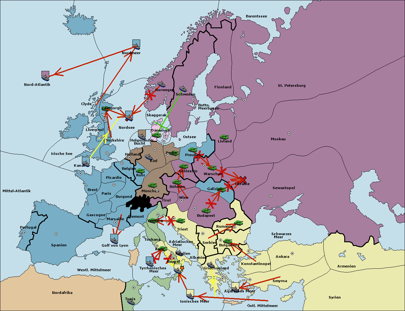 • Die Flotte in St. Petersburg (Nordküste) move nach Barentssee.